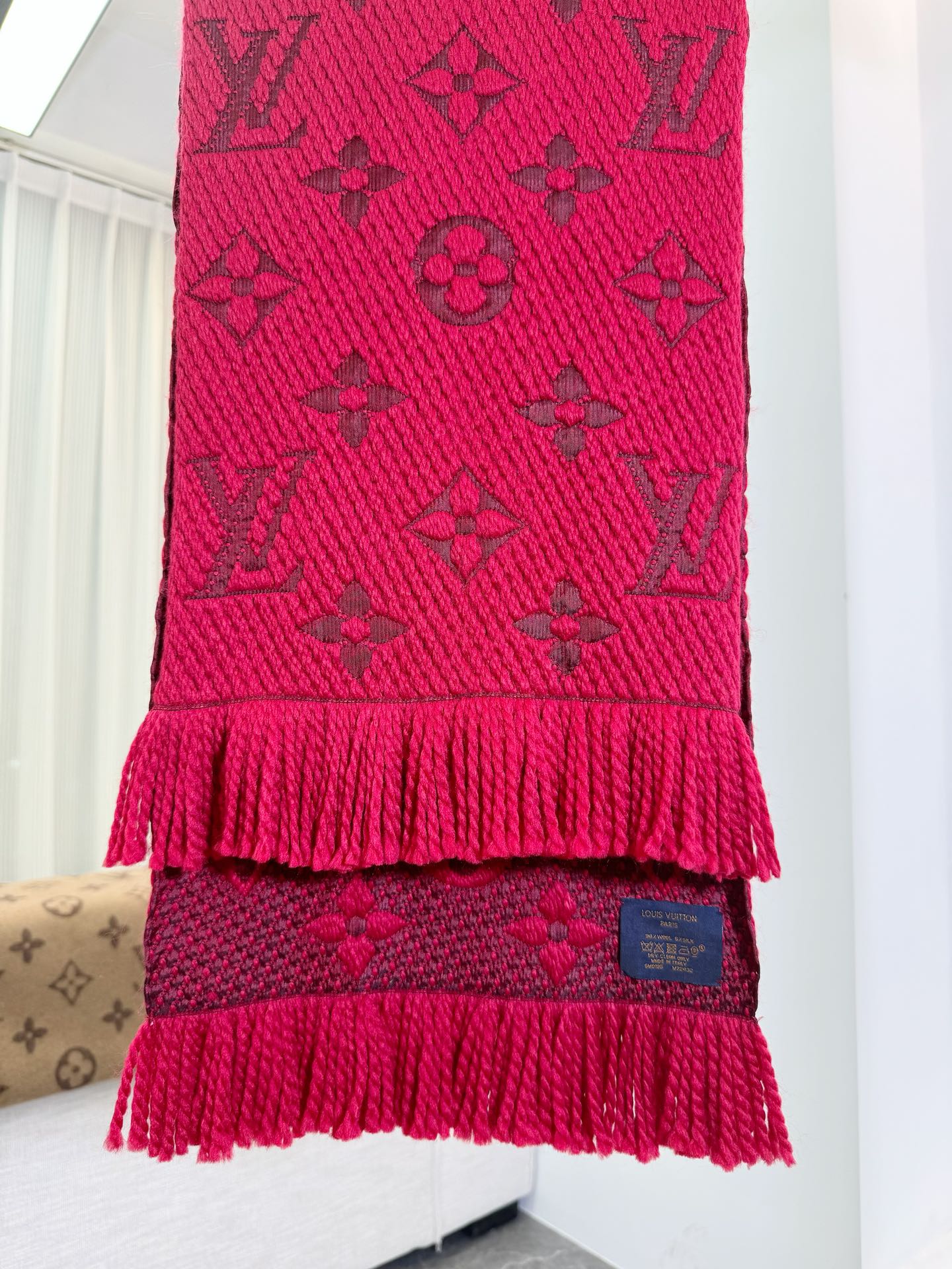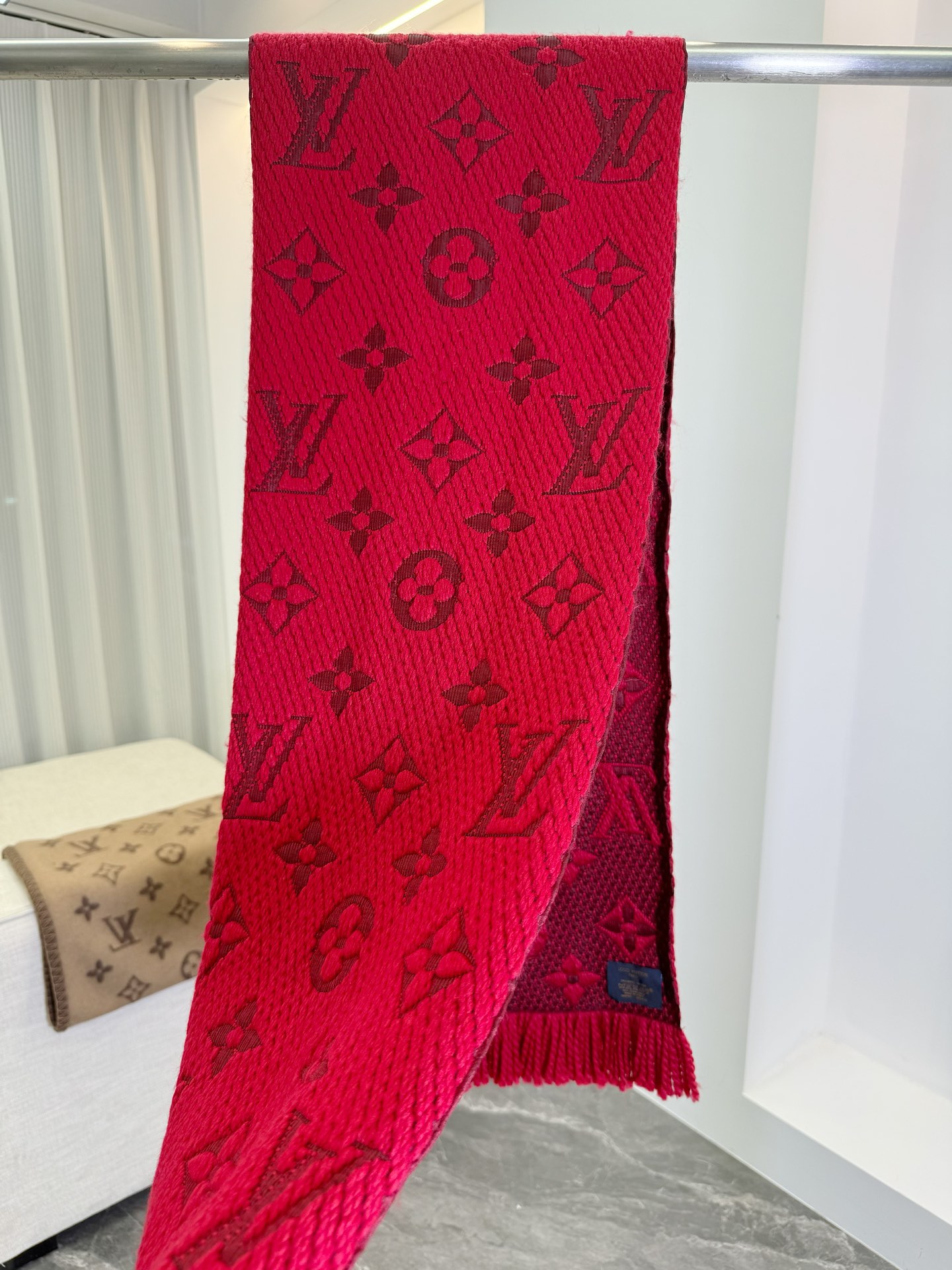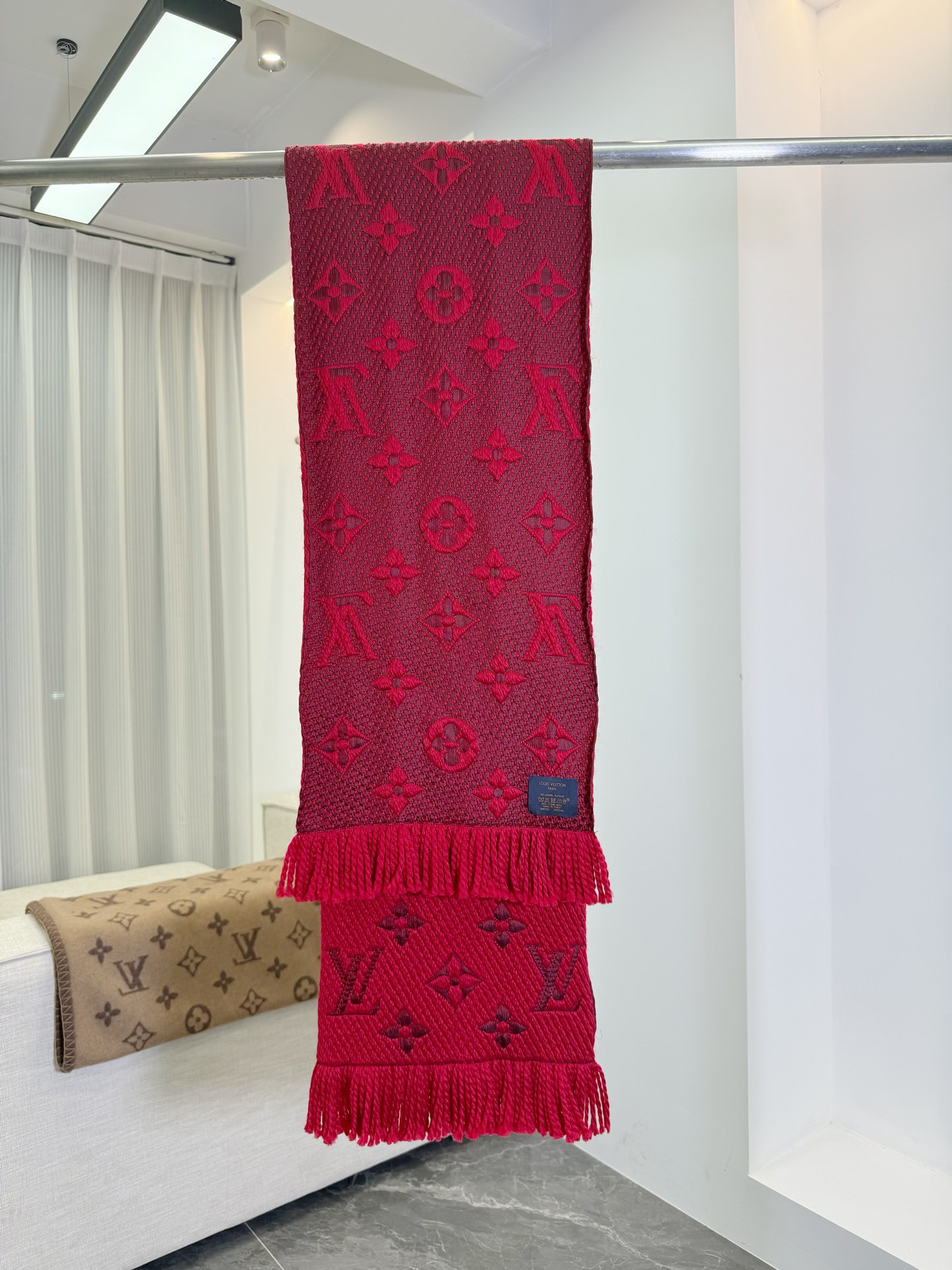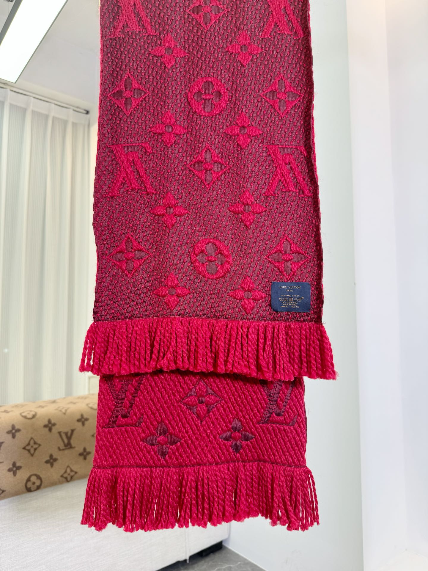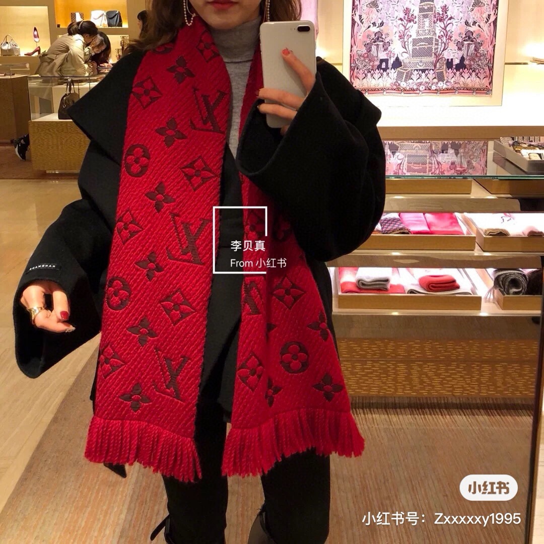𝐋𝐨𝐮𝐢𝐬 𝐕𝐮𝐢𝐭𝐭𝐨𝐧 《Logomania针织款》红本色 经典唐嫣同款 Logomania 针织围巾再来伴您度过漫漫寒冬 这款围巾上饰有经典的 Monogram 大花图案和路易威登首字母字样 色彩上又多加了金银线系列 给你更多选择 尺寸:174 x 30cm 材质:94% 羊毛,6% 真丝款式简约易搭配