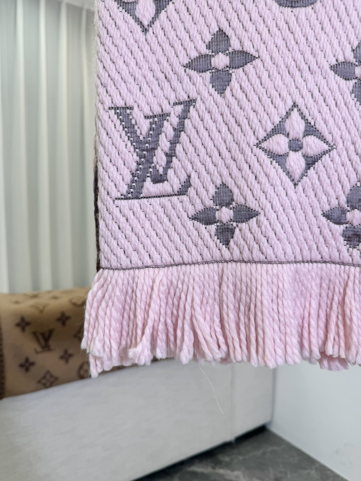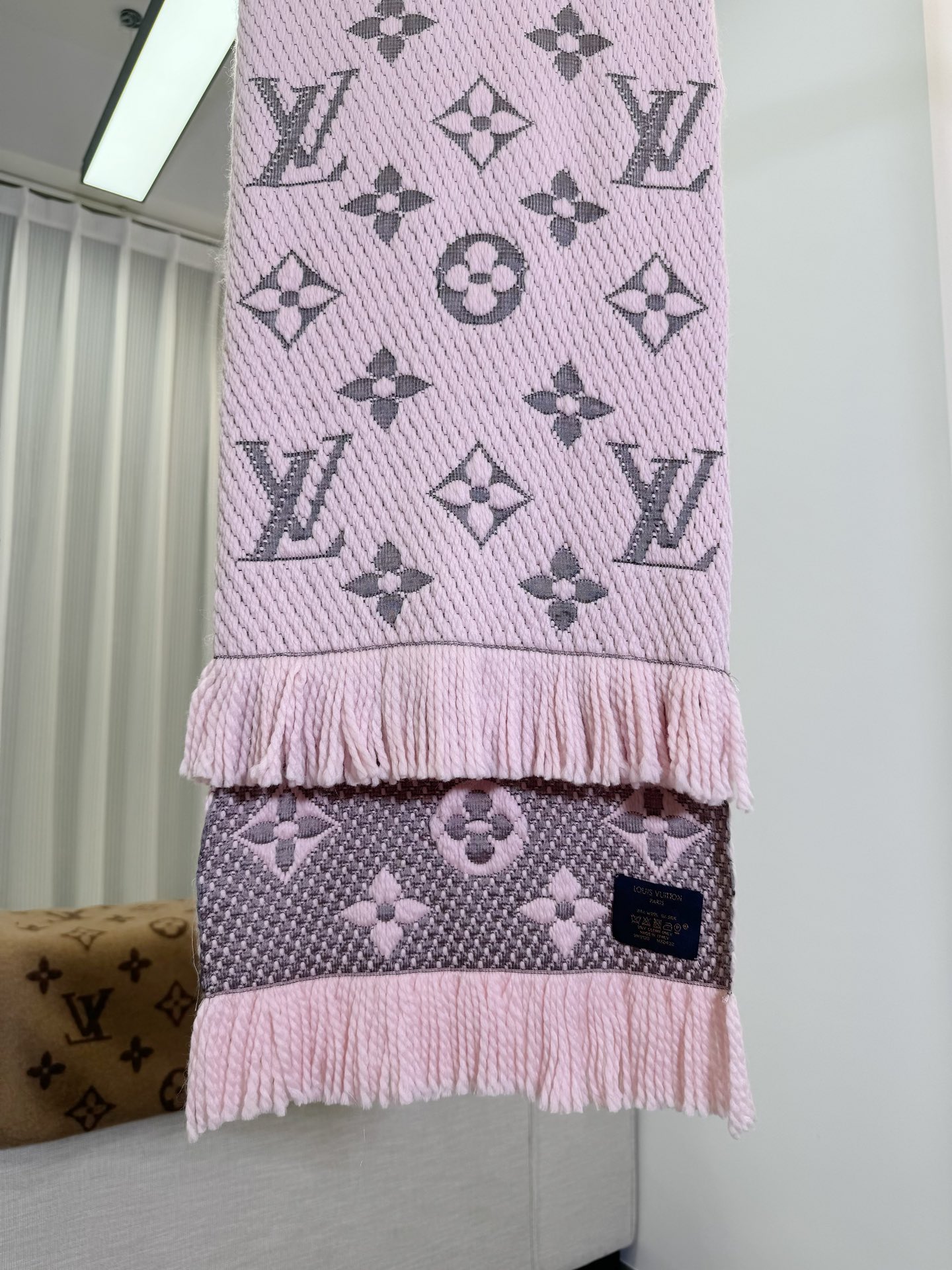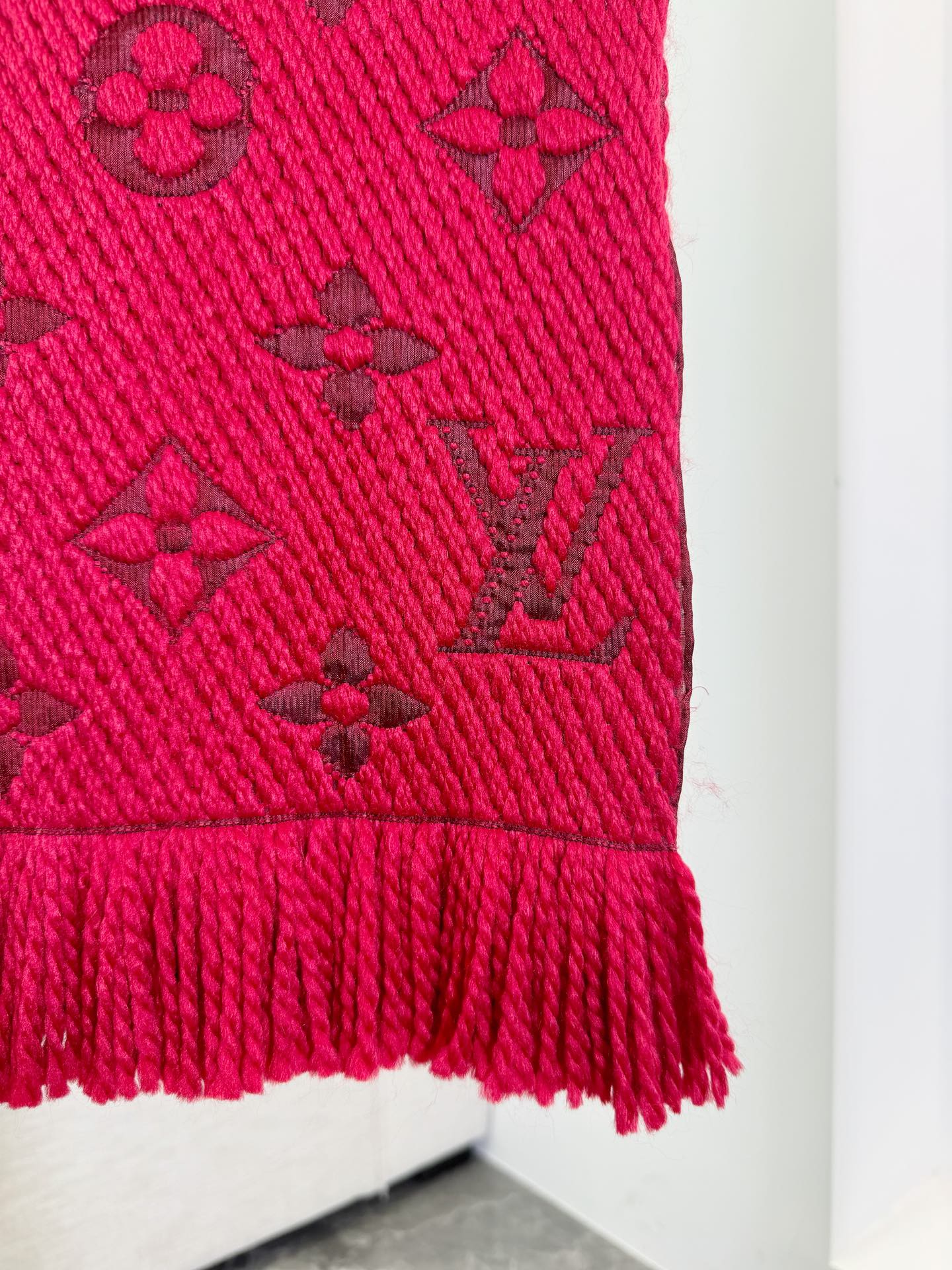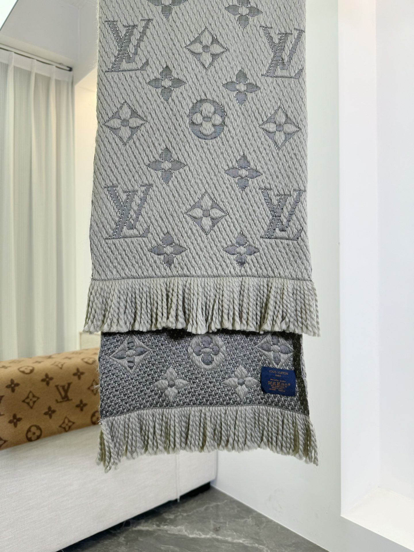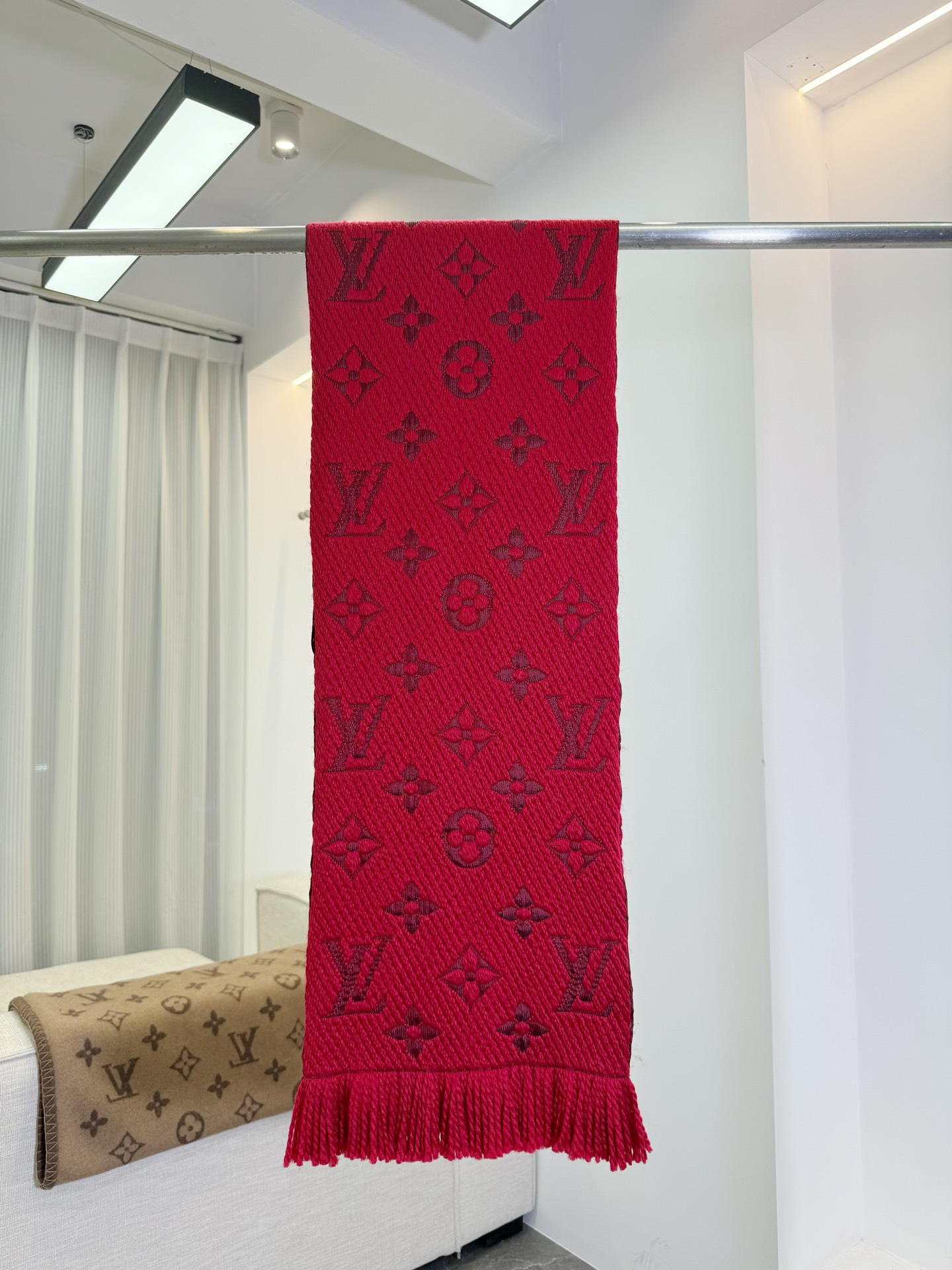 𝐋𝐨𝐮𝐢𝐬 𝐕𝐮𝐢𝐭𝐭𝐨𝐧 《Logomania针织款》红本色 经典唐嫣同款 Logomania 针织围巾再来伴您度过漫漫寒冬 这款围巾上饰有经典的 Monogram 大花图案和路易威登首字母字样 色彩上又多加了金银线系列 给你更多选择 尺寸:174 x 30cm 材质:94% 羊毛,6% 真丝款式简约易搭配