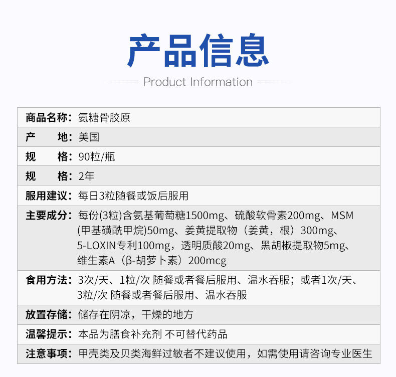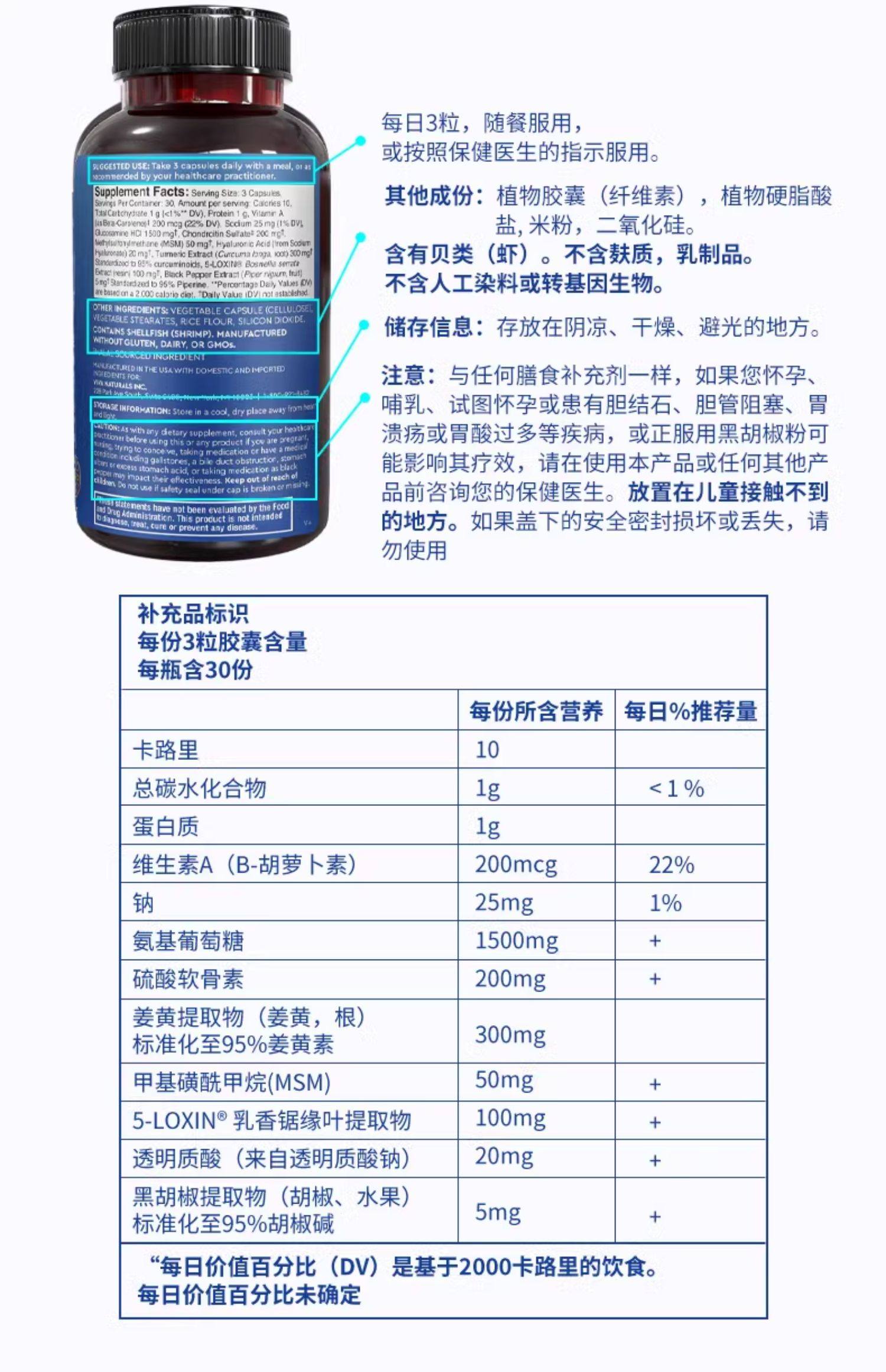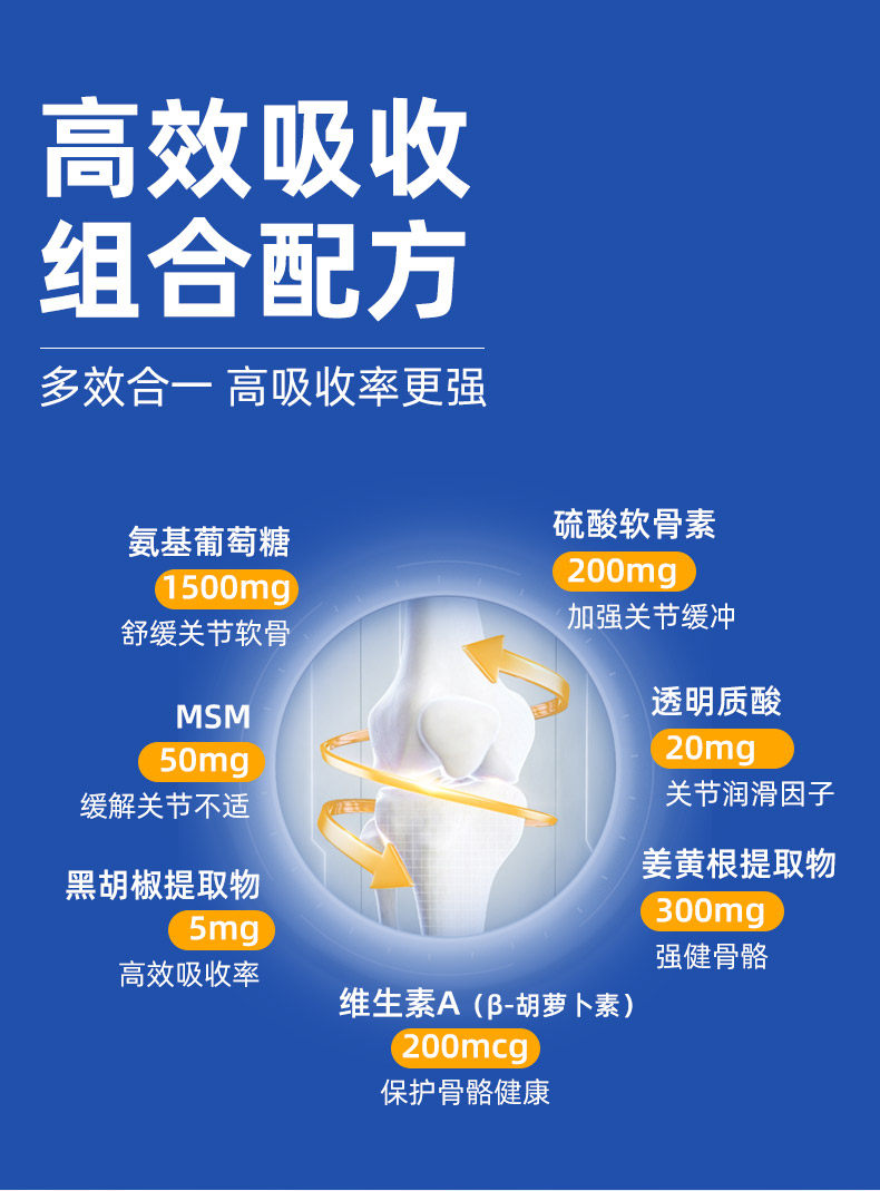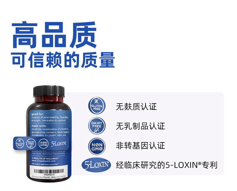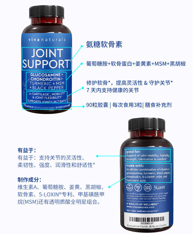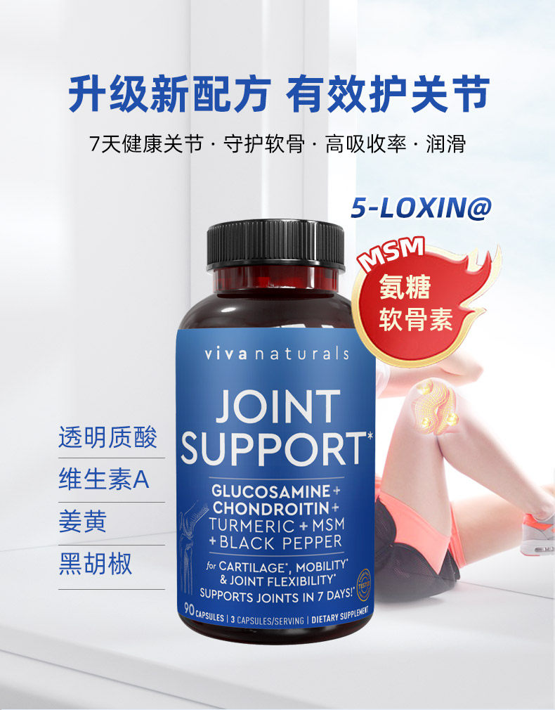 viva原装进口氨糖软骨素MSM中老年氨基葡萄糖碳酸补钙关节维骨力
