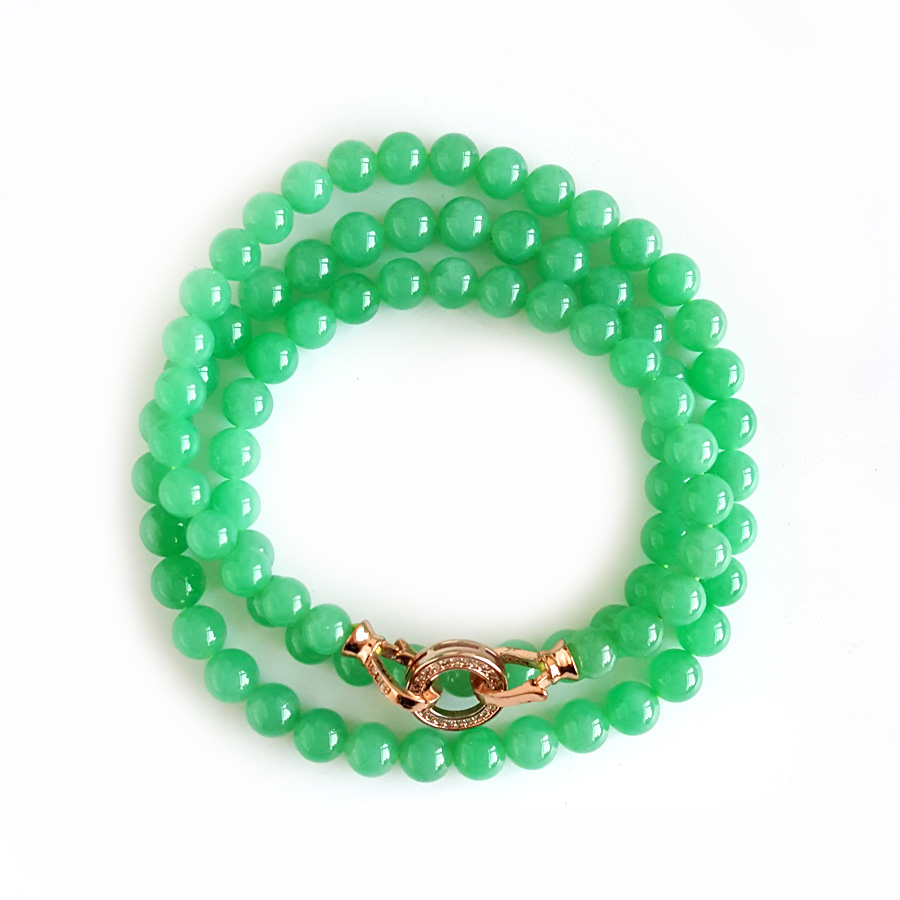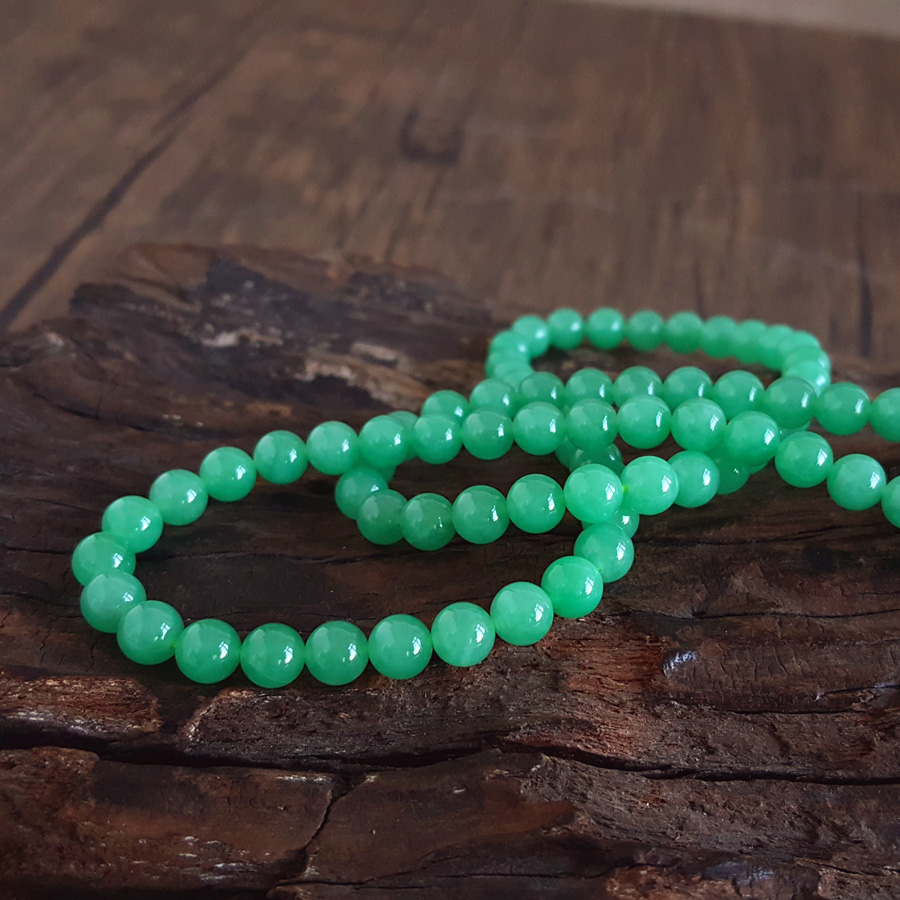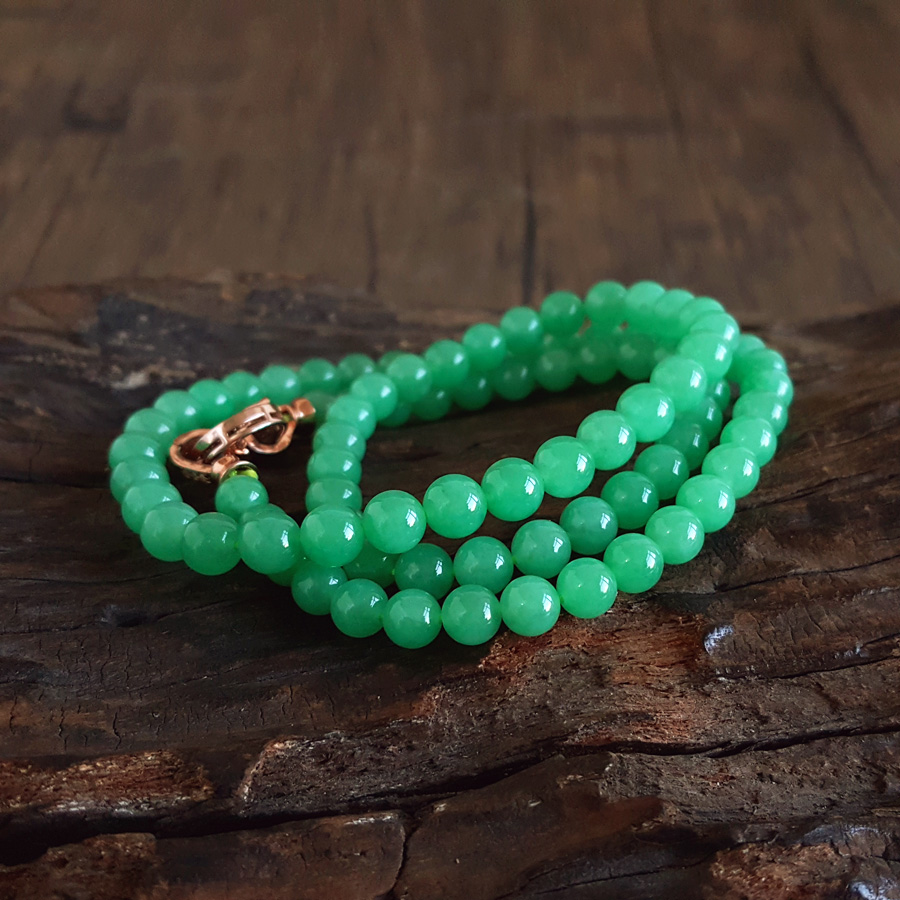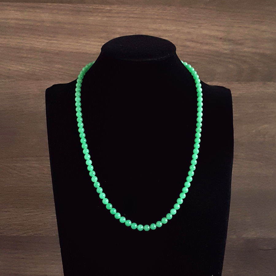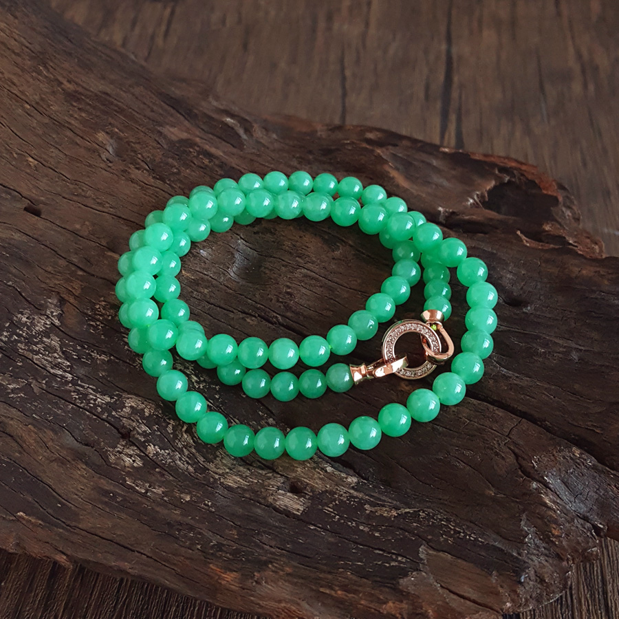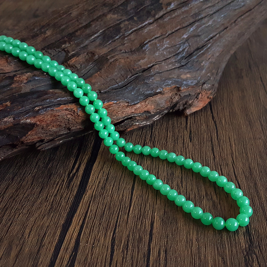 【天然正品】A货翡翠天然收藏级细腻糯冰种满绿约6.6MM翡翠珠串项链6.6MM(皆取最大值)链长:56CM女士300925NJS25