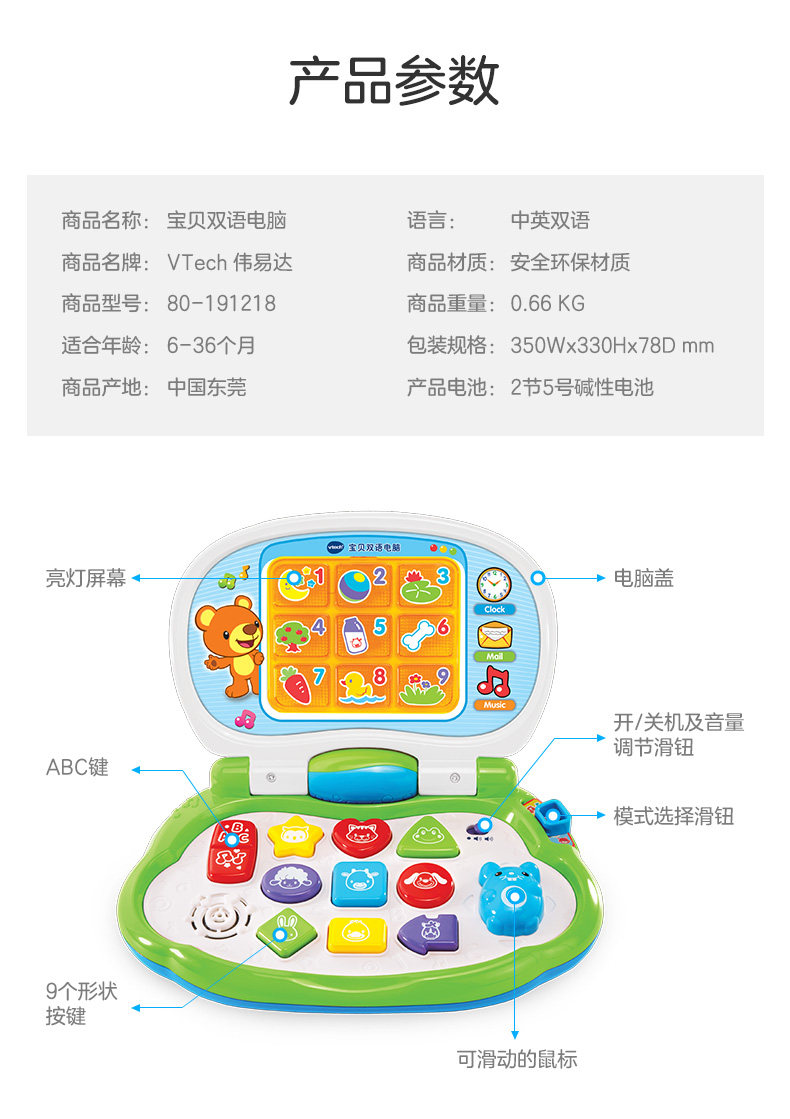 伟易达宝贝双语电脑早教机幼儿早教益智玩具英语学习熏陶宝宝电脑