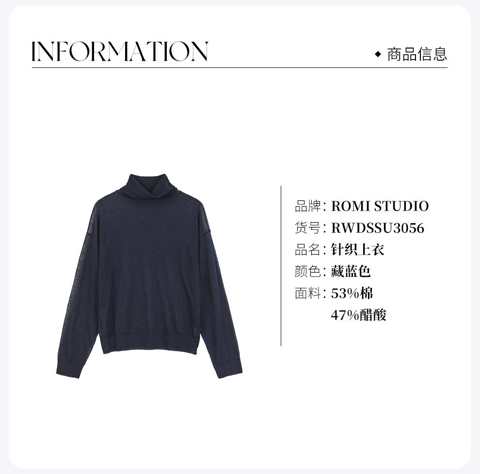 ROMI STUDIO“体感轻盈”醋酸棉舒适薄透高领针织上衣RWDSSU3056