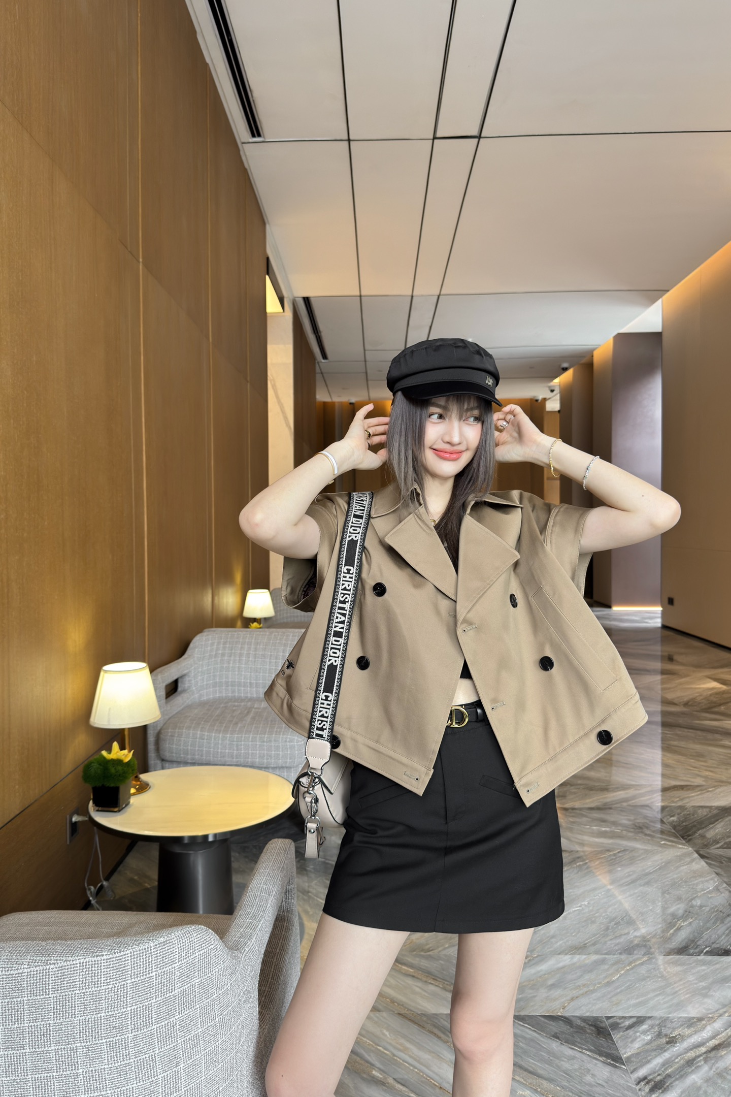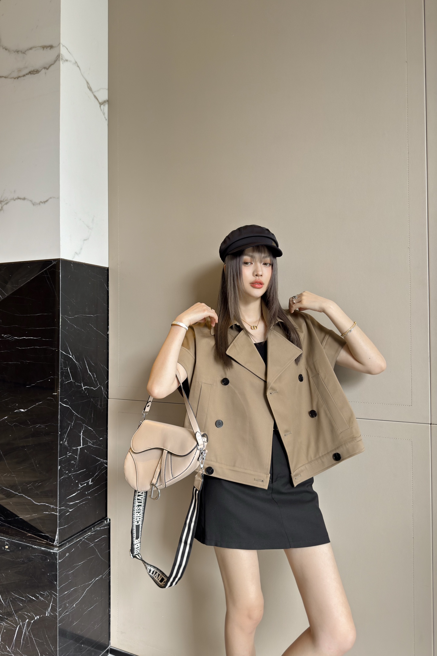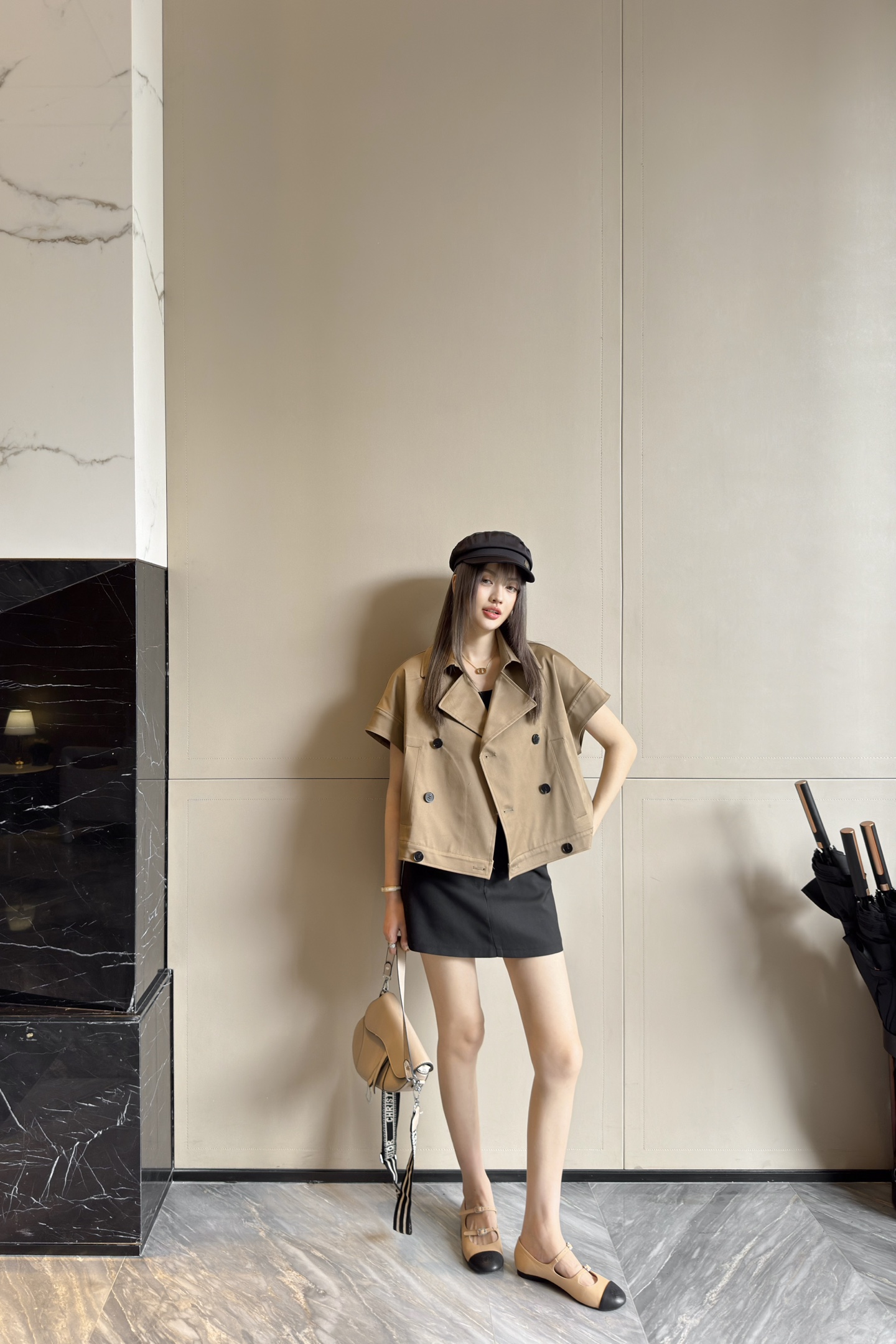 D家 25早春新款 卡其色无袖短款风衣马甲