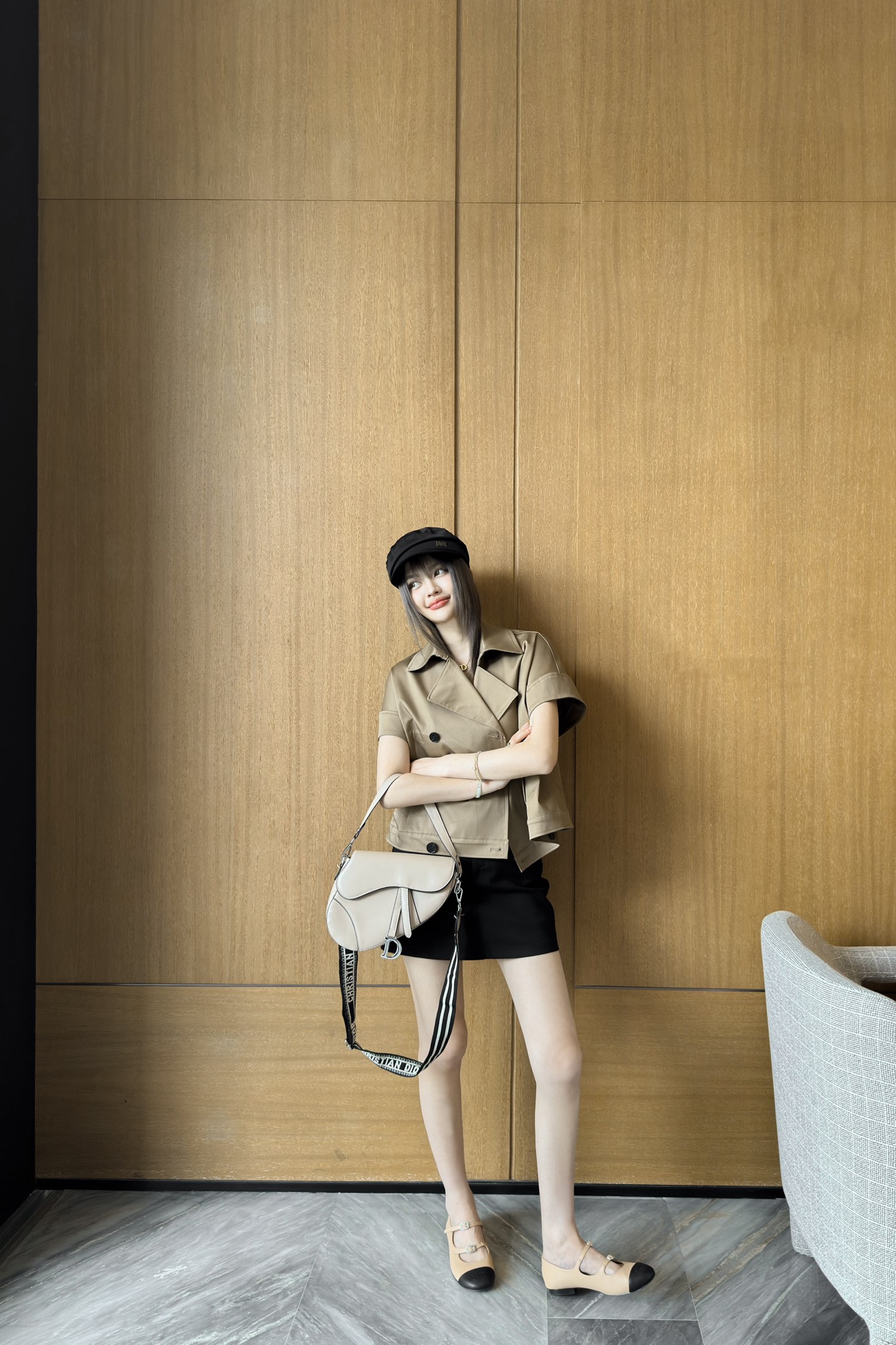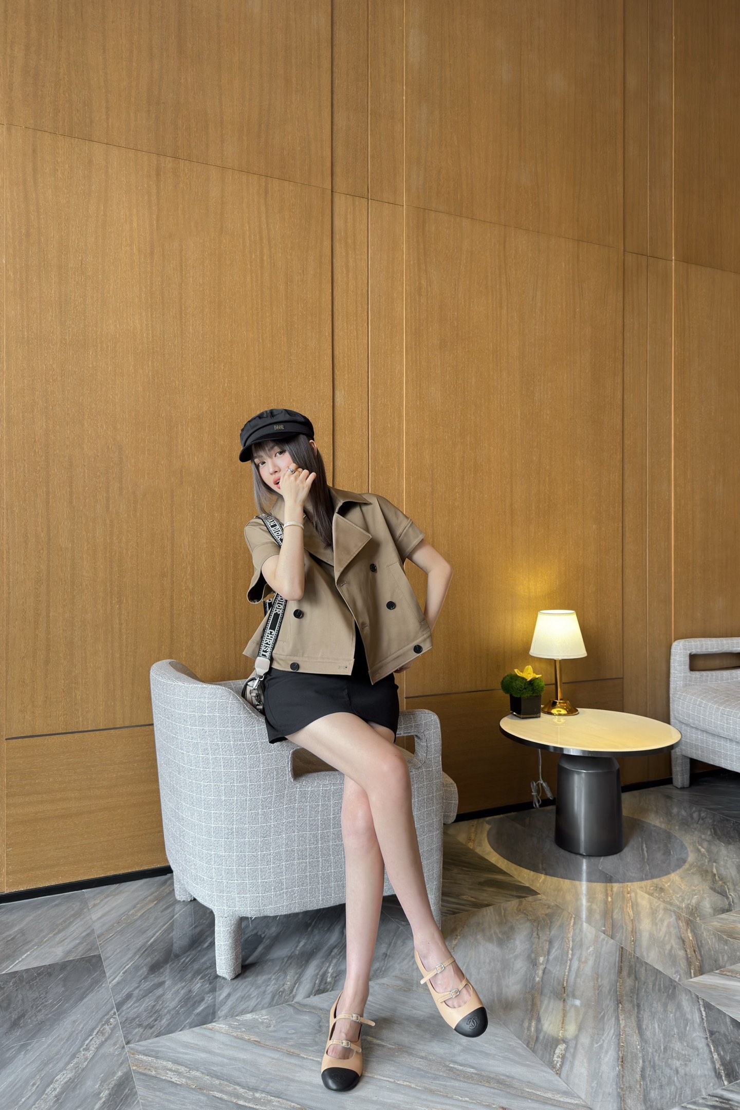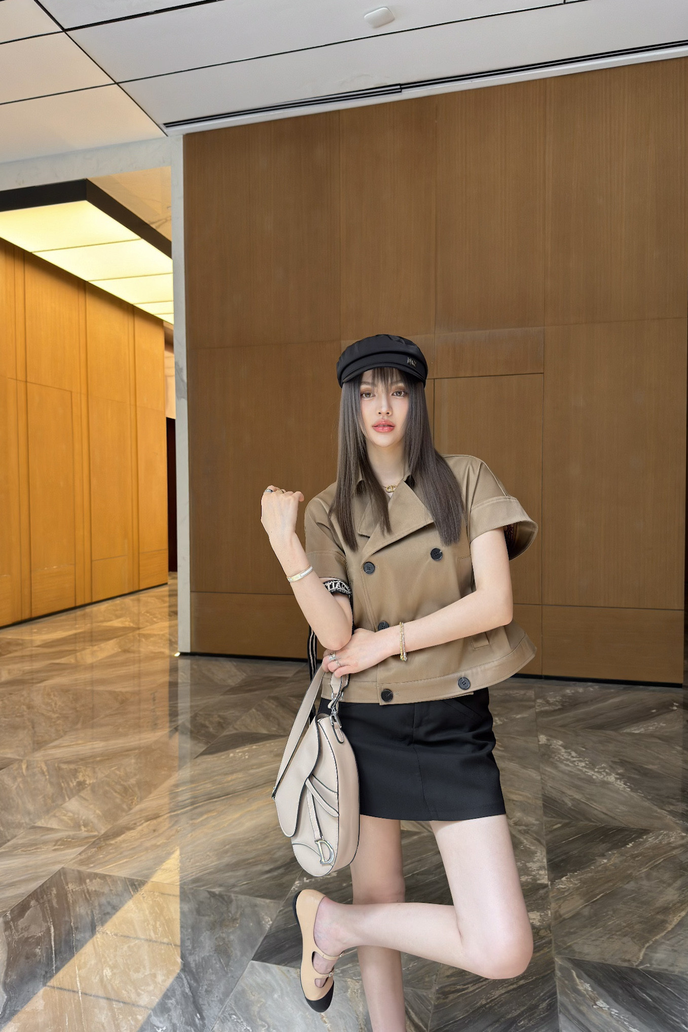 D家 25早春新款 卡其色无袖短款风衣马甲