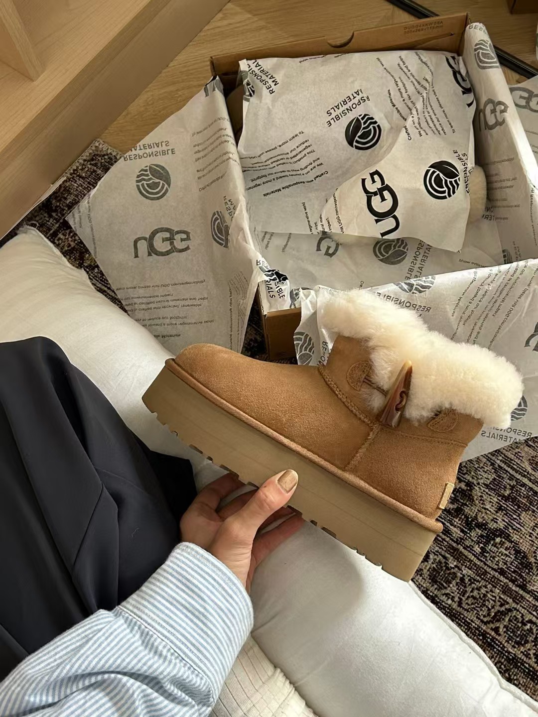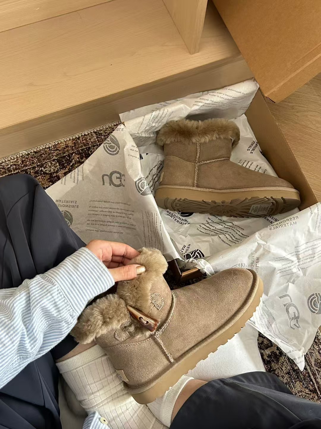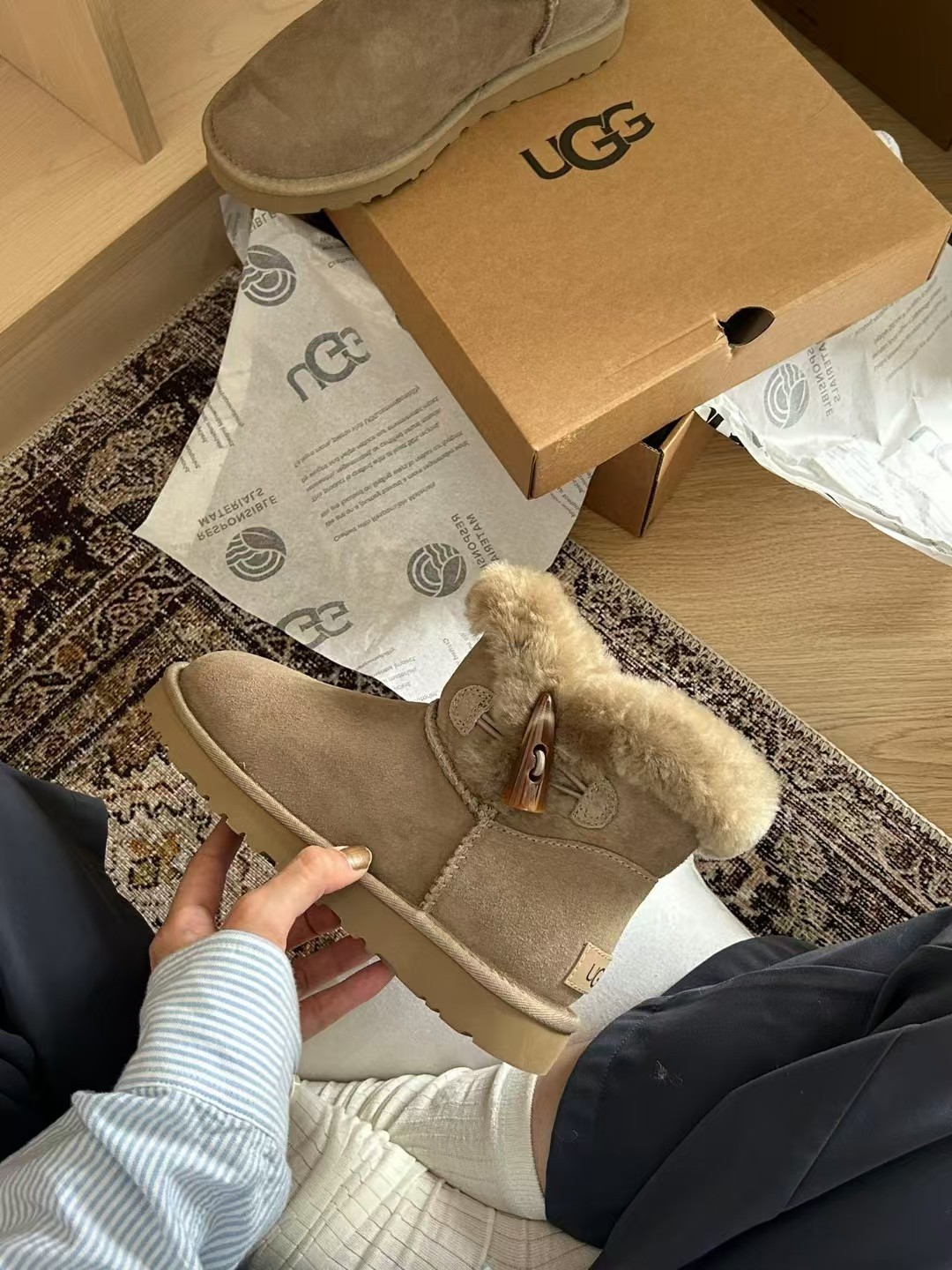 UGG牛角扣一粒雪地靴~