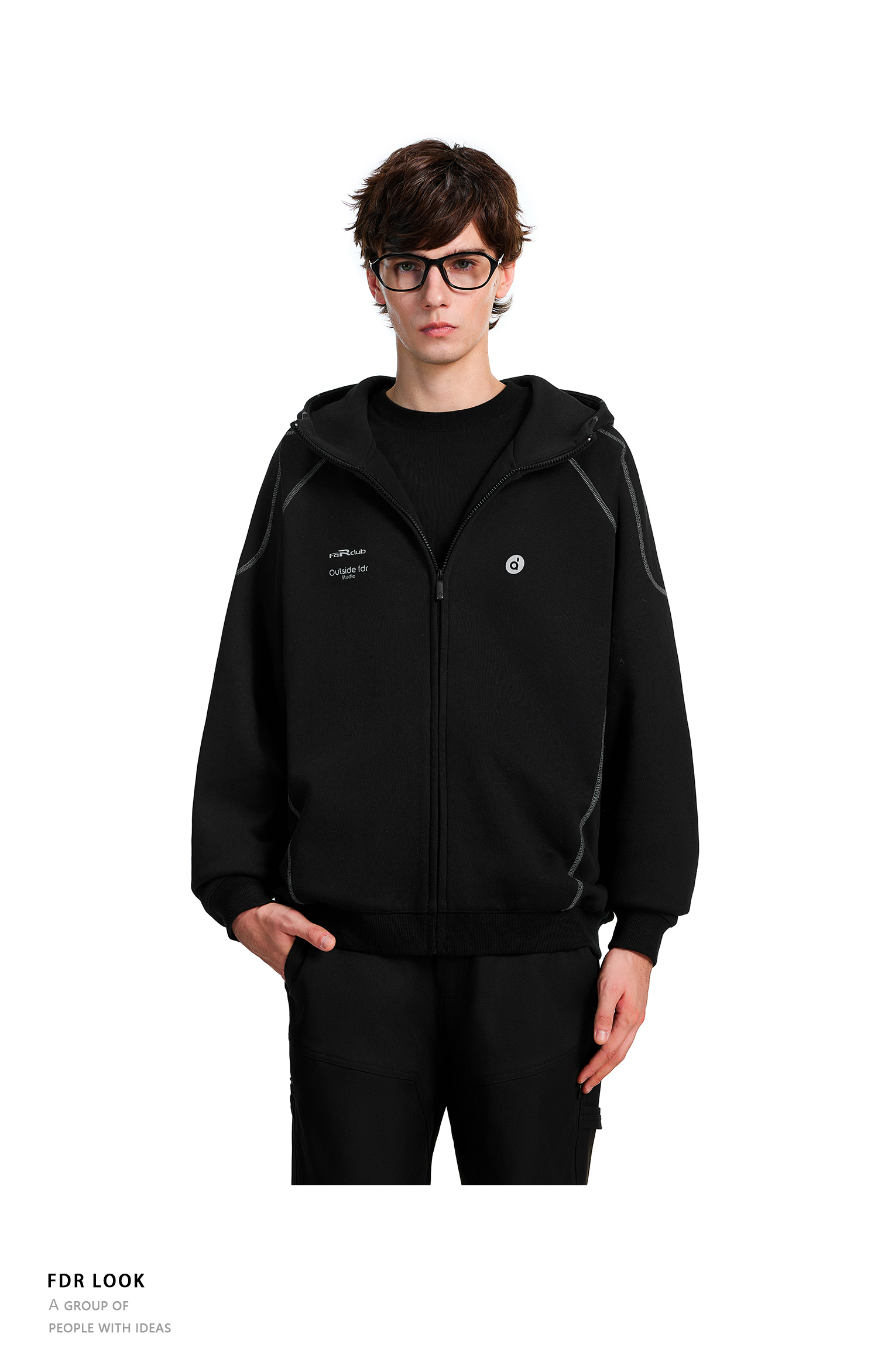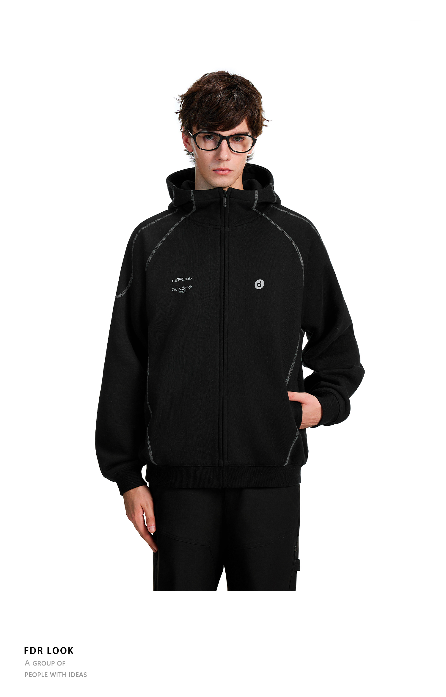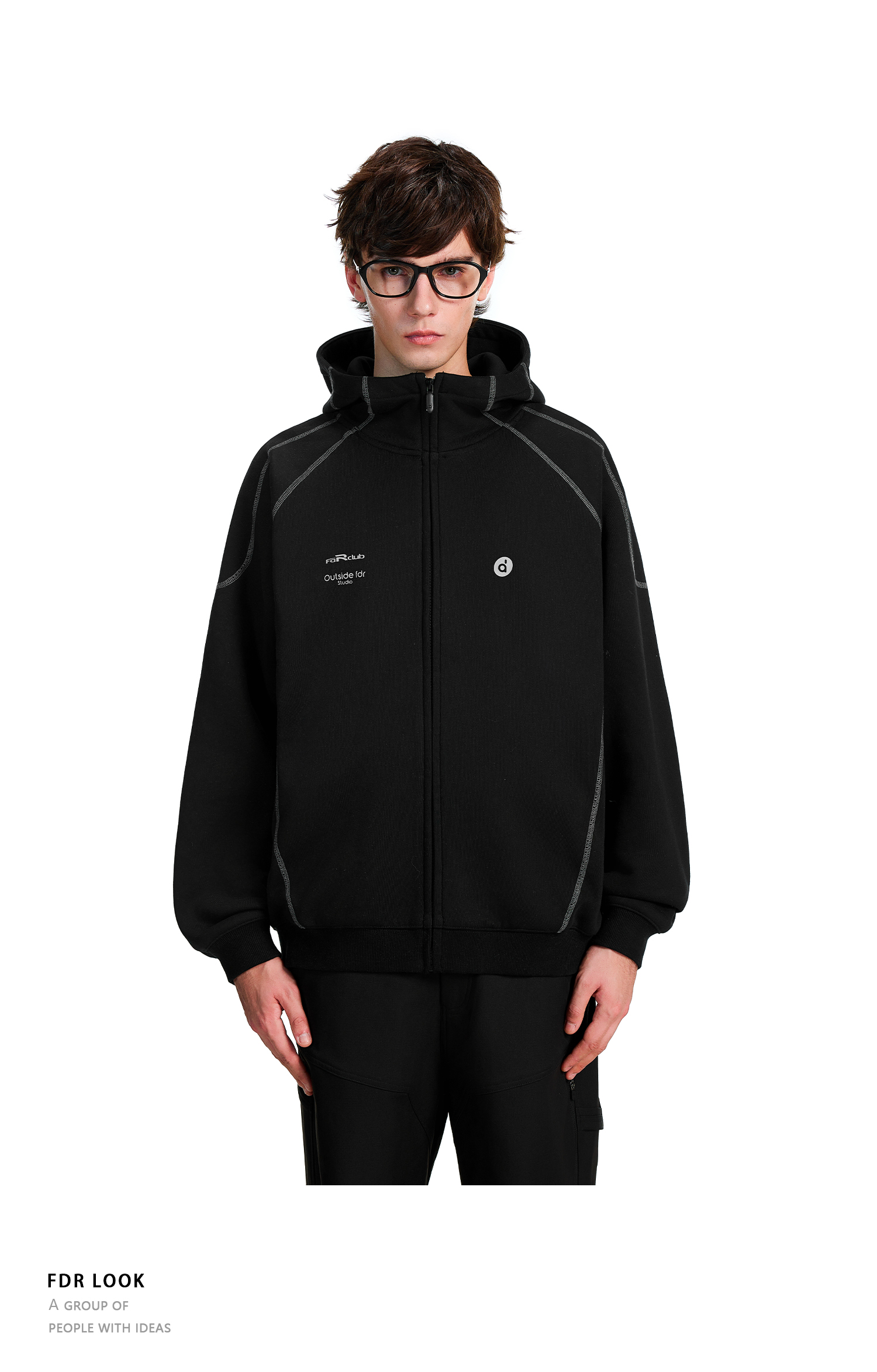 FDR官方店 哈苏线高领连帽卫衣男款秋季2025年情侣拉链开衫外套女