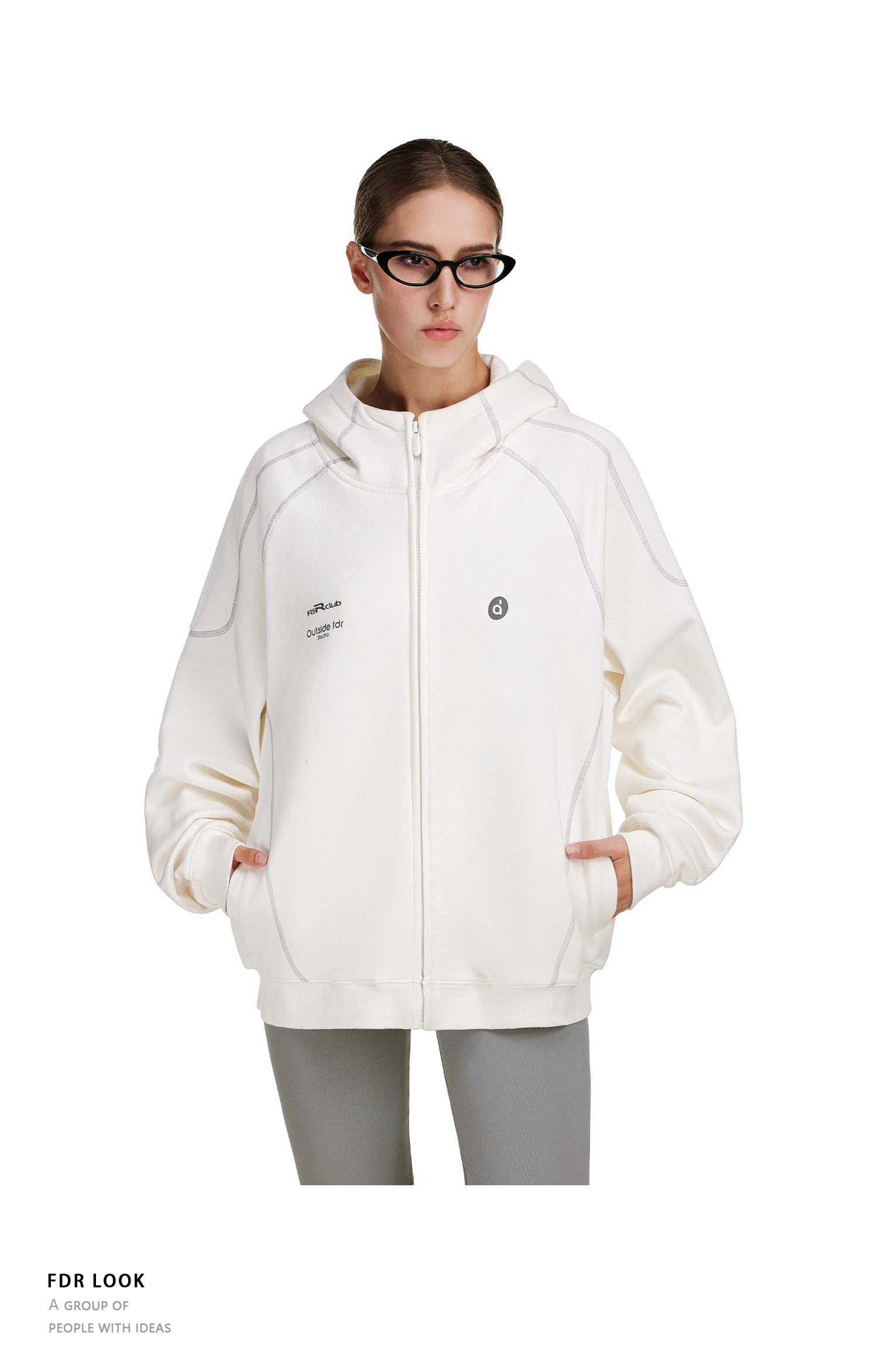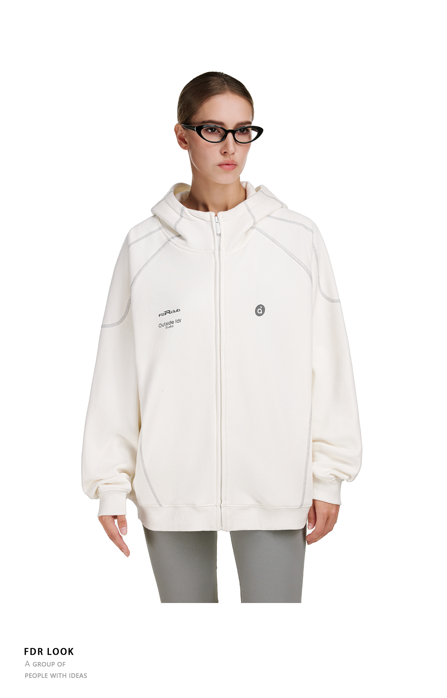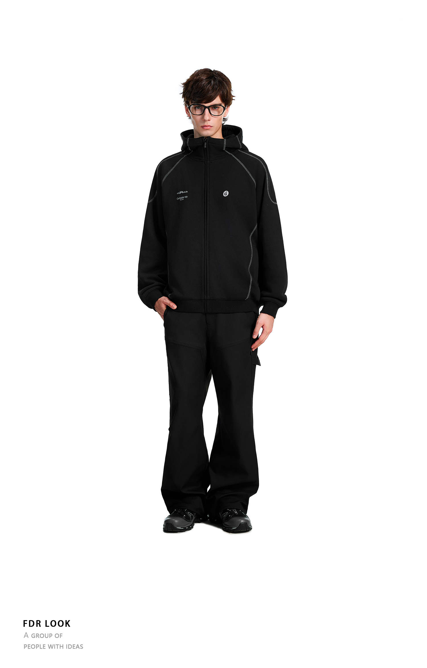 FDR官方店 哈苏线高领连帽卫衣男款秋季2025年情侣拉链开衫外套女