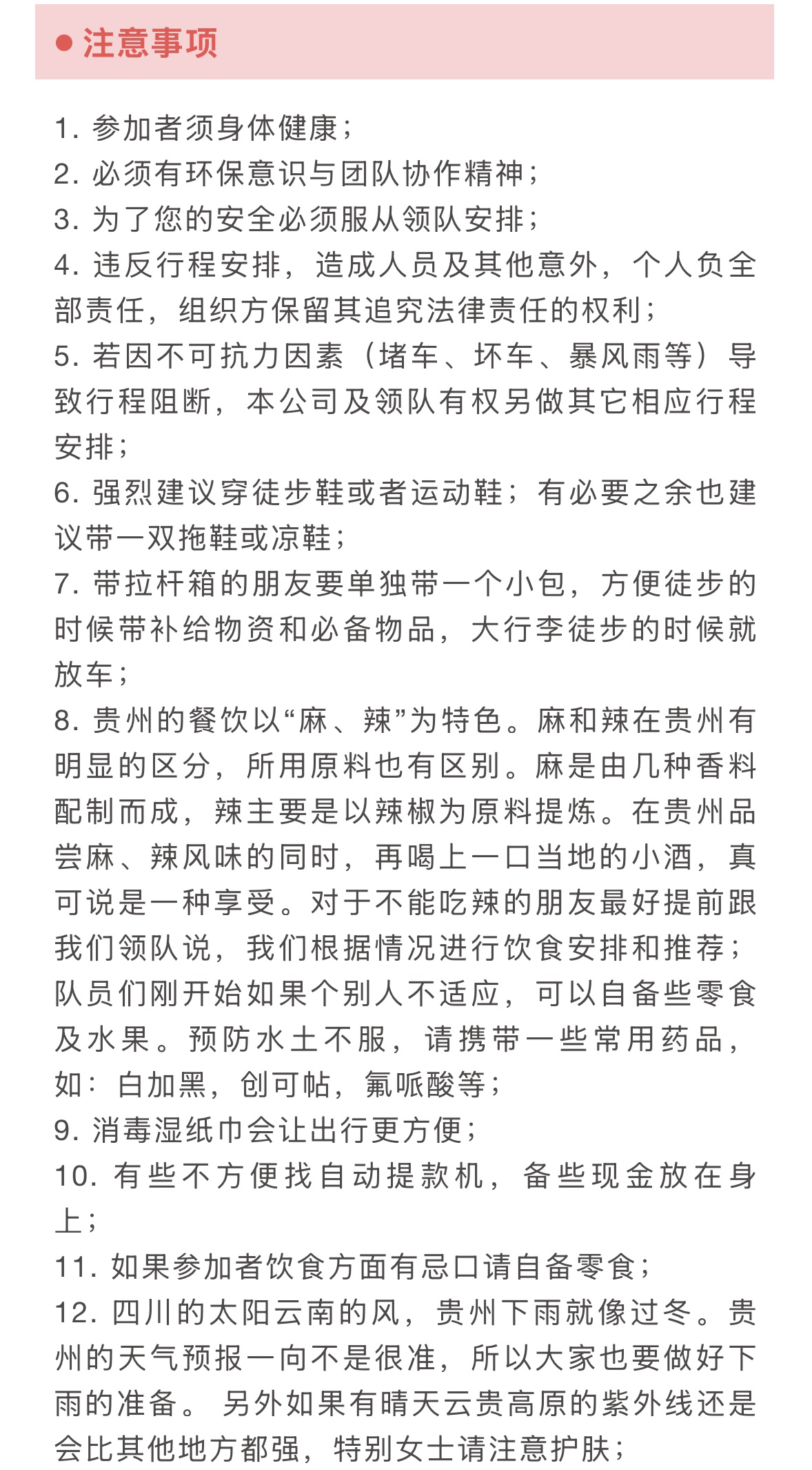 3.活动提供装备中说明的:头盔/头灯/探洞服/登山杖/户外小背包各一件免费租借(用后回收,如需要双杖请提前告知),赠送户外魔术头巾(不回收)。