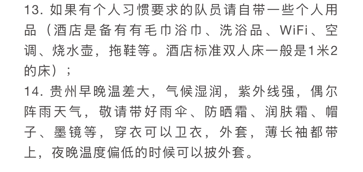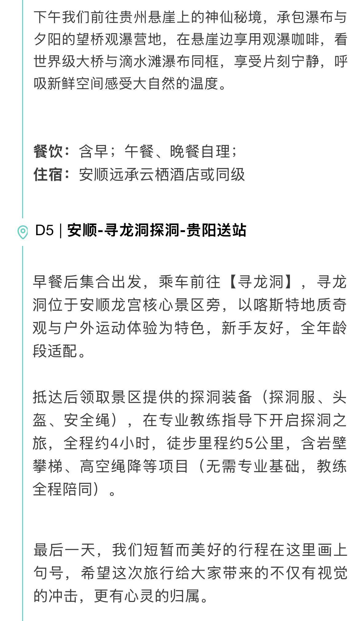 【住宿】全程4晚4钻酒店(酒店默认安排标间双床房,如需加床或升级房型,费用自理)D1贵阳旅途浮光酒店;D2、D3、D4安顺远承云栖酒店;