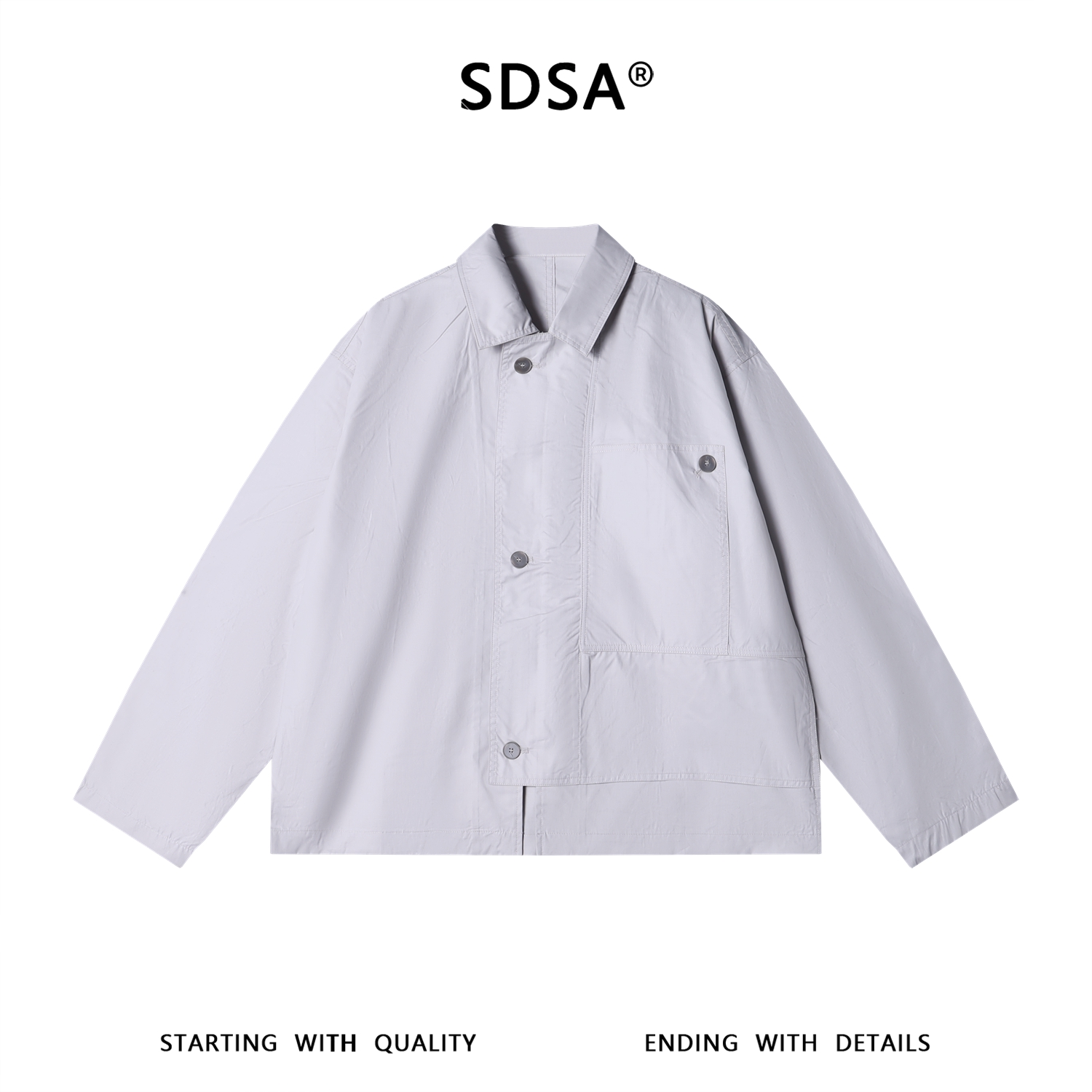 SDSA男装2026新款高贵轻奢斜门襟大口袋工装夹克宽松翻领休闲上衣