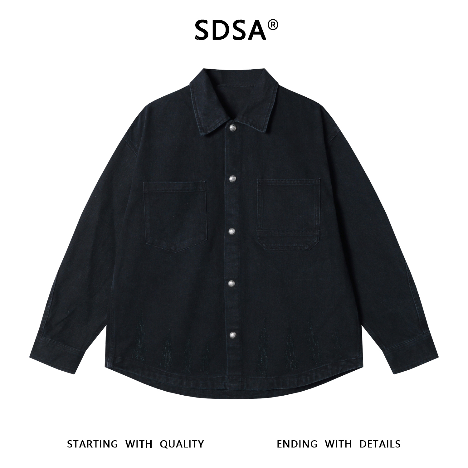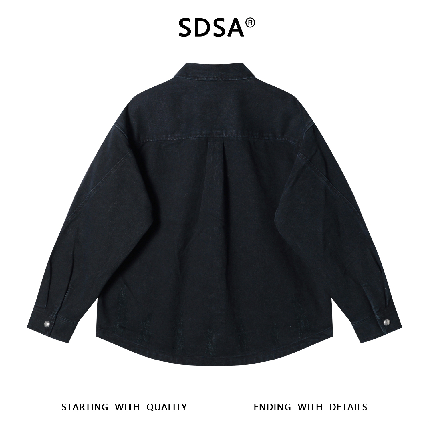 56181SDSA男士秋冬新款痞帅男装简约磨破纽扣长袖翻领衬衫百搭时尚衬衣