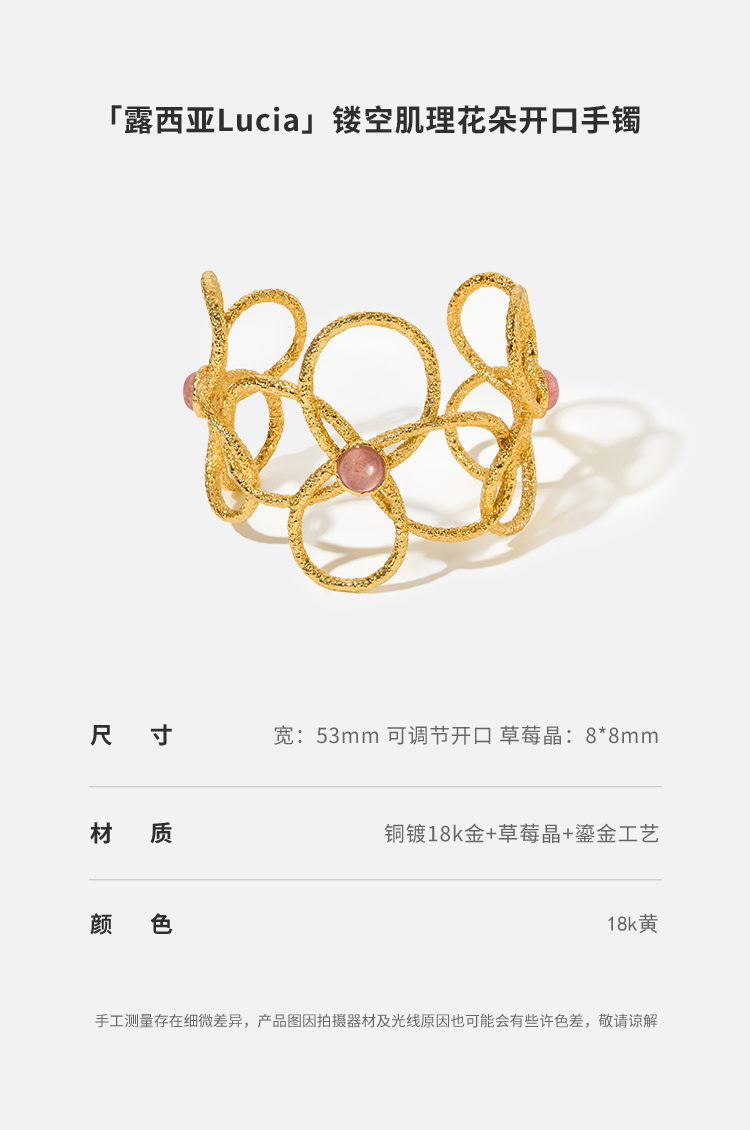 ANGEL ISLAND「露西亚Lucia」镂空肌理花朵开口手镯