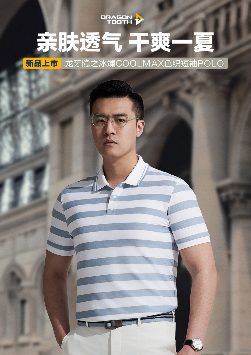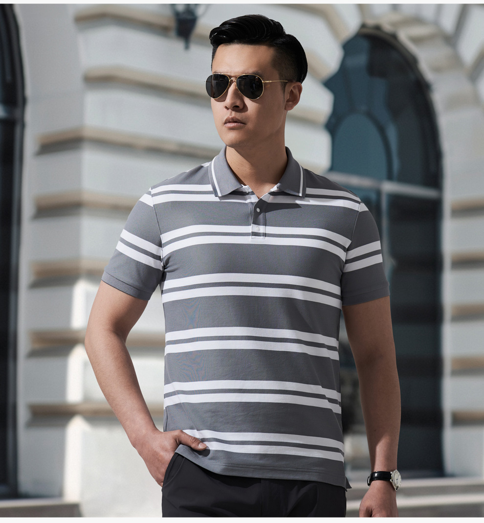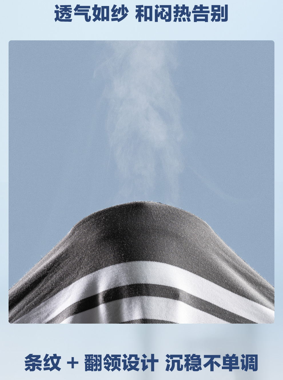 隐之冰斓COOLMAX色织短袖POLO男夏季条纹商务休闲翻领运动