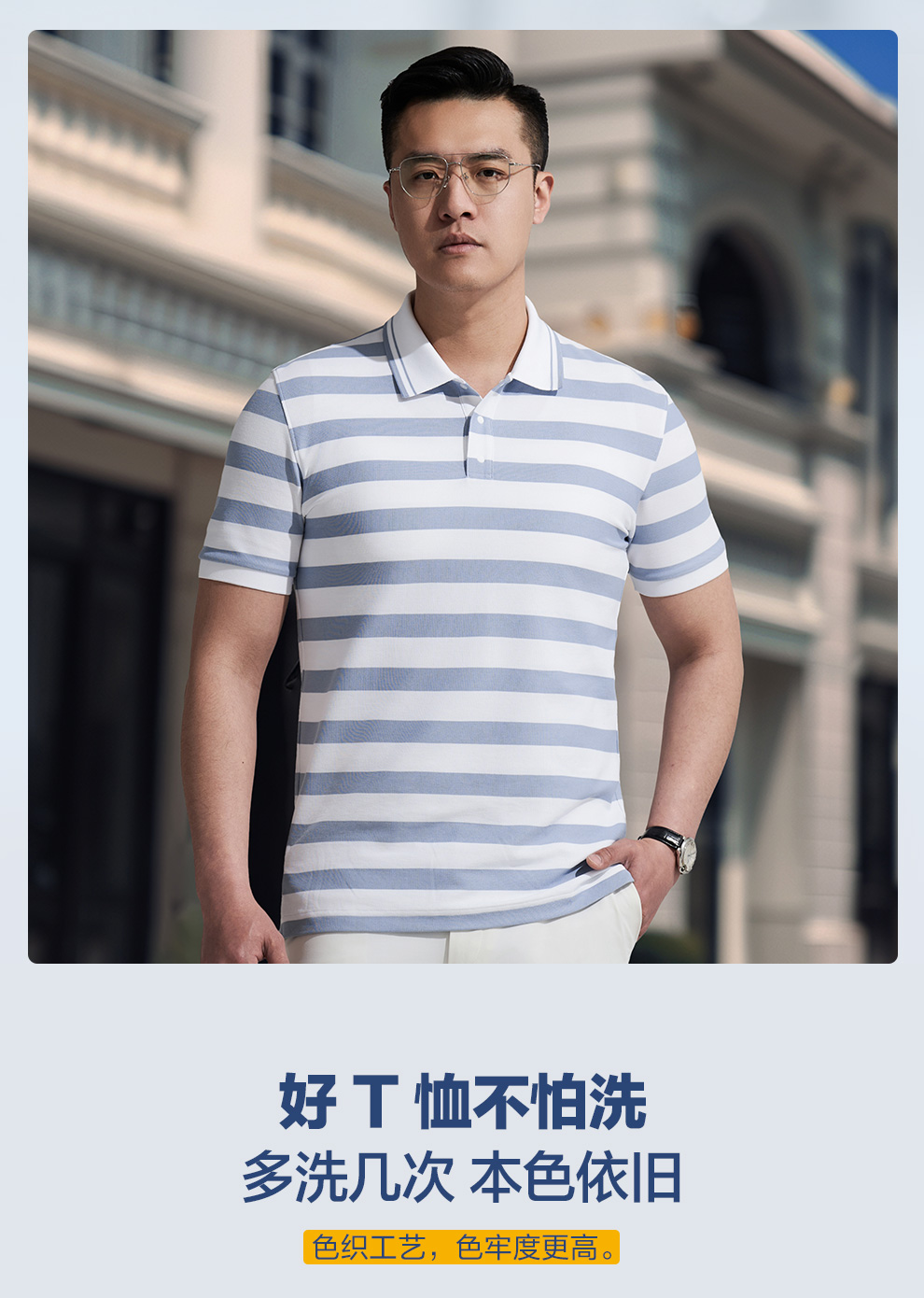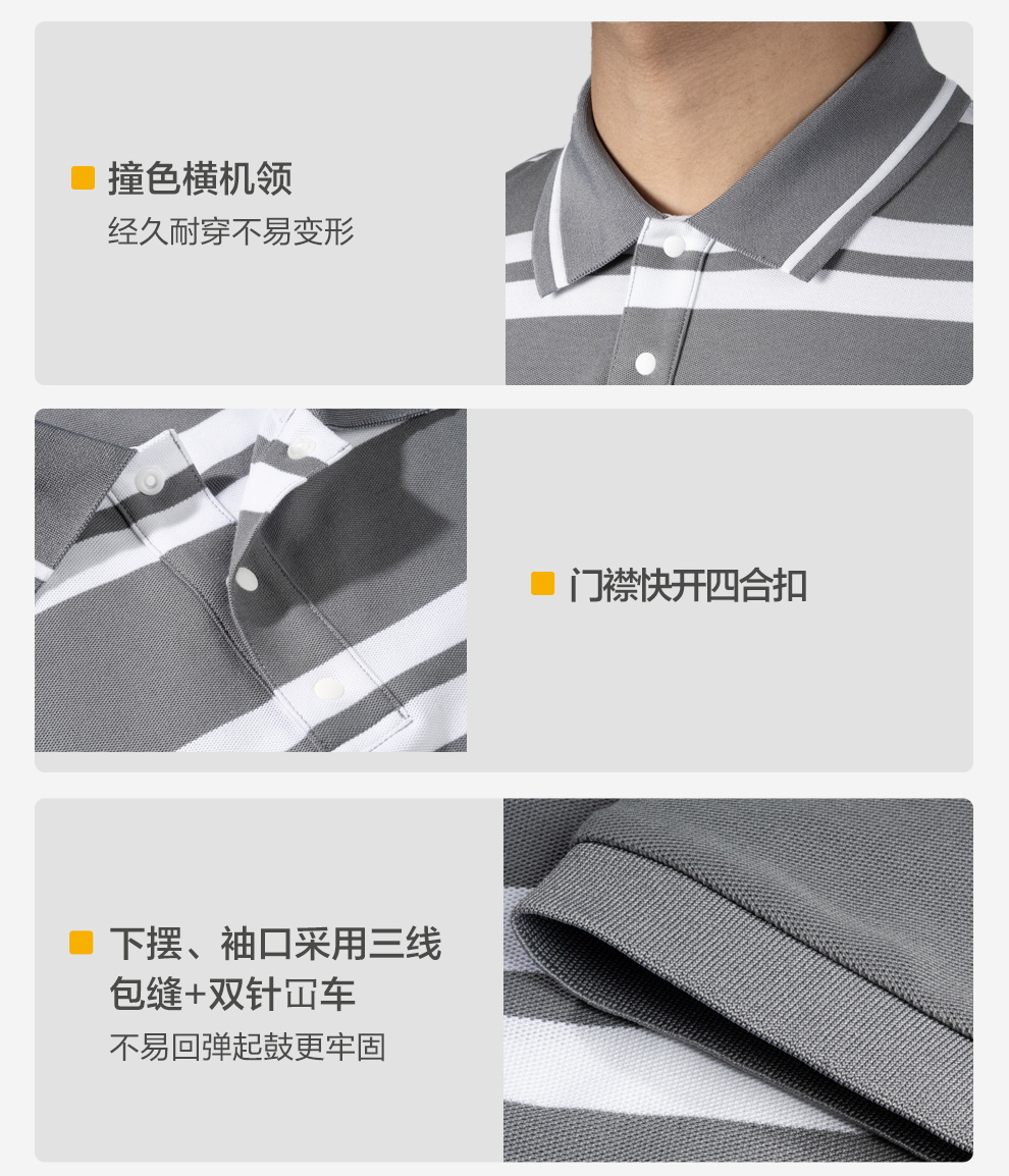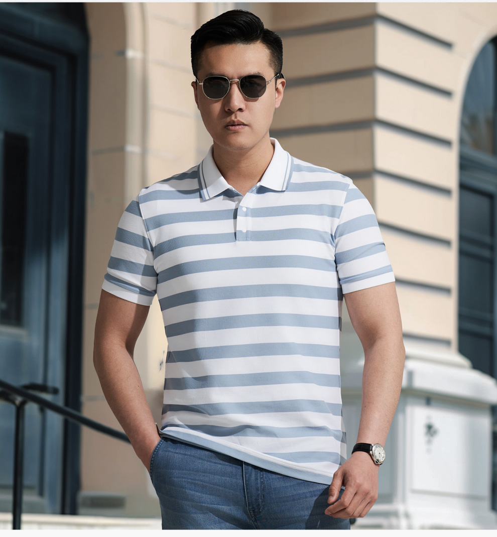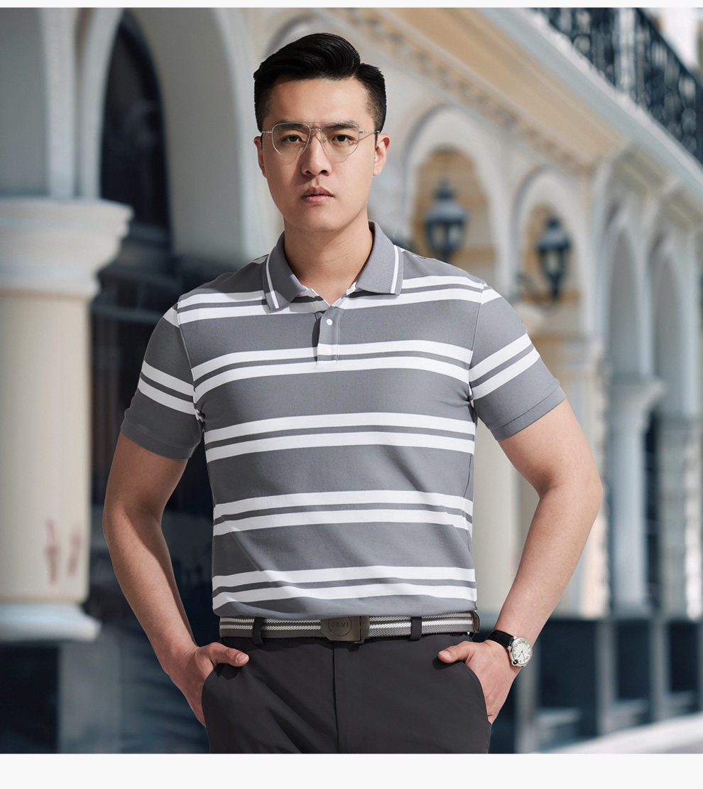 隐之冰斓COOLMAX色织短袖POLO男夏季条纹商务休闲翻领运动