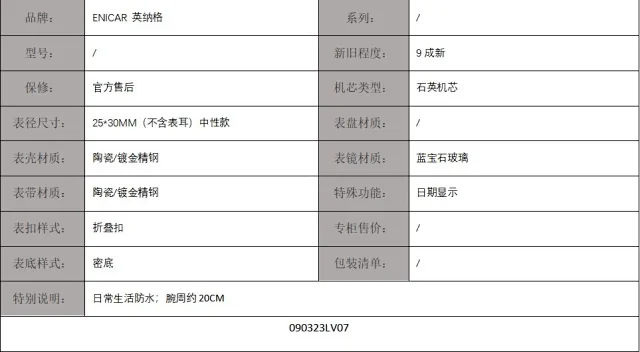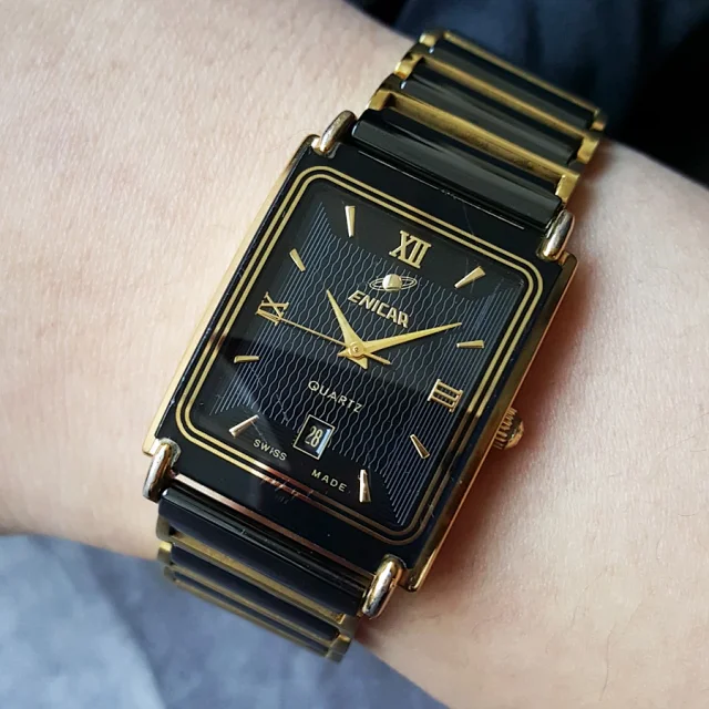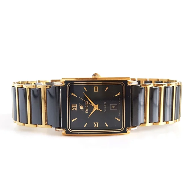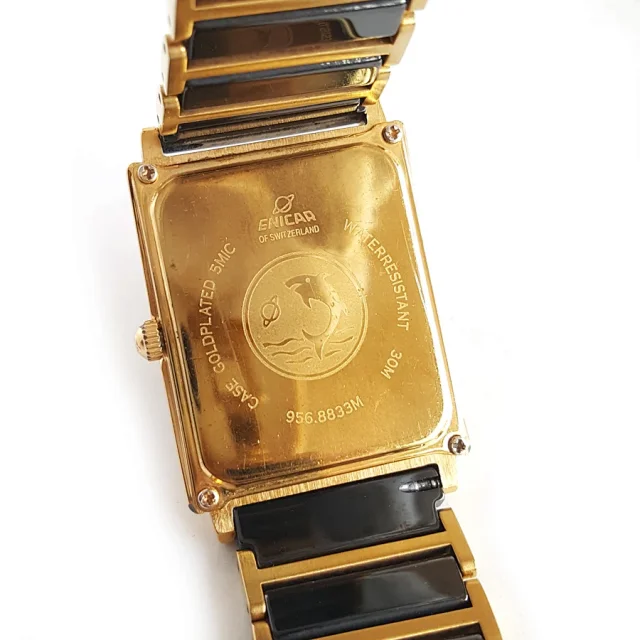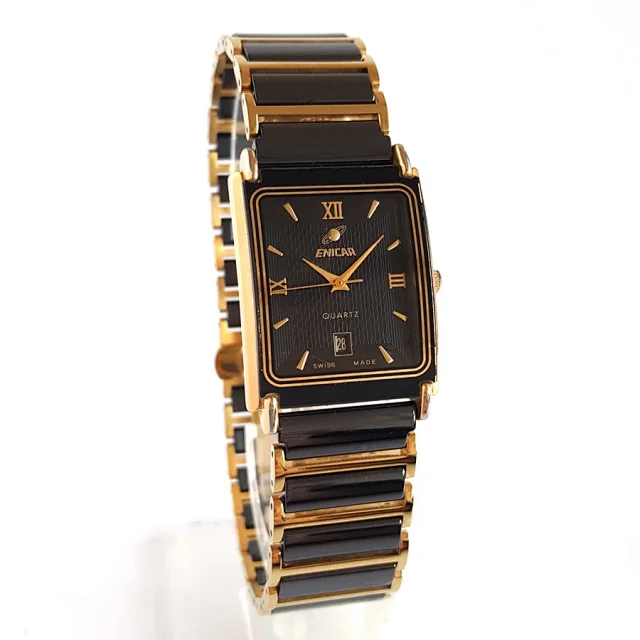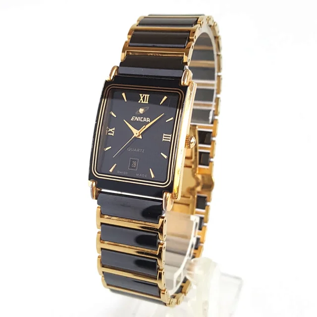 【9新】ENICAR 英纳格陶瓷/镀金精钢25*30MM日期显示石英机芯中性款 090323LV07