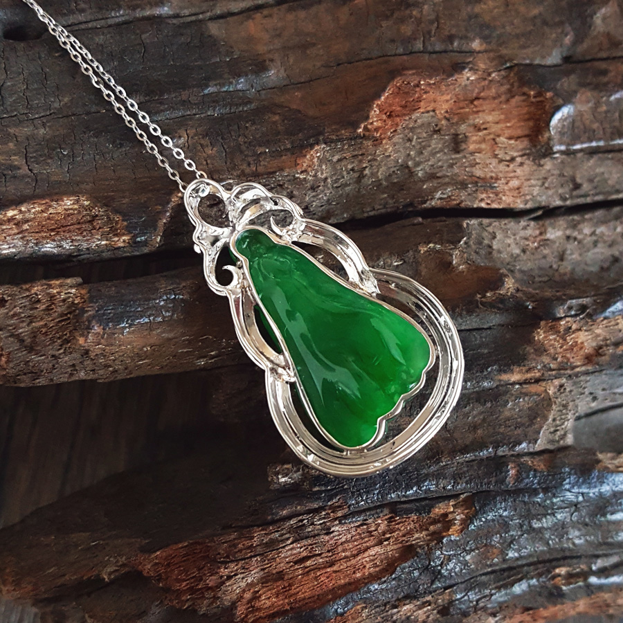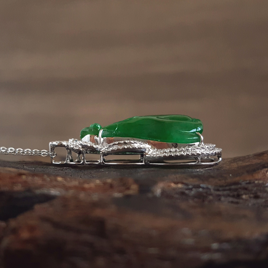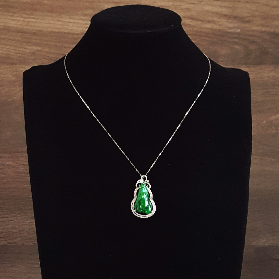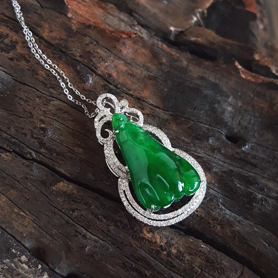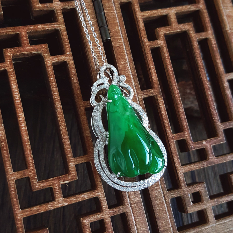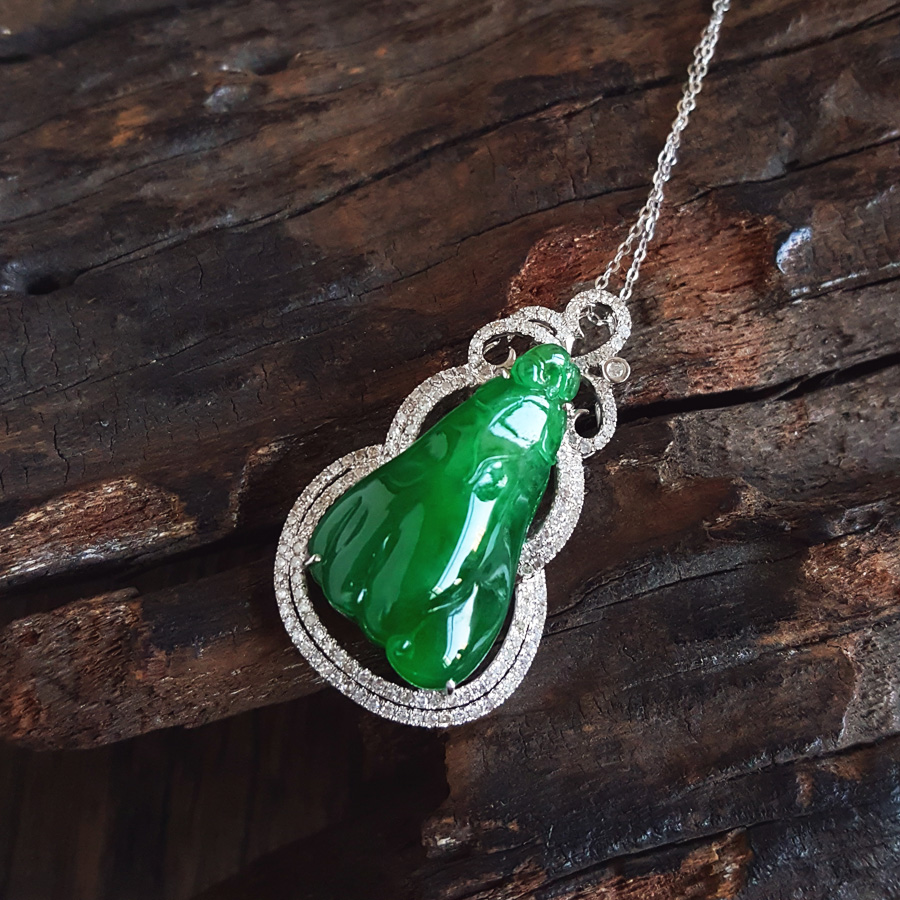 名称 | AU750收藏级白金豪镶钻镶天然细腻糯种福瓜造型满绿翡翠吊坠项链 |
