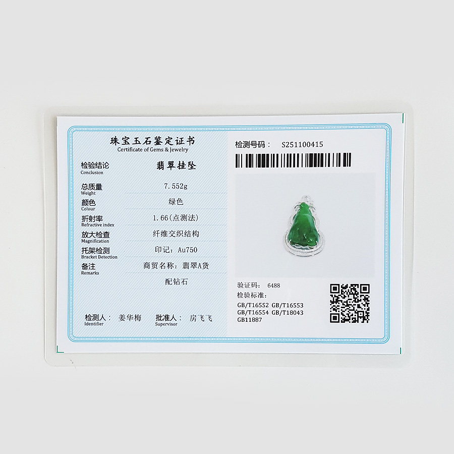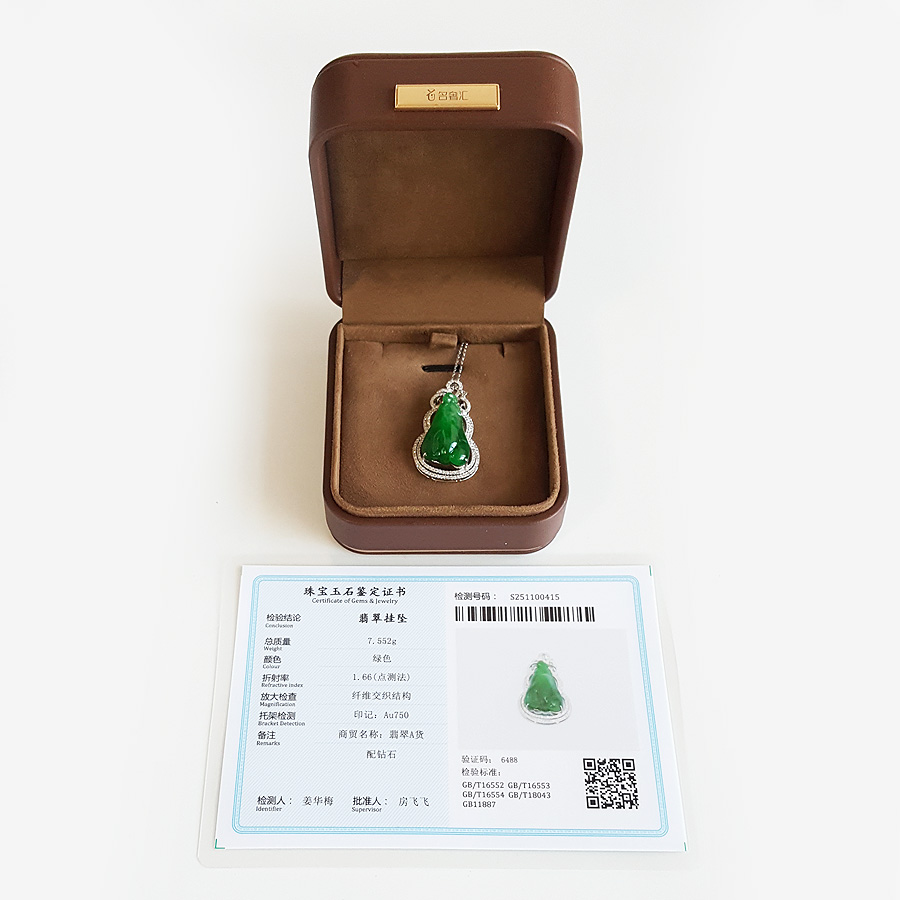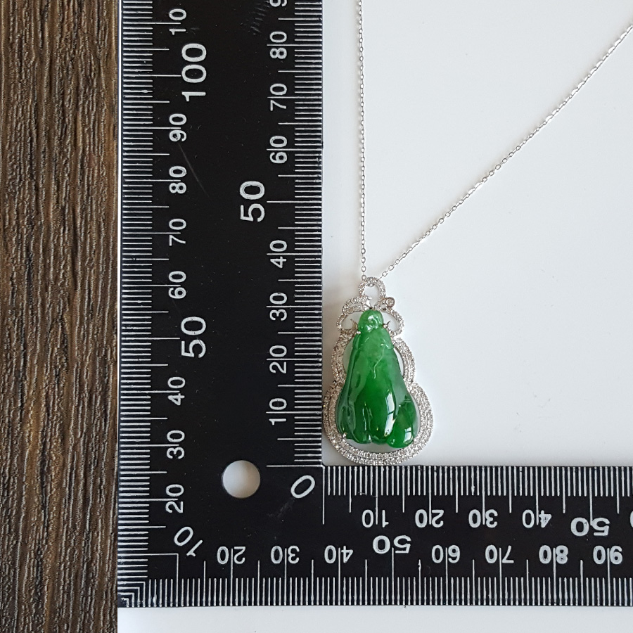 【天然正品】A货翡翠AU750收藏级白金豪镶钻镶天然细腻糯种福瓜造型满绿翡翠吊坠项链35.4*20.7*9.8MM(皆取最大值) 链长:45CM(长度可调节)女士210925NJS24