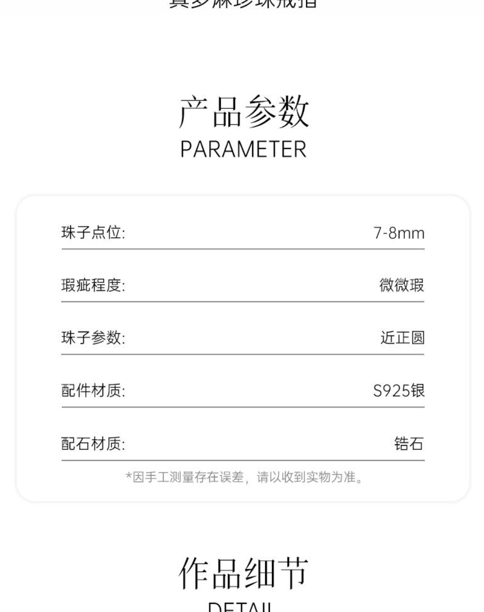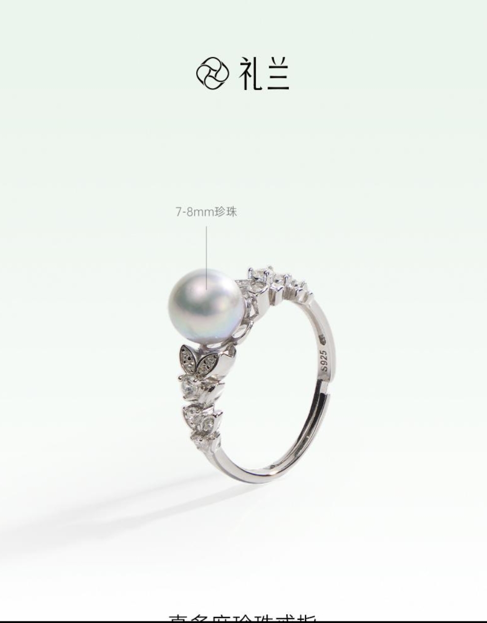 礼兰珠宝 S925银海水珍珠真多麻戒指7-8mm