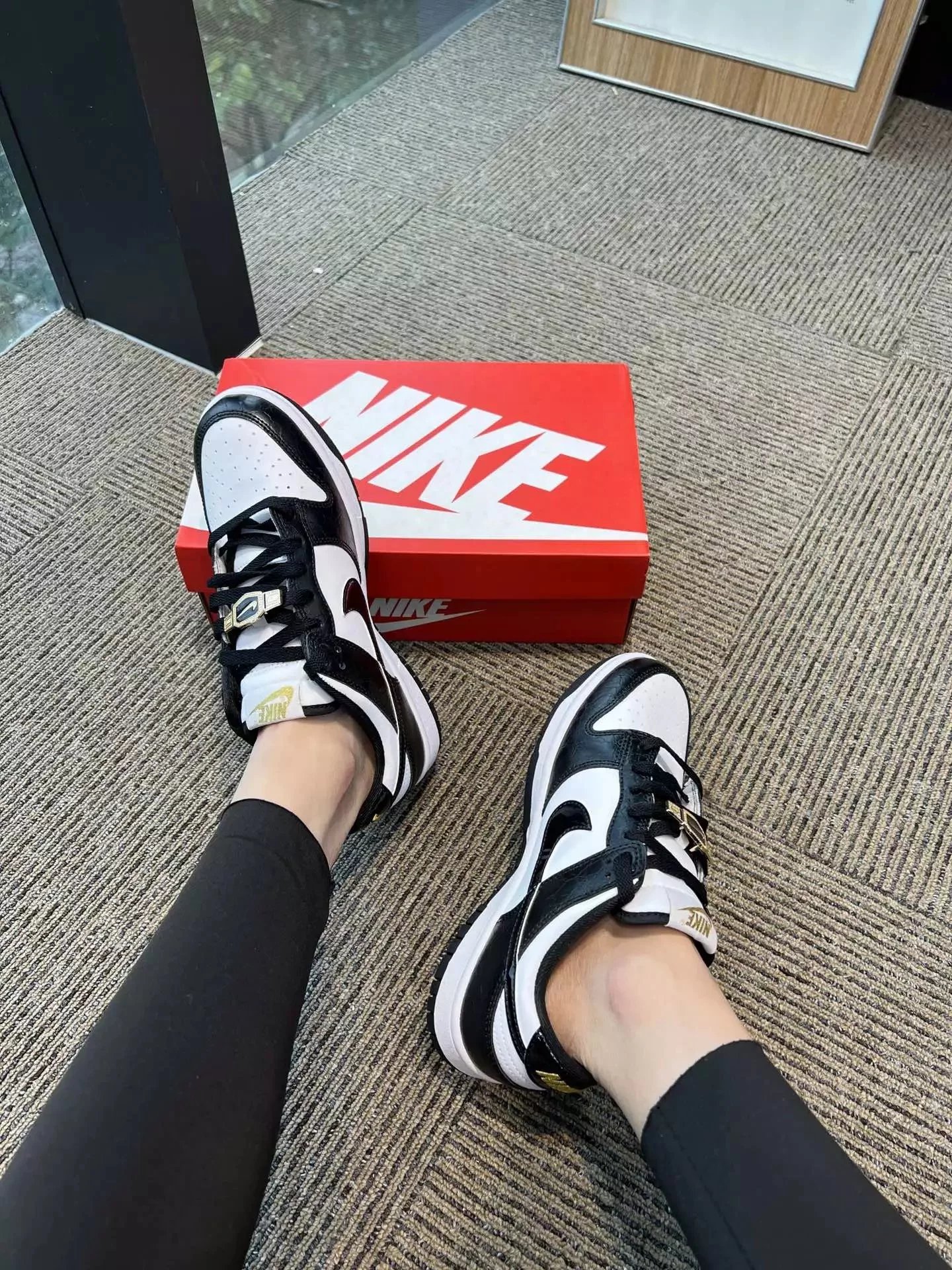 作为经典的黑白配色因为容易搭配再加上Dunk的热度一直有着相当高的人气,现在加上金带扣加入,更是目前鞋友们上脚频率最高的Dunk之一,后跟约3CM