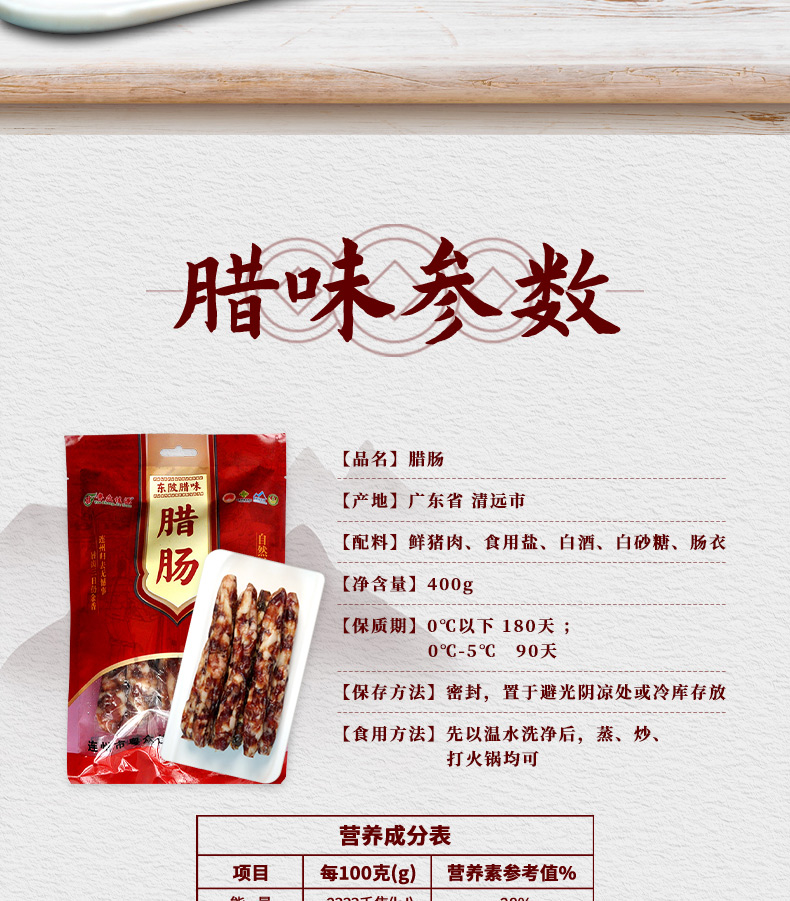 广东清远连州市粤众佳源东陂腊肠400g/袋