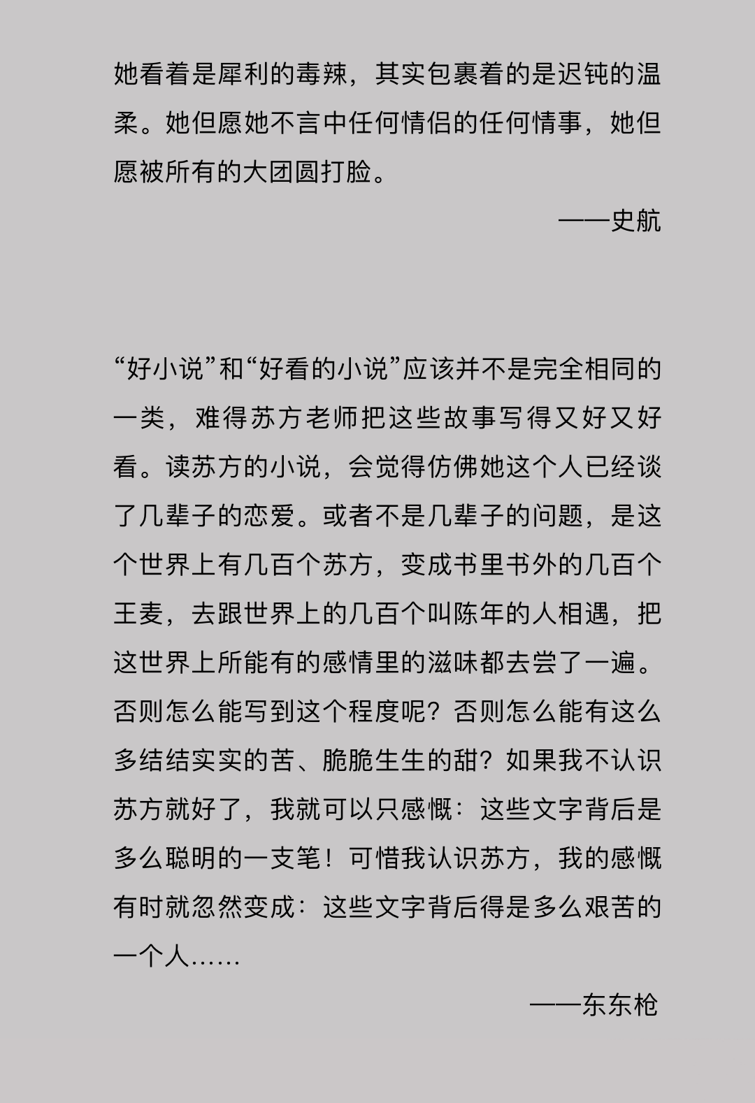 ★ 继《一些时刻》《异乡记》后苏方的第三本短篇小说集,书写穹顶之下,人与人的战争,我们共同的失败-- 十一篇小说,几十个男人女人,千百个故事。关于谎言,遗忘,愤怒,杀戮,玩笑,割舍,失落,希望。也许每个都不是你,但总有一个时刻,有你。