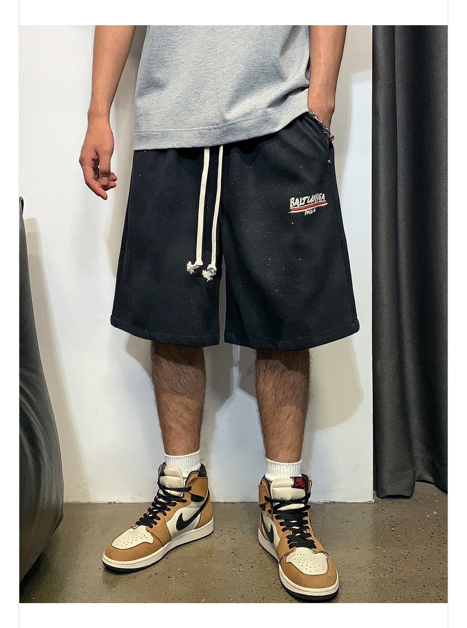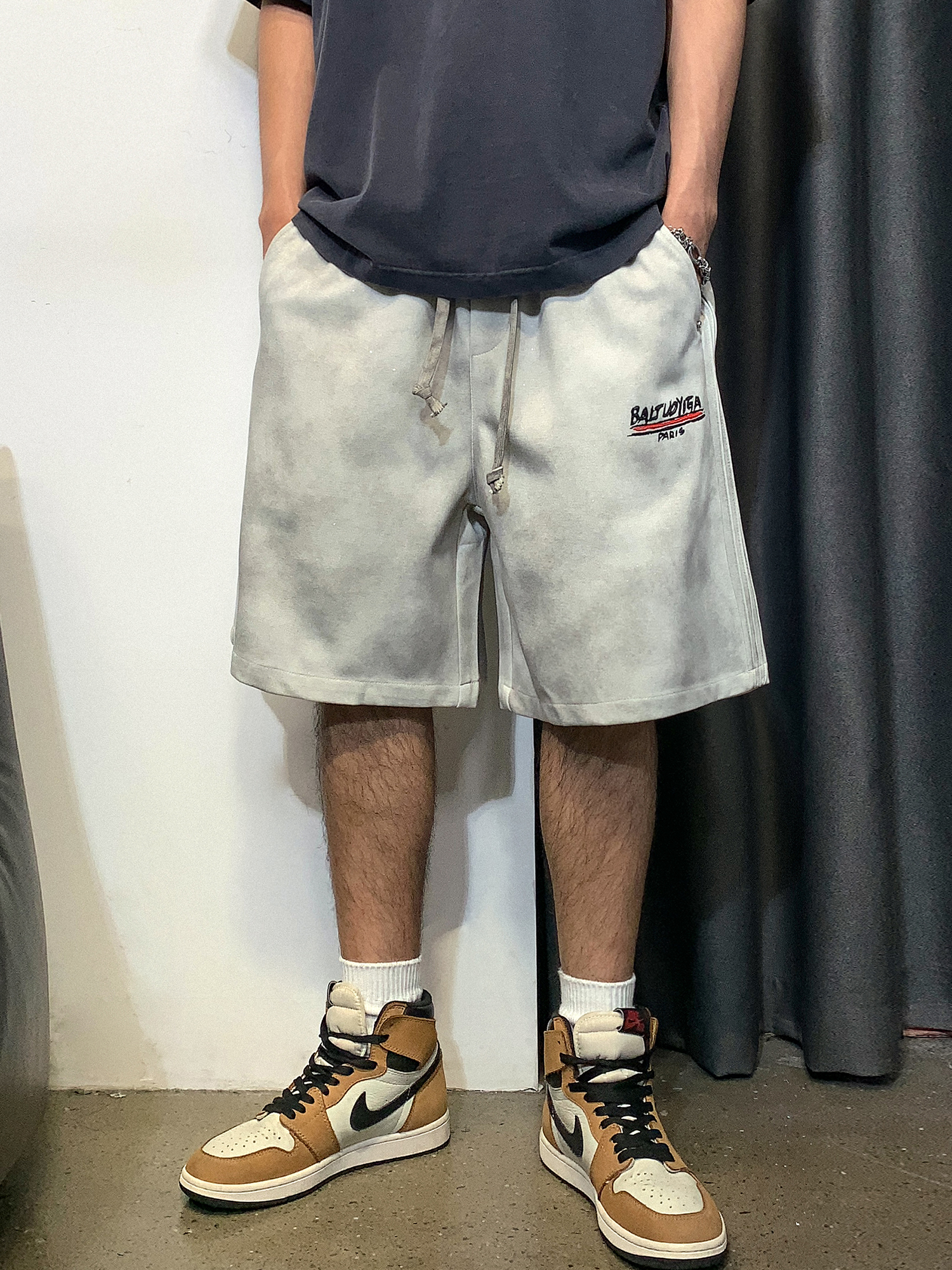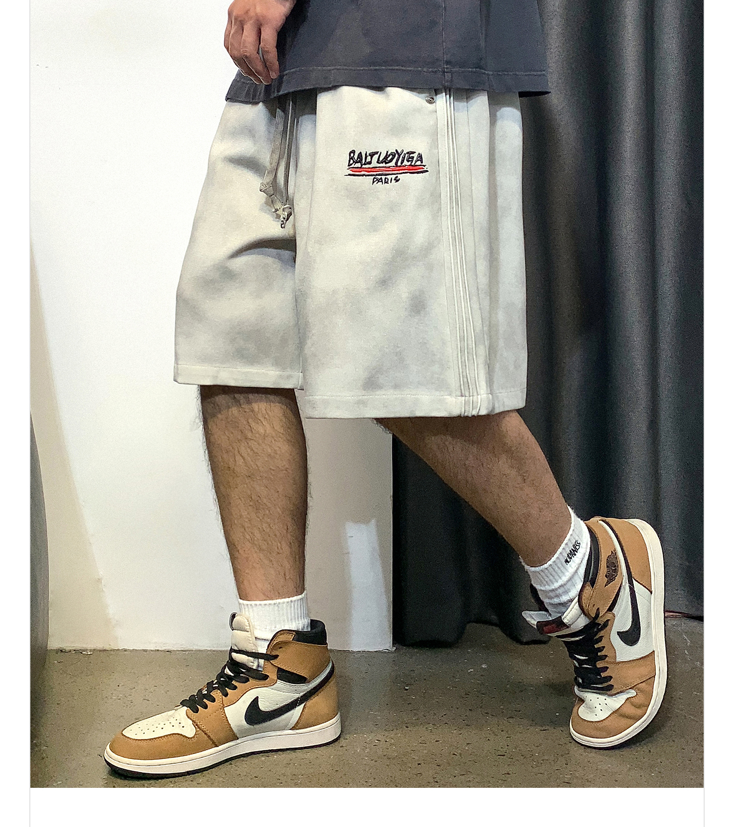 徐太浪时尚美式水洗脏脏裤短裤男夏季新款中腰宽松直筒休闲五分裤