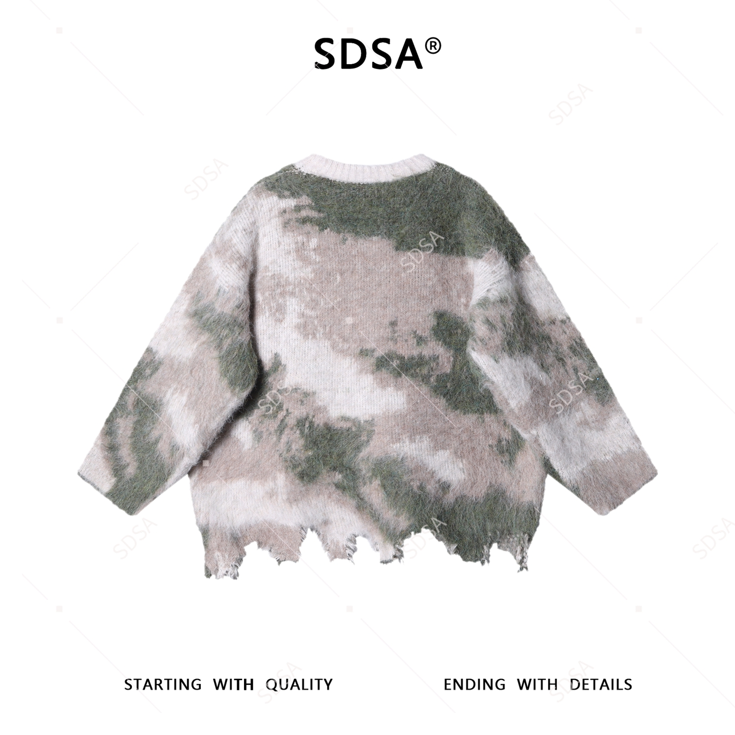 SDSA男士秋冬新款痞帅男装设计感不规则撞色圆领毛衣慵懒风百搭