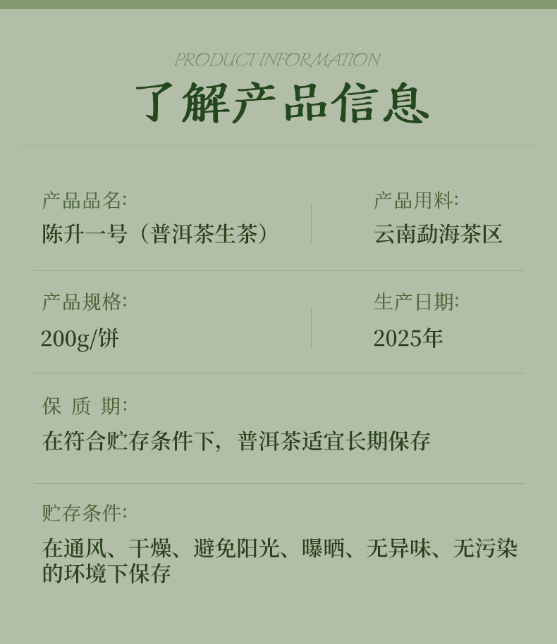 陈升号 2025年陈升一号200g(生茶)