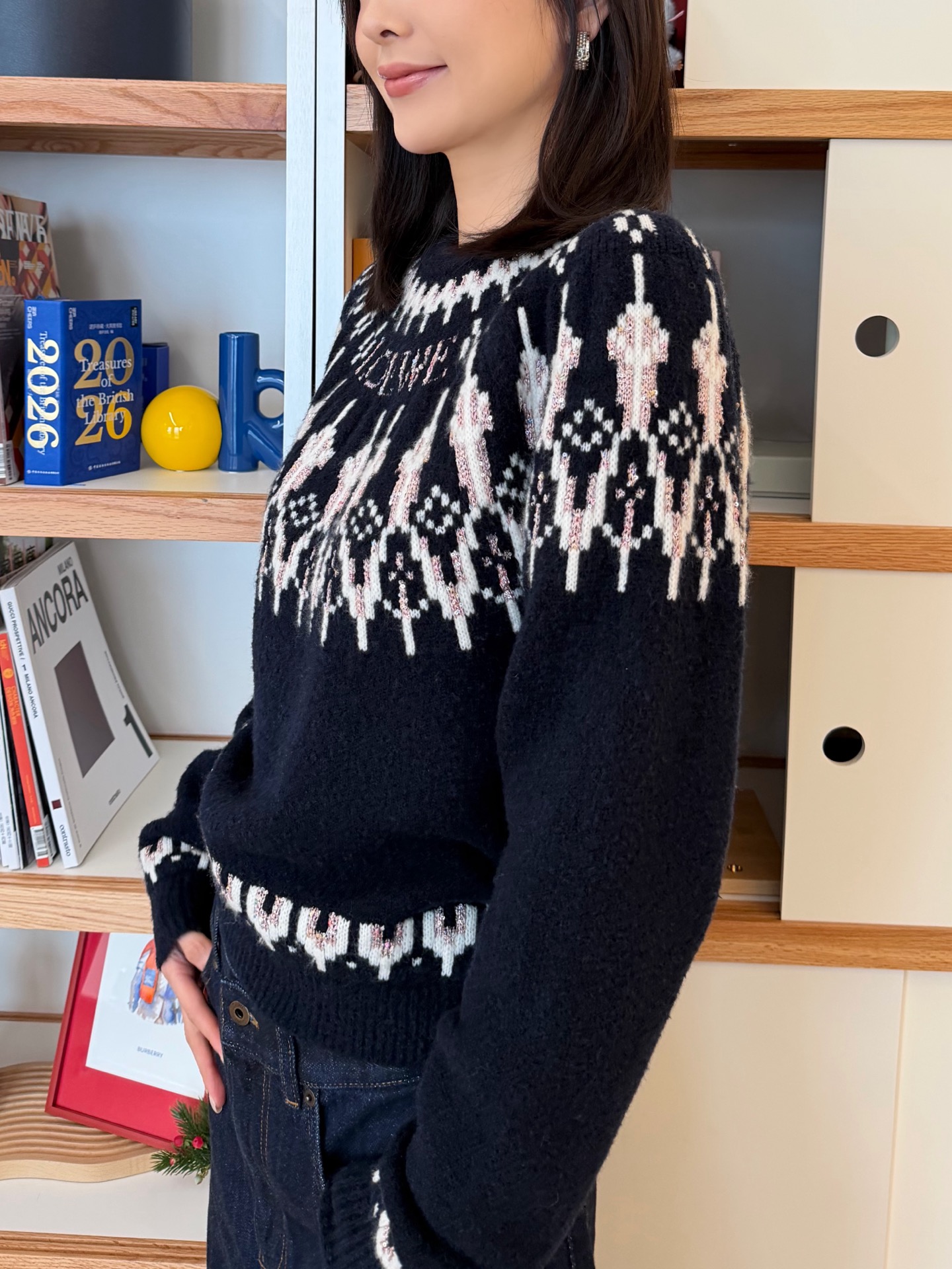 【新款现货发售】2026早春新品💗重工费尔岛毛衣🎶毛茸茸软乎乎🤩太可爱了✨轻质地羊毛混纺纱线🧵搭配重工彩片特定金丝线‘真的太亮眼了🥰宽松阔版型,富有弹力 轻盈蓬松,柔软丰盈 并且有光泽感🔜颜色过渡的绝美!更加生动立体☑️果真是冒着仙气的单品💙随意对比,可以随意搭配下半身,带来无限风格💫姐妹们,赶快冲😜码数SML