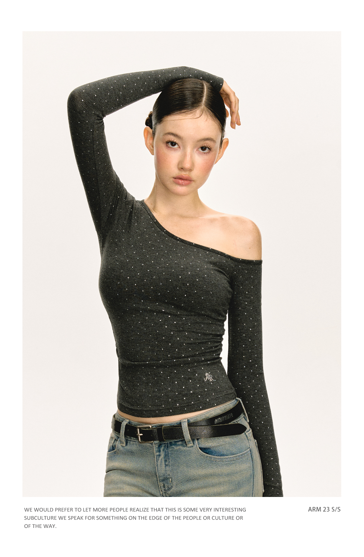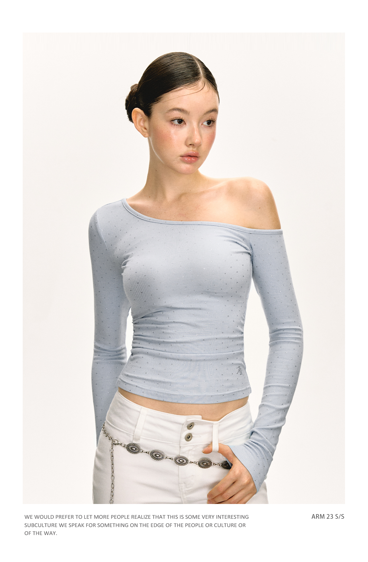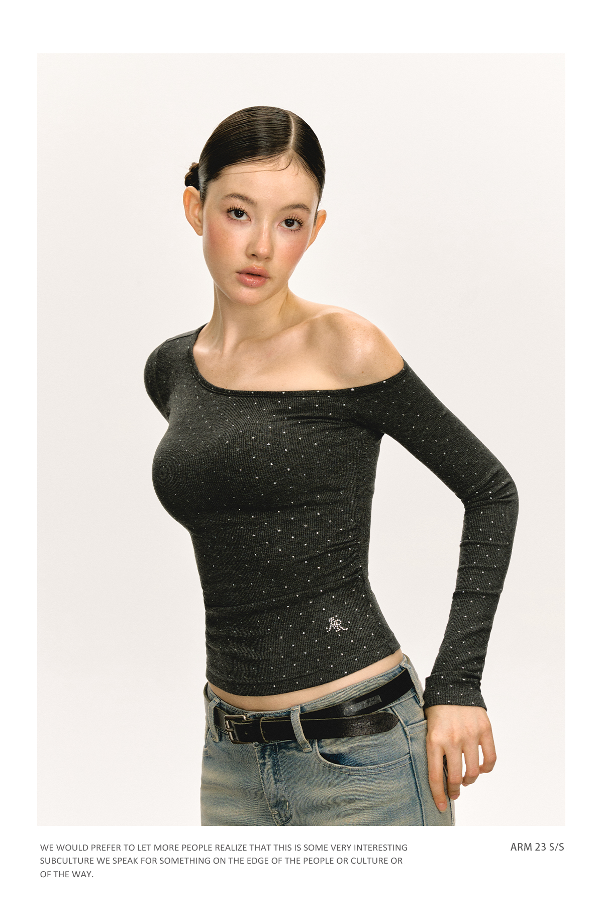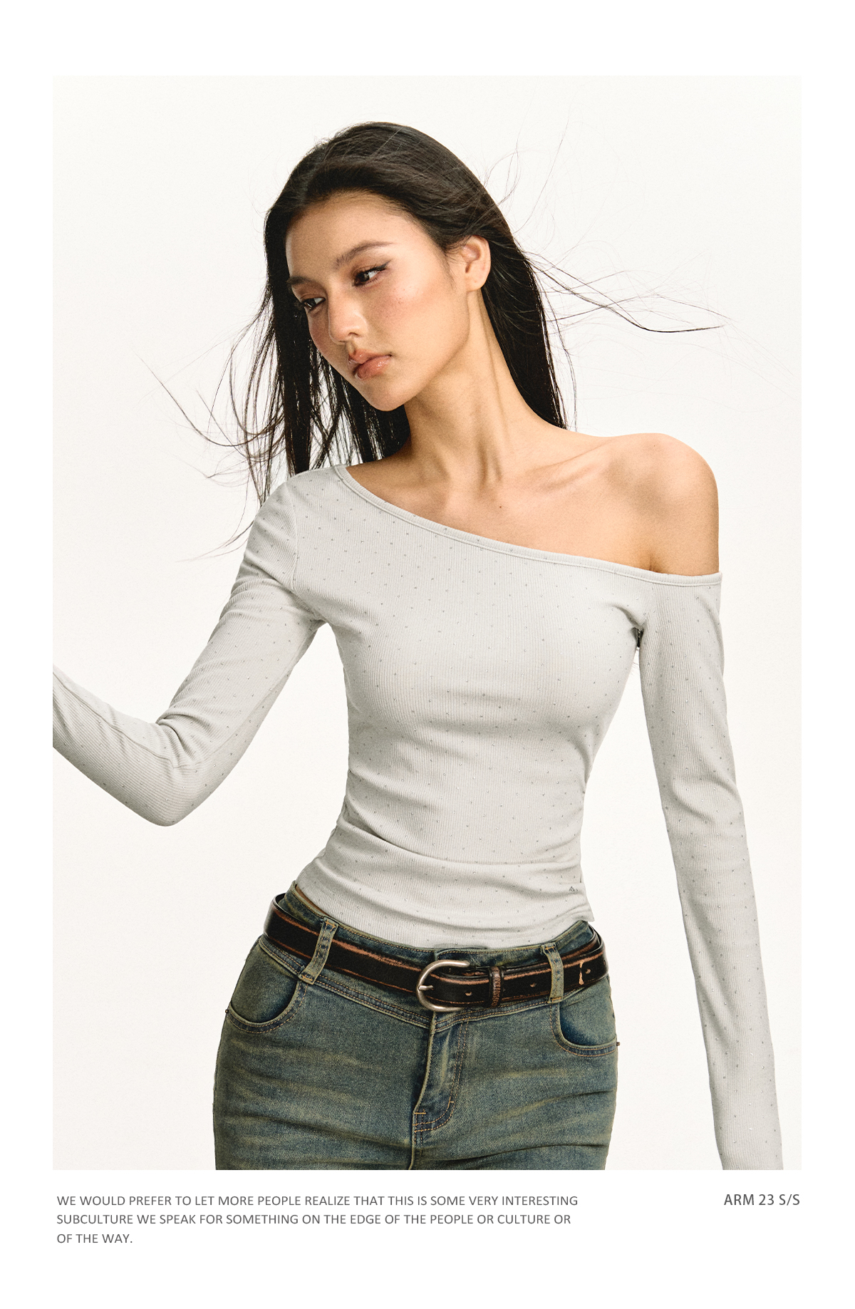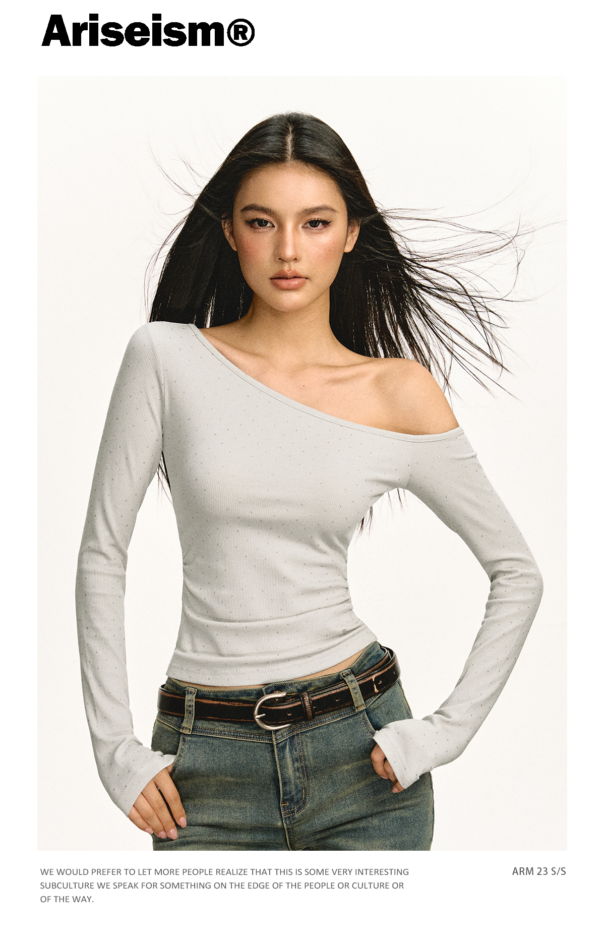 Ariseism 美式设计感露肩长袖T恤女春季新款辣妹打底内搭修身上衣