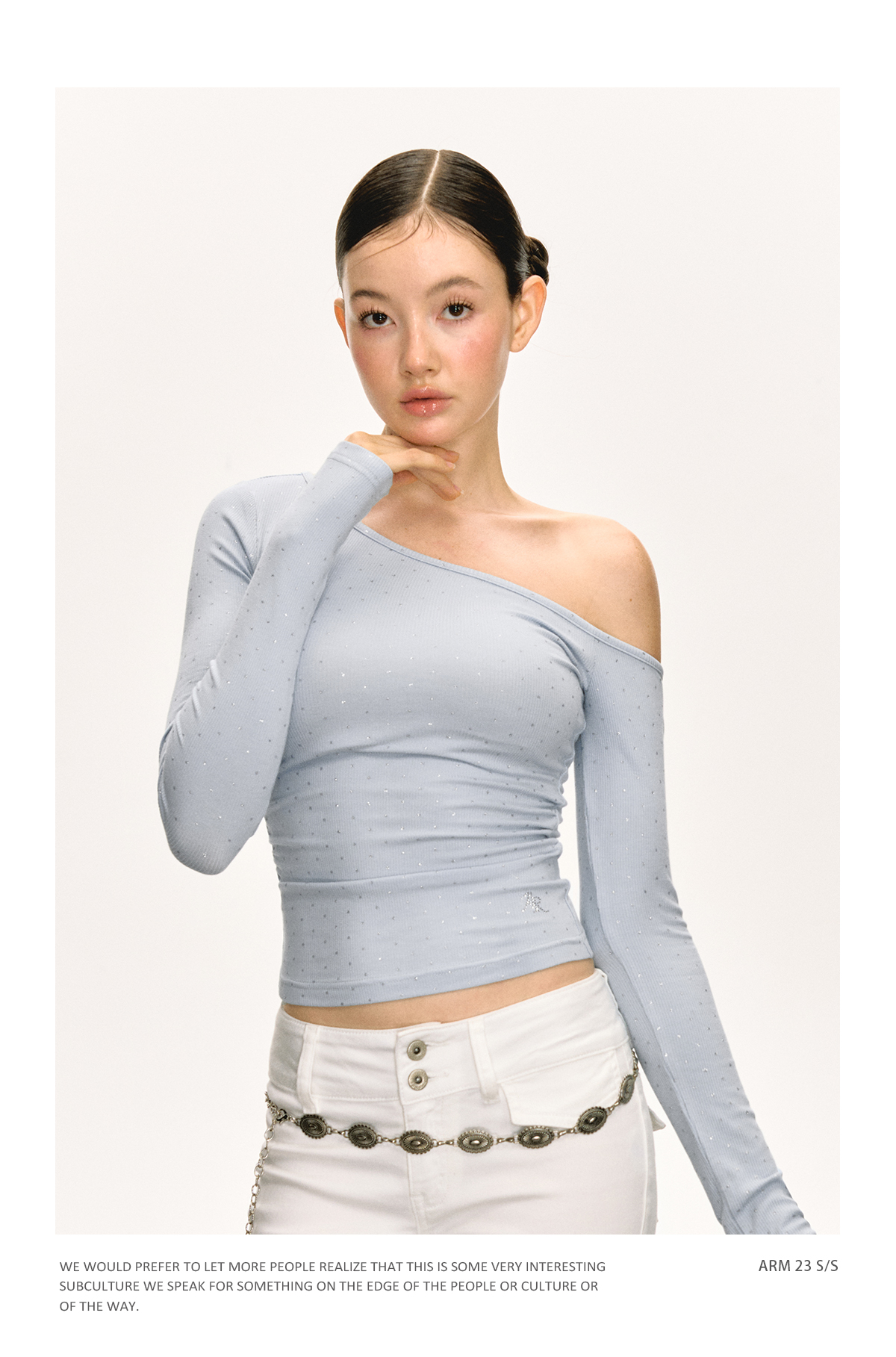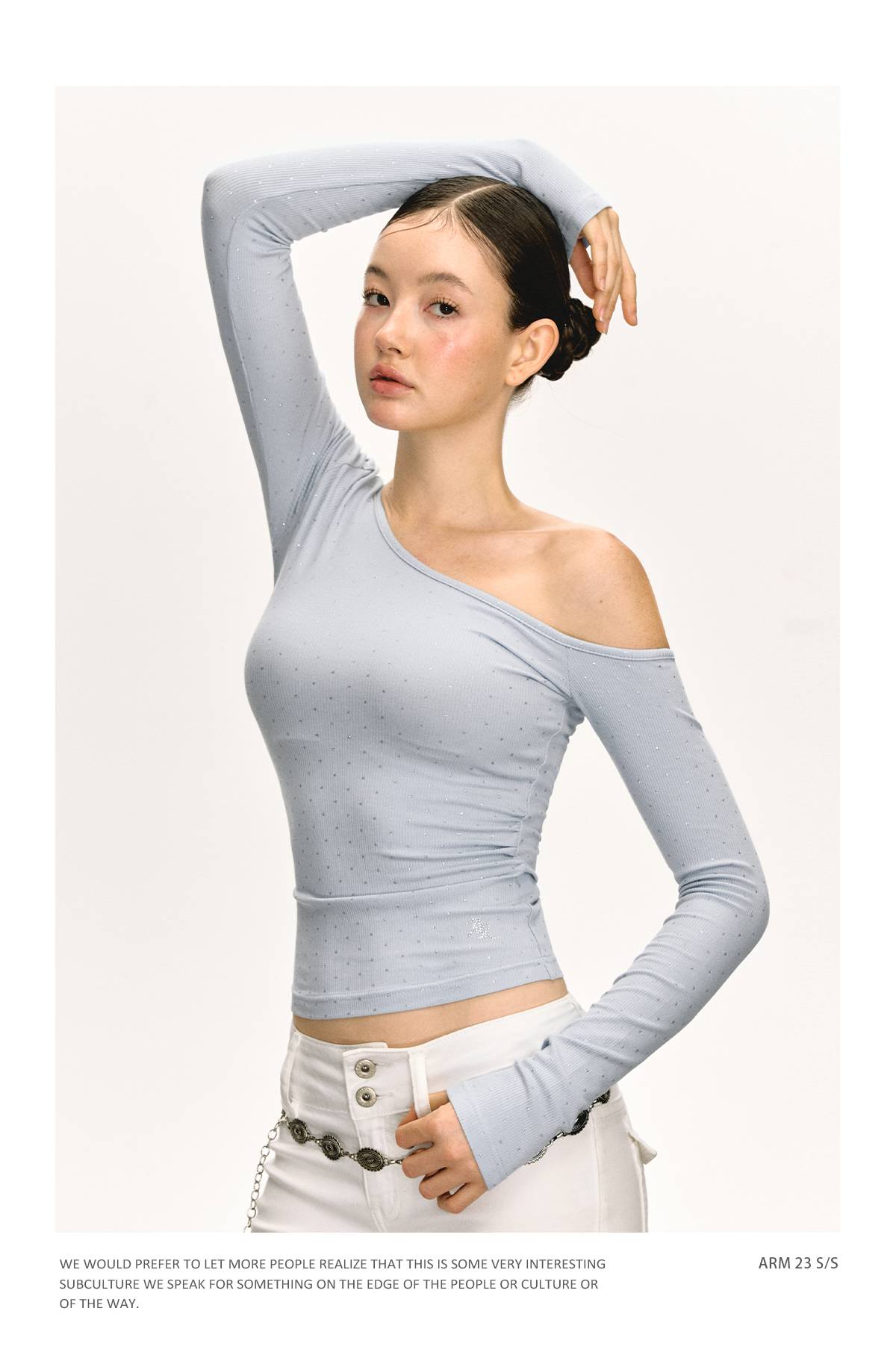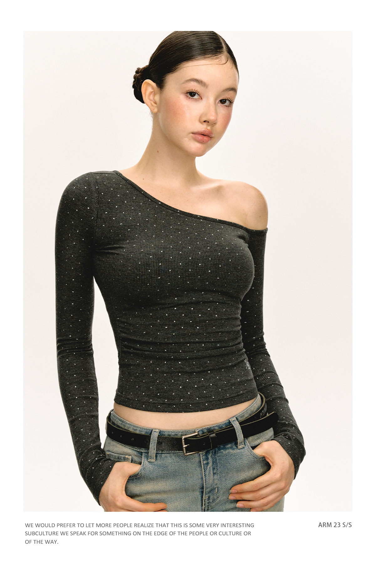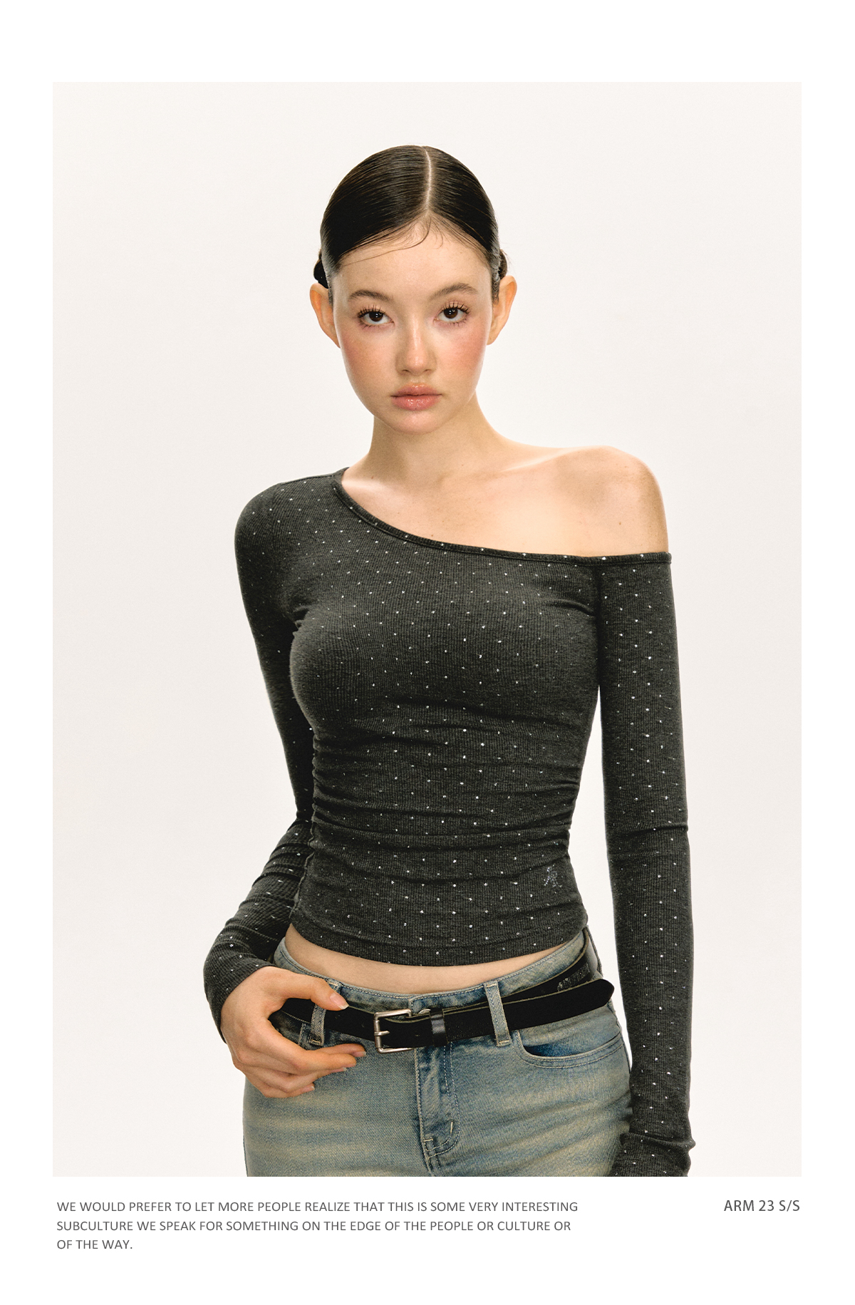 Ariseism 美式设计感露肩长袖T恤女春季新款辣妹打底内搭修身上衣
