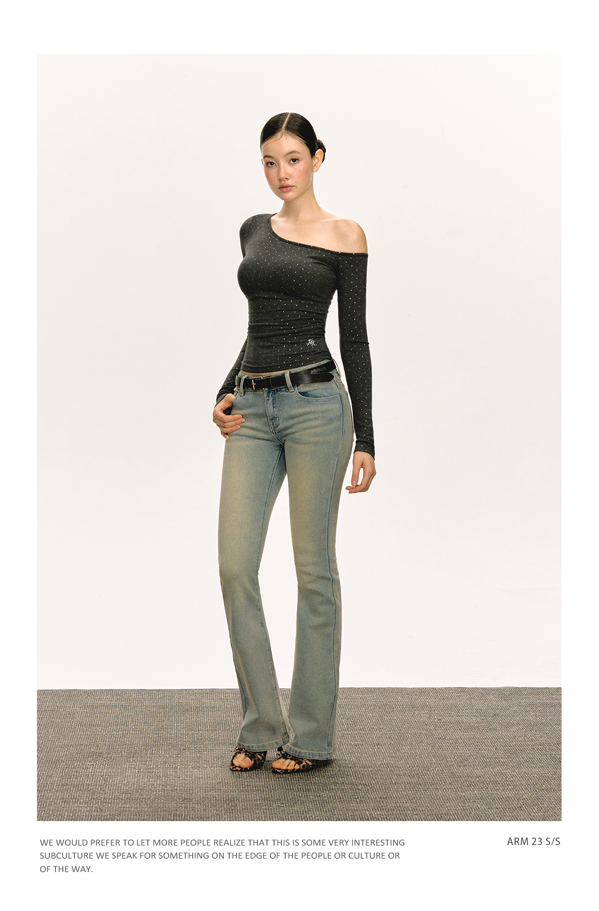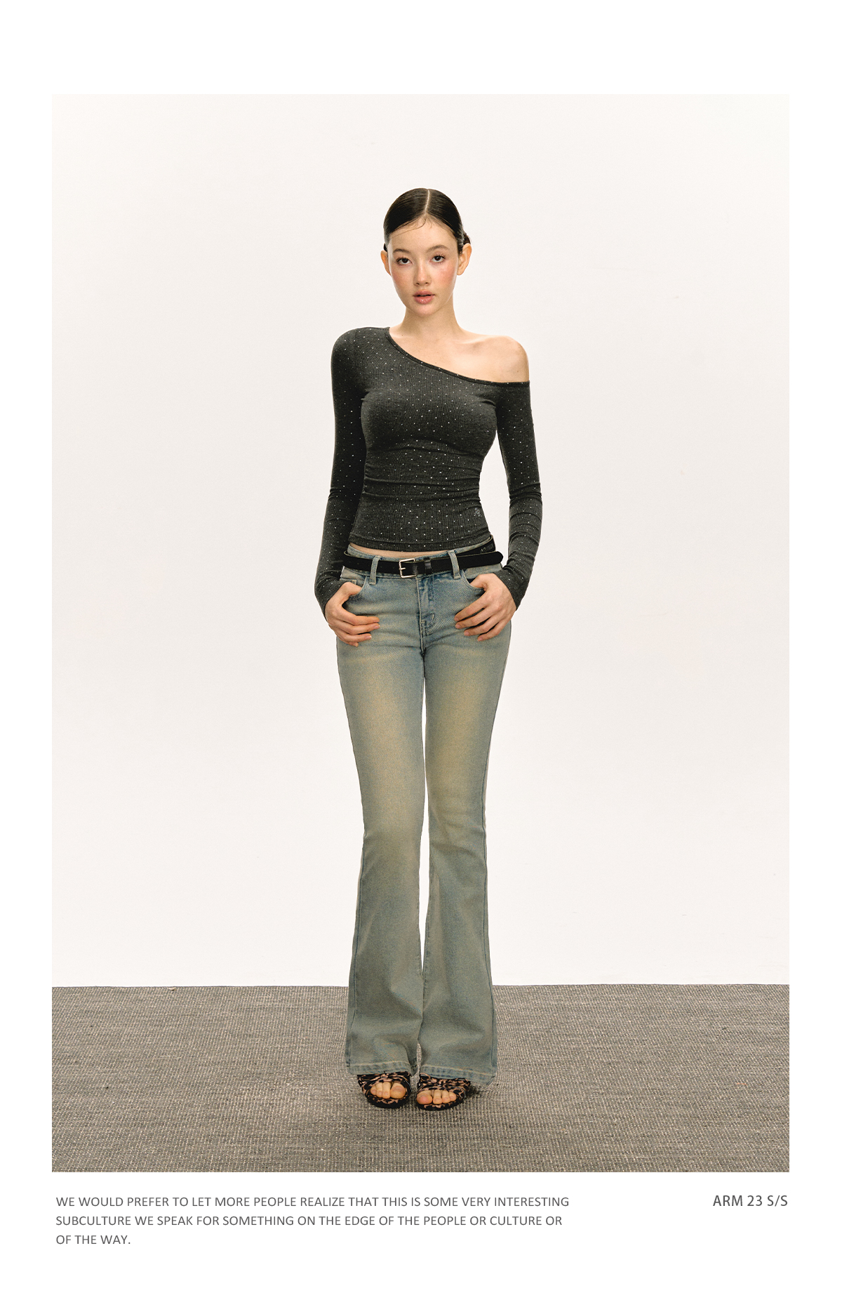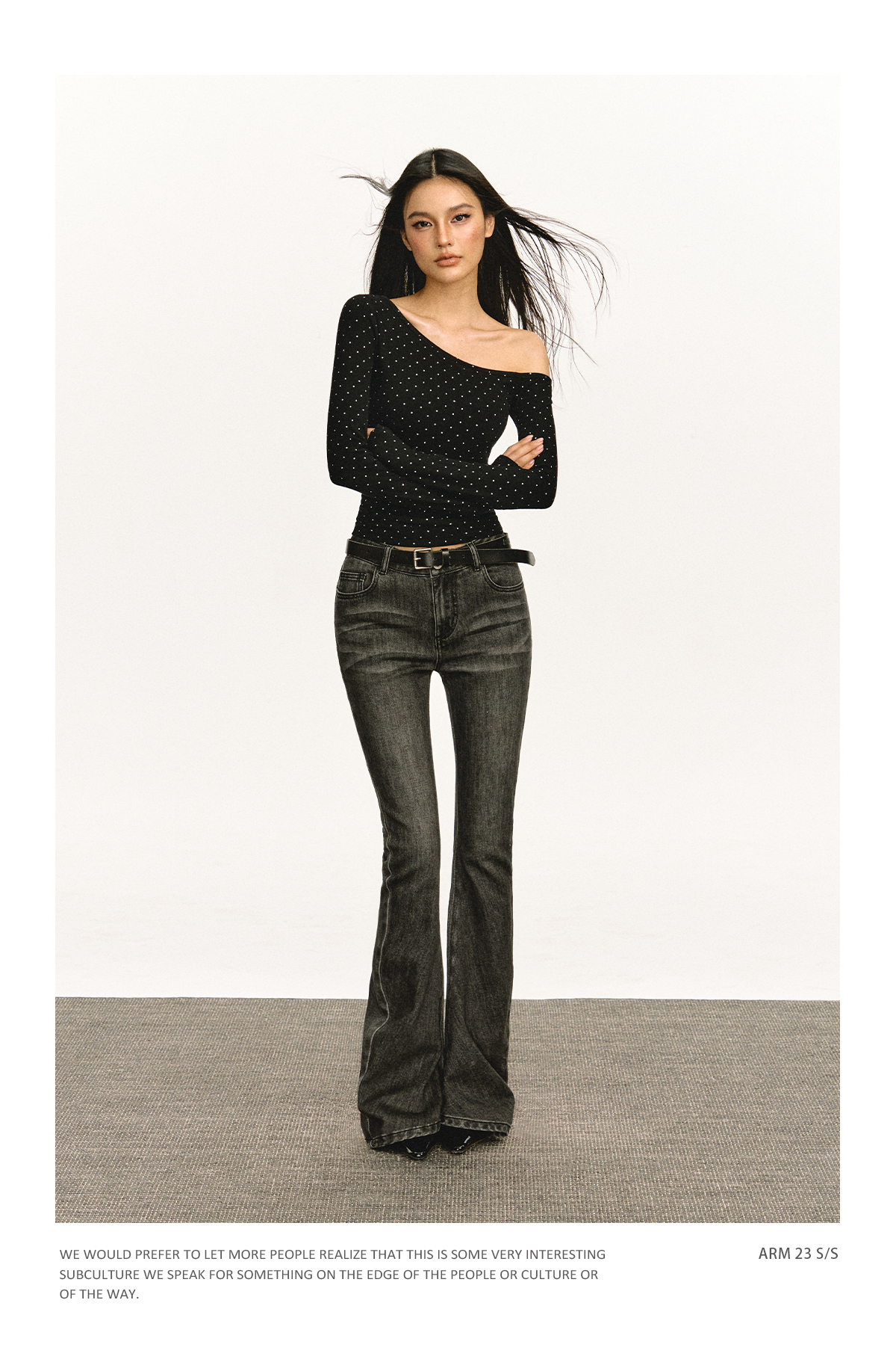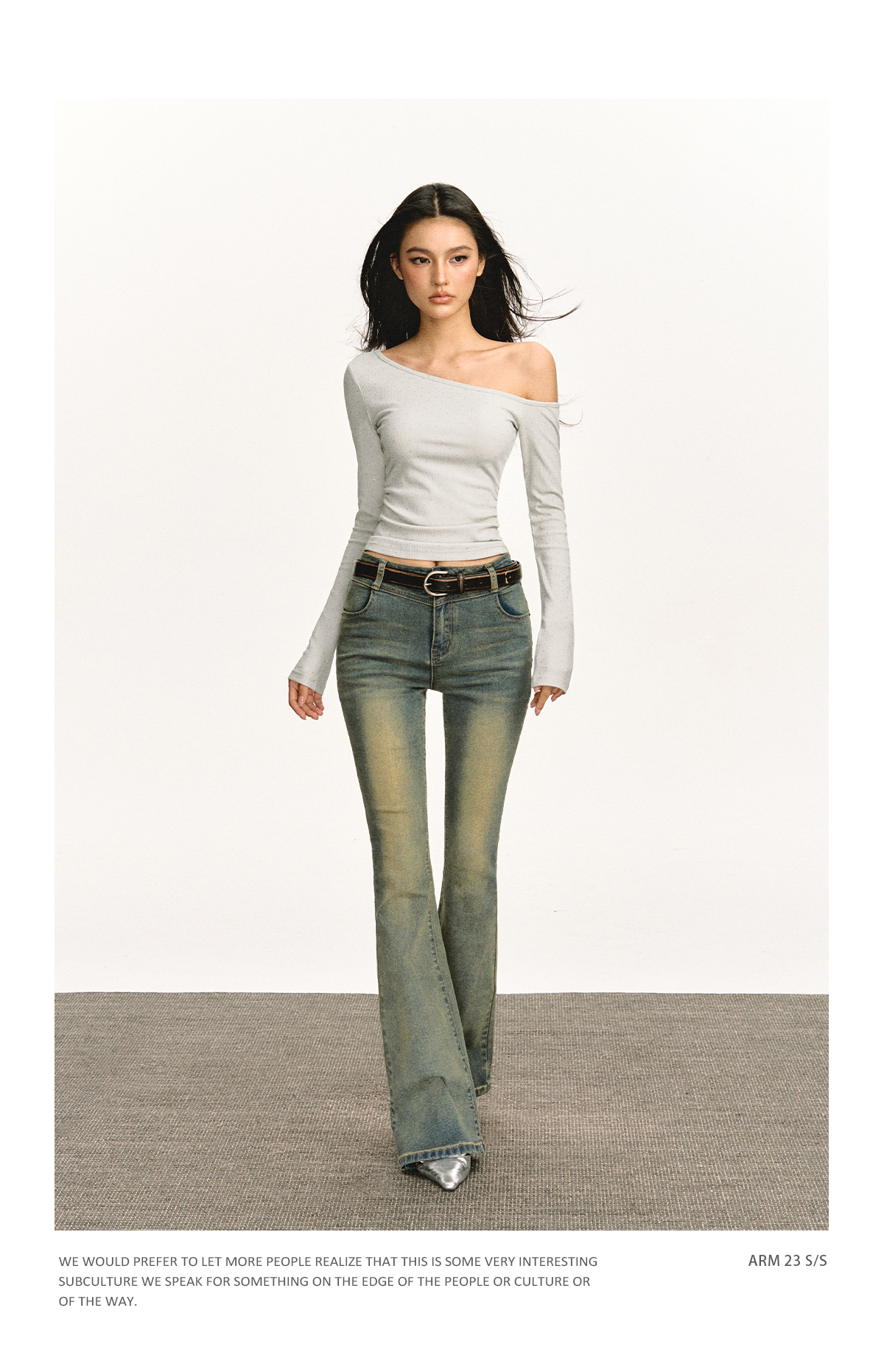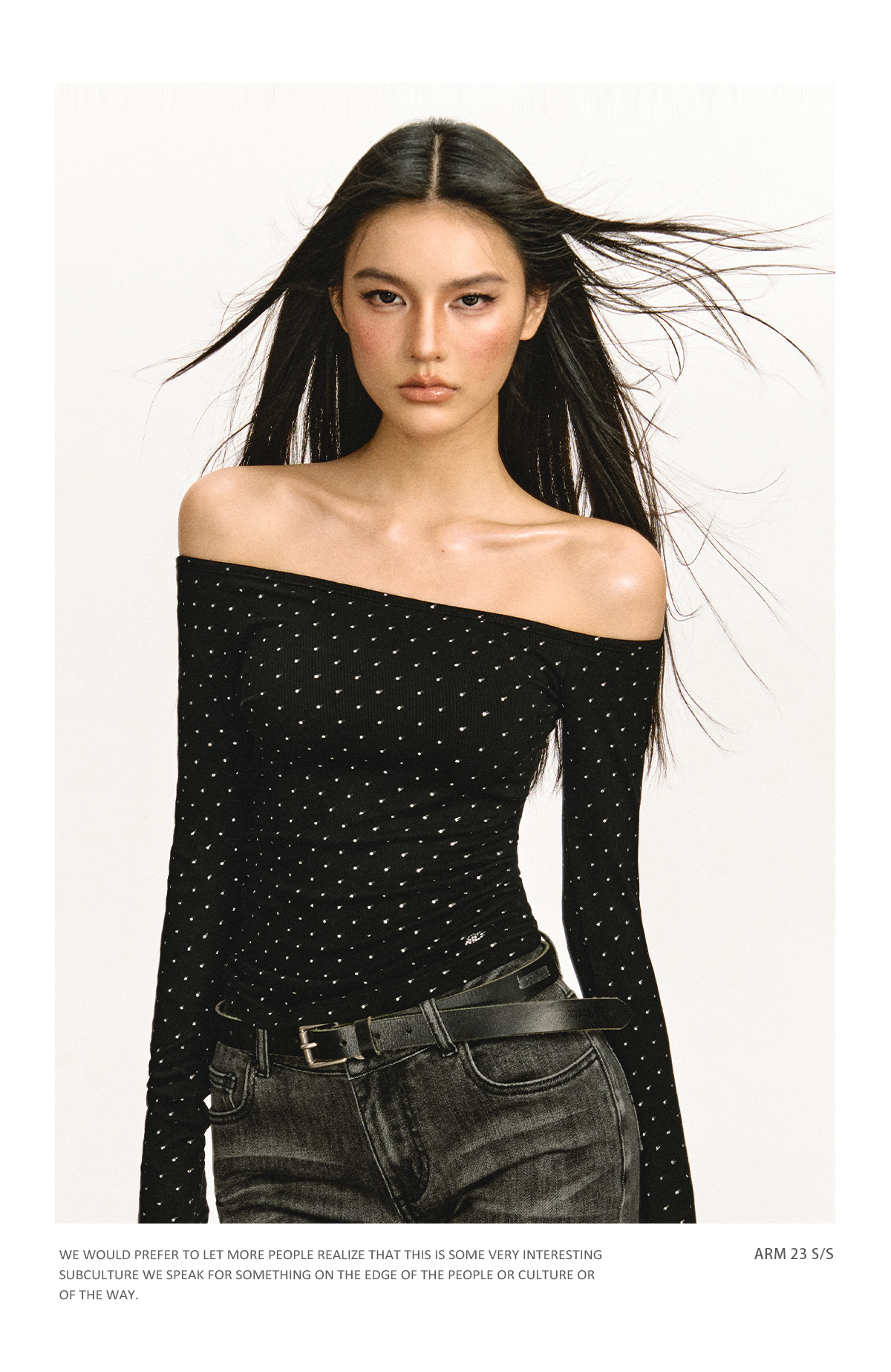 Ariseism 美式设计感露肩长袖T恤女春季新款辣妹打底内搭修身上衣