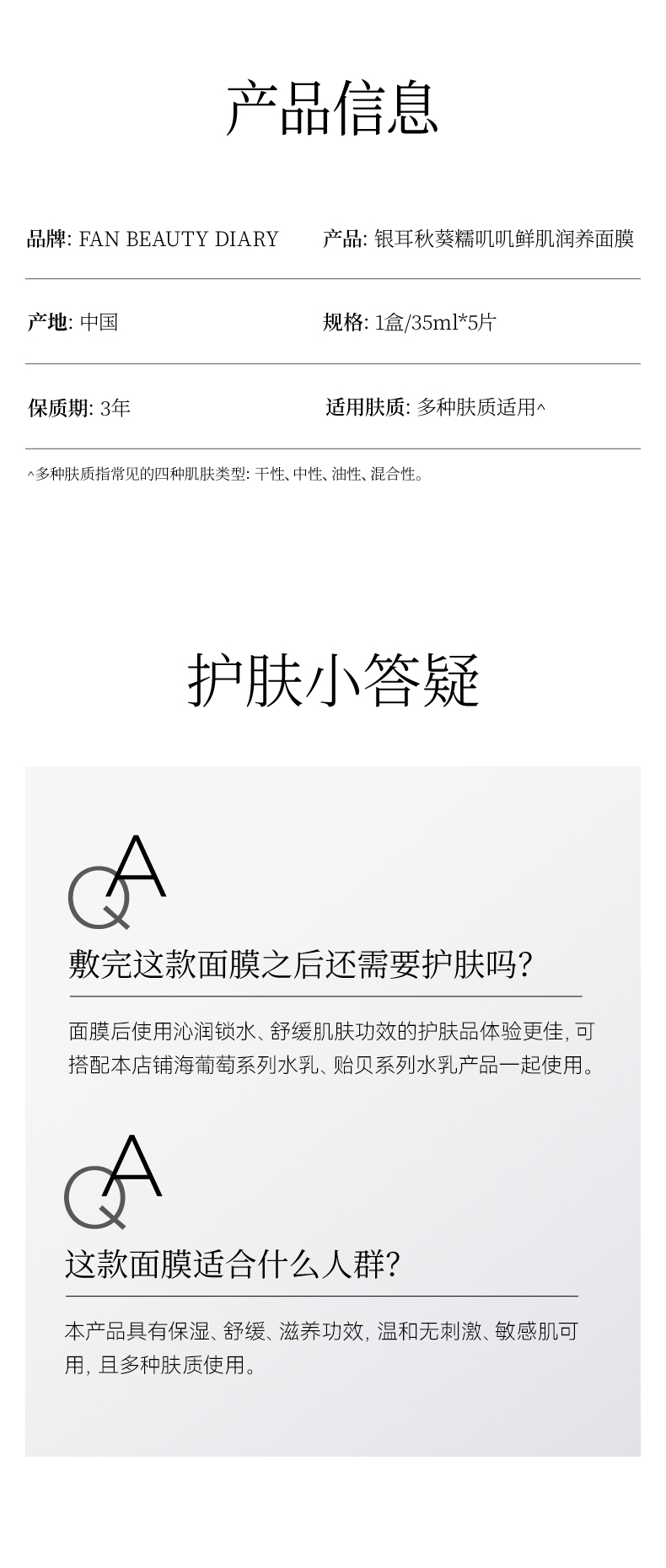 FAN BEAUTY DIARY 银耳秋葵糯叽叽鲜肌润养面膜5片/盒(全英文标)