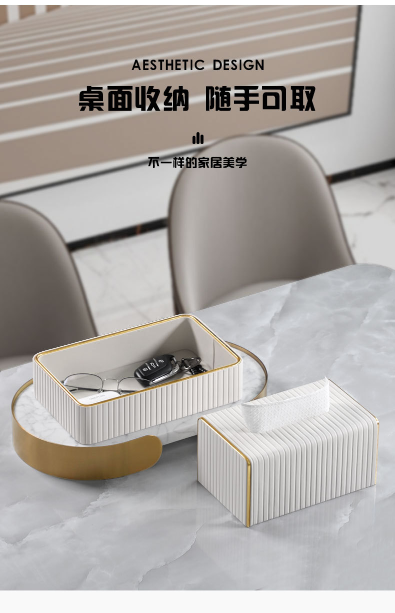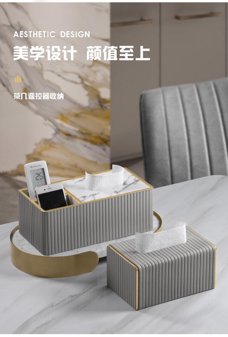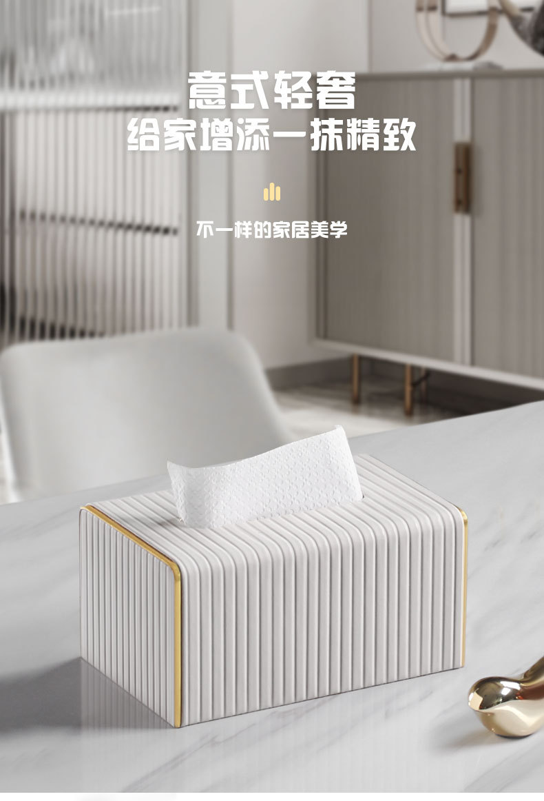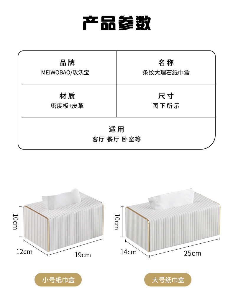 【白色/浅灰】娜家高档皮革条纹大理石纸巾盒