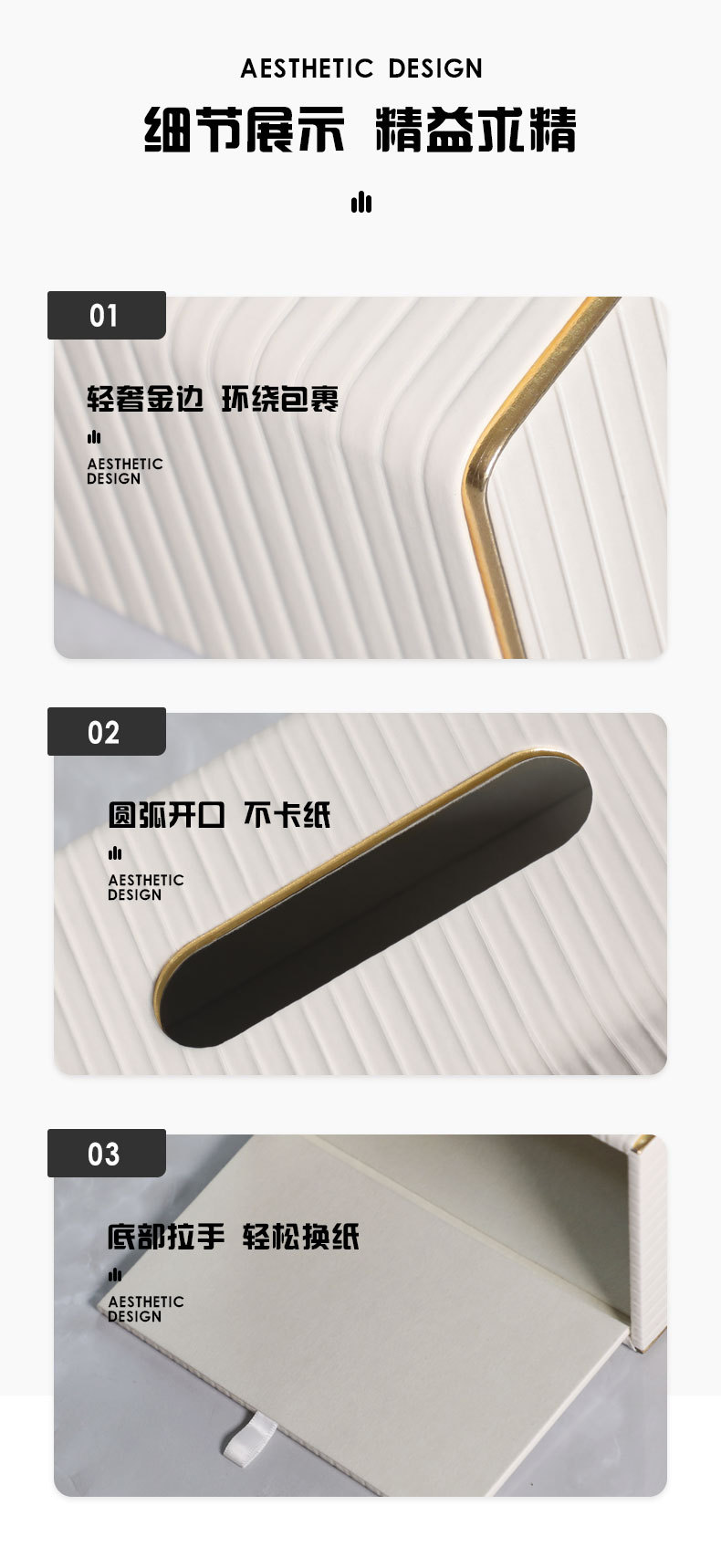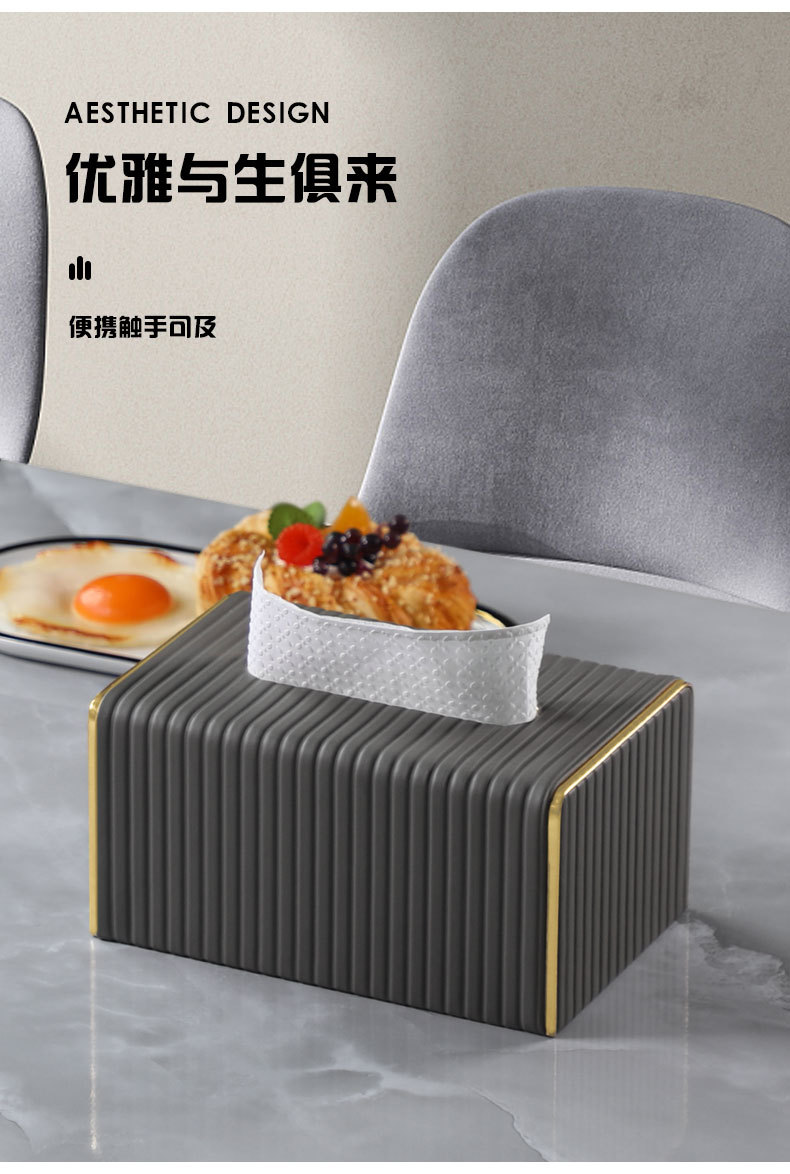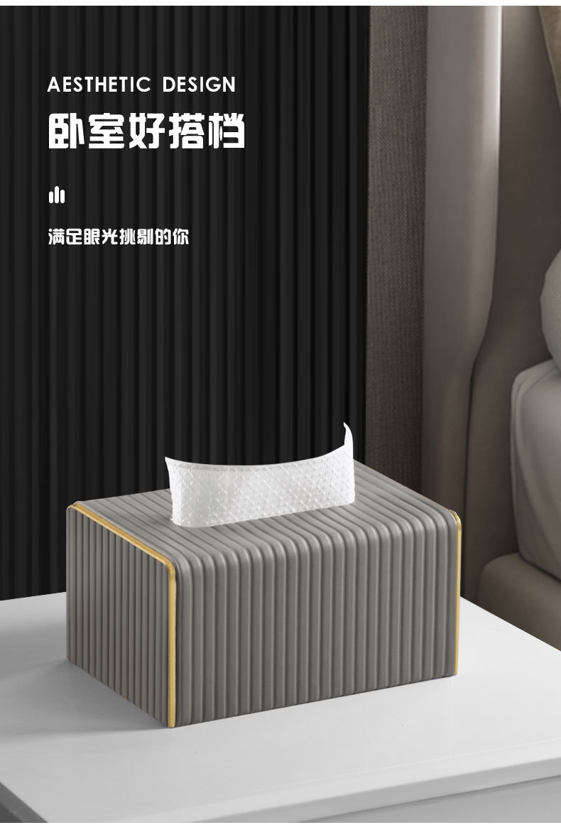 【白色/浅灰】娜家高档皮革条纹大理石纸巾盒