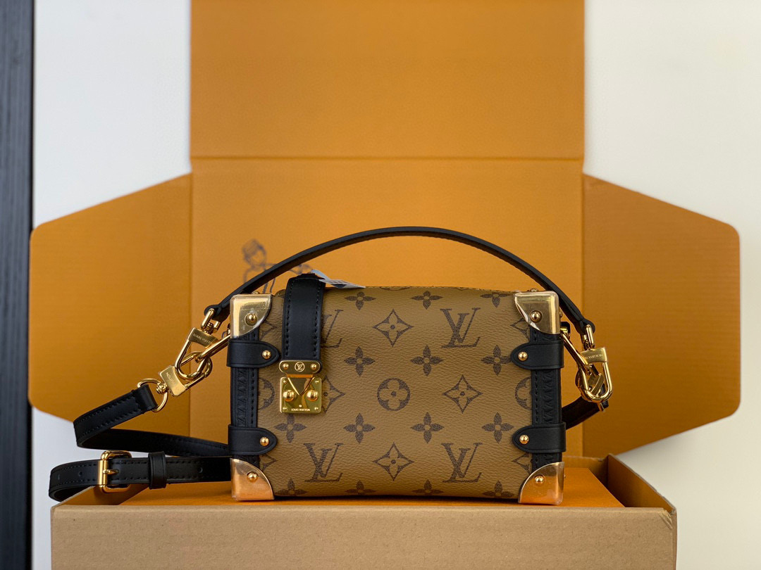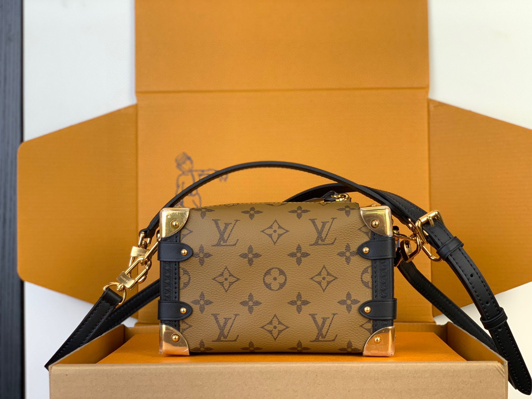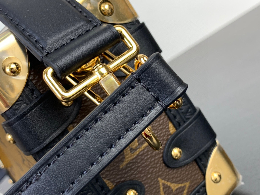 驴家 Trunk 可调节可拆卸肩带拉链开合 帆布拼牛皮 软盒子单肩斜挎包 男女同款情侣款 黑色拼棕色(JPH)