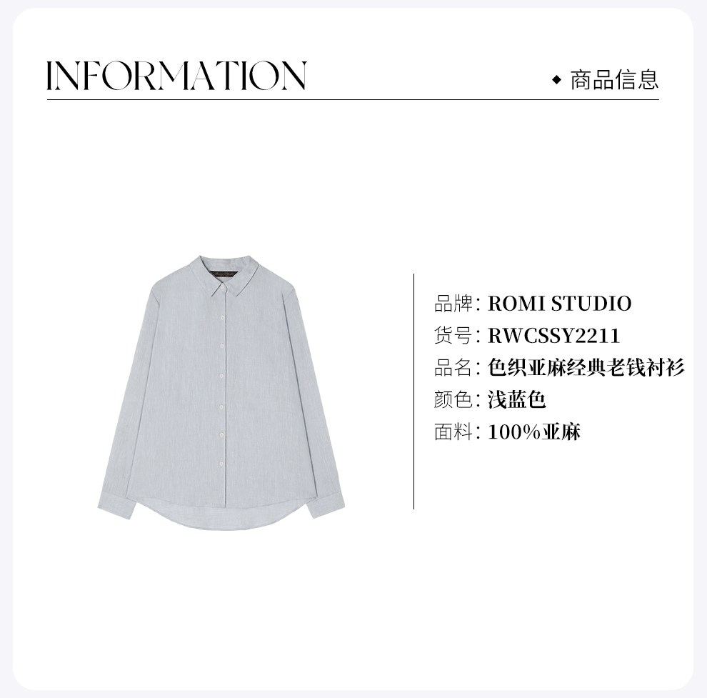 ROMI STUDIO“随性自然”100%色织亚麻天然肌理翻领衬衣 RWCSSY2211
