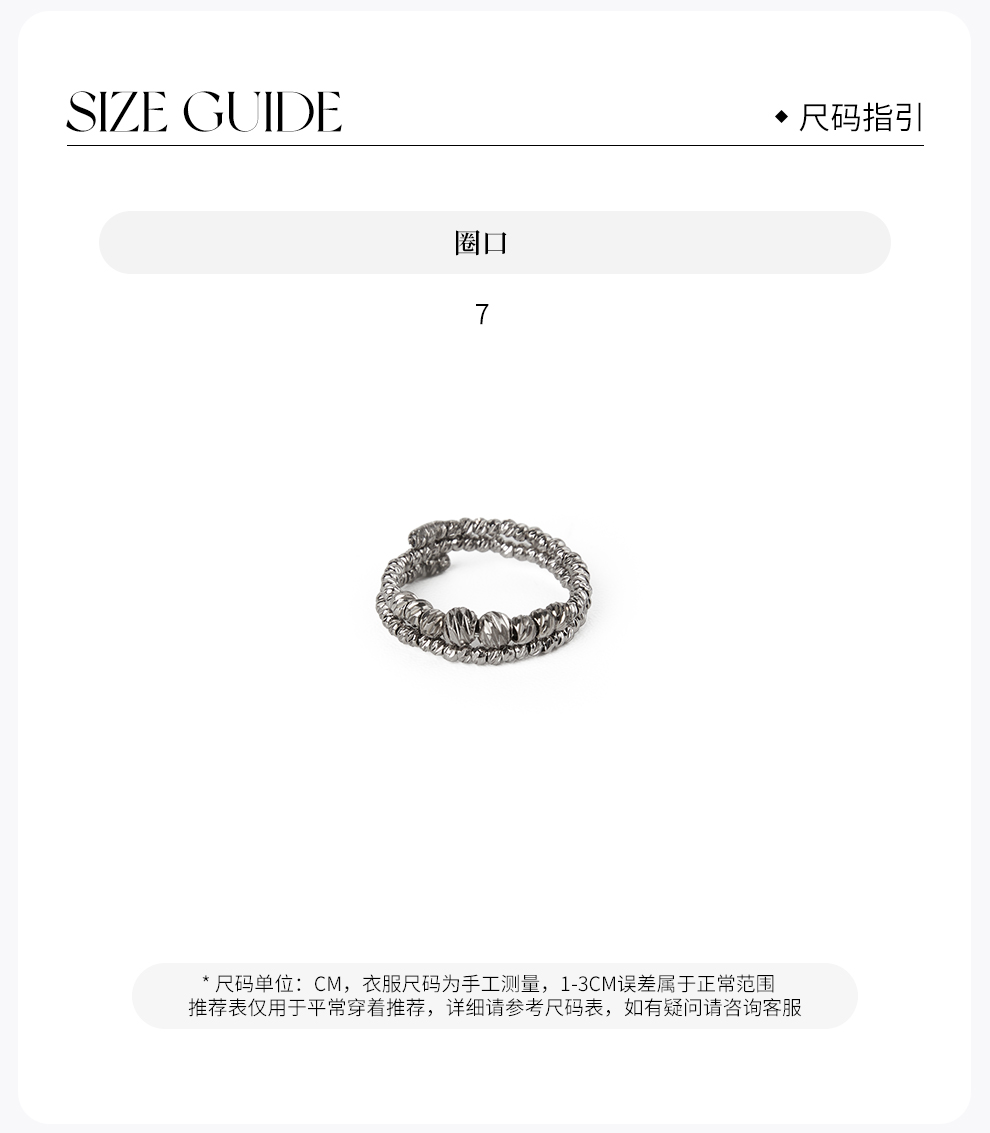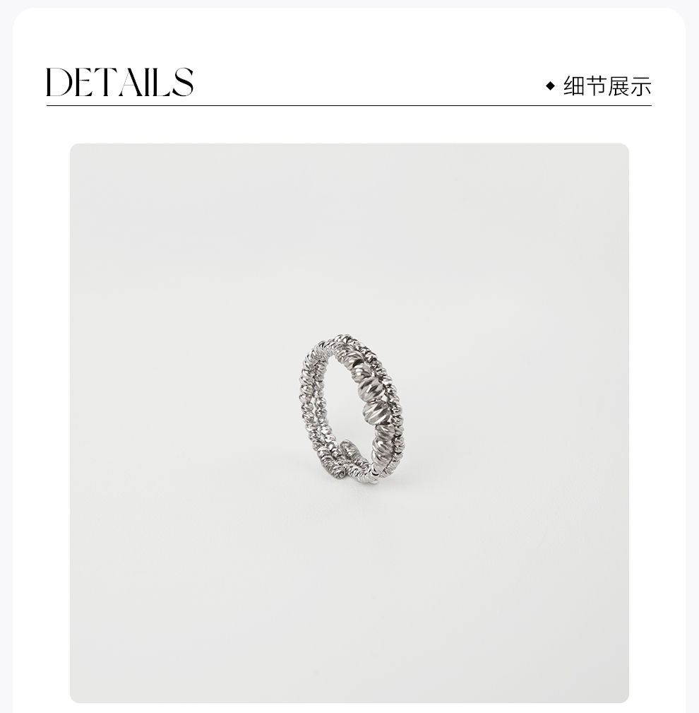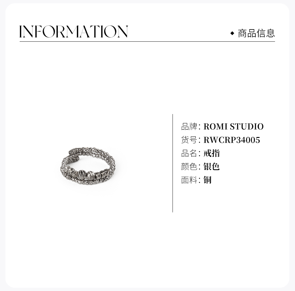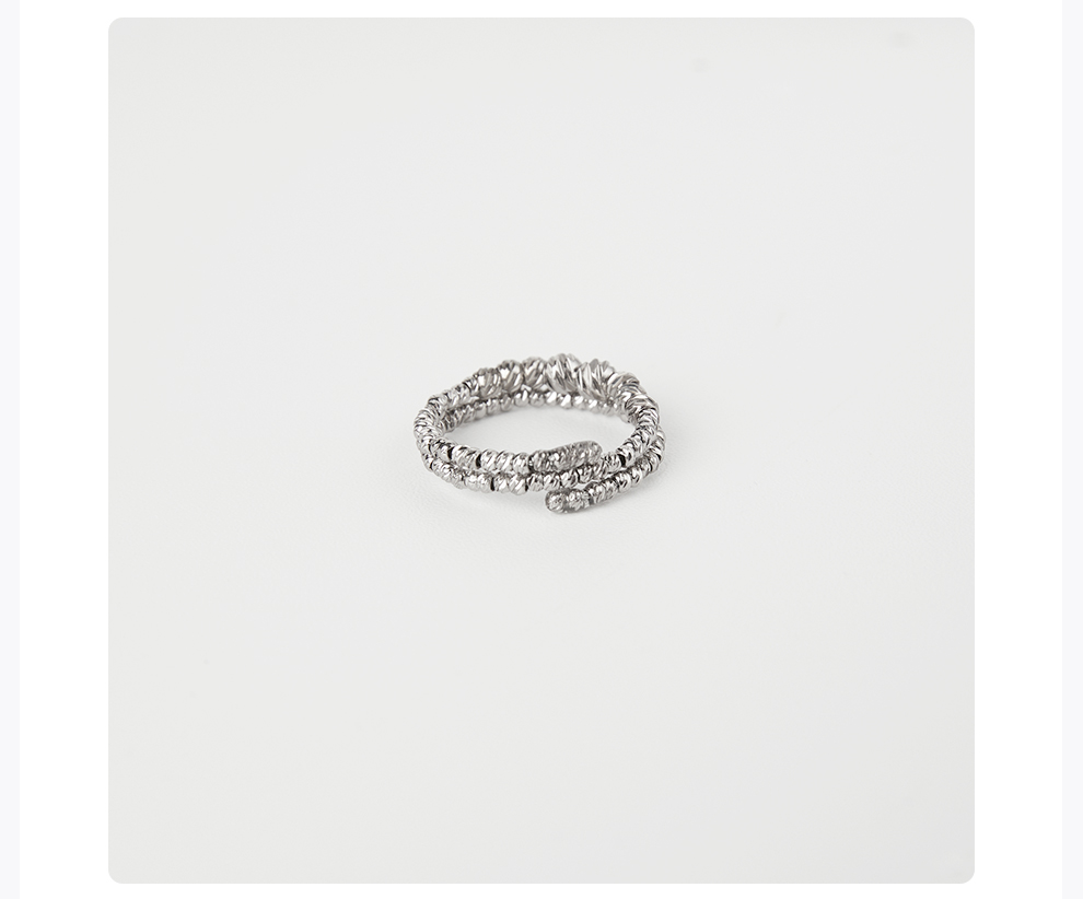 ROMI STUDIO 铜合金戒指 银色车花珠双层缠绕戒指 RWCRP34005【发货时间:25-30天】