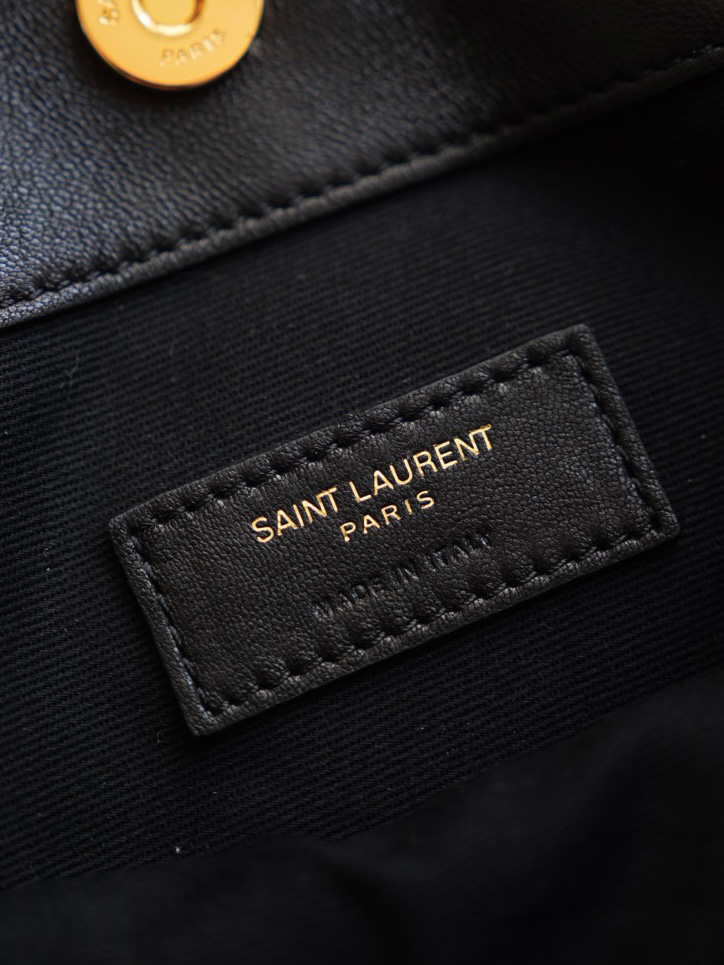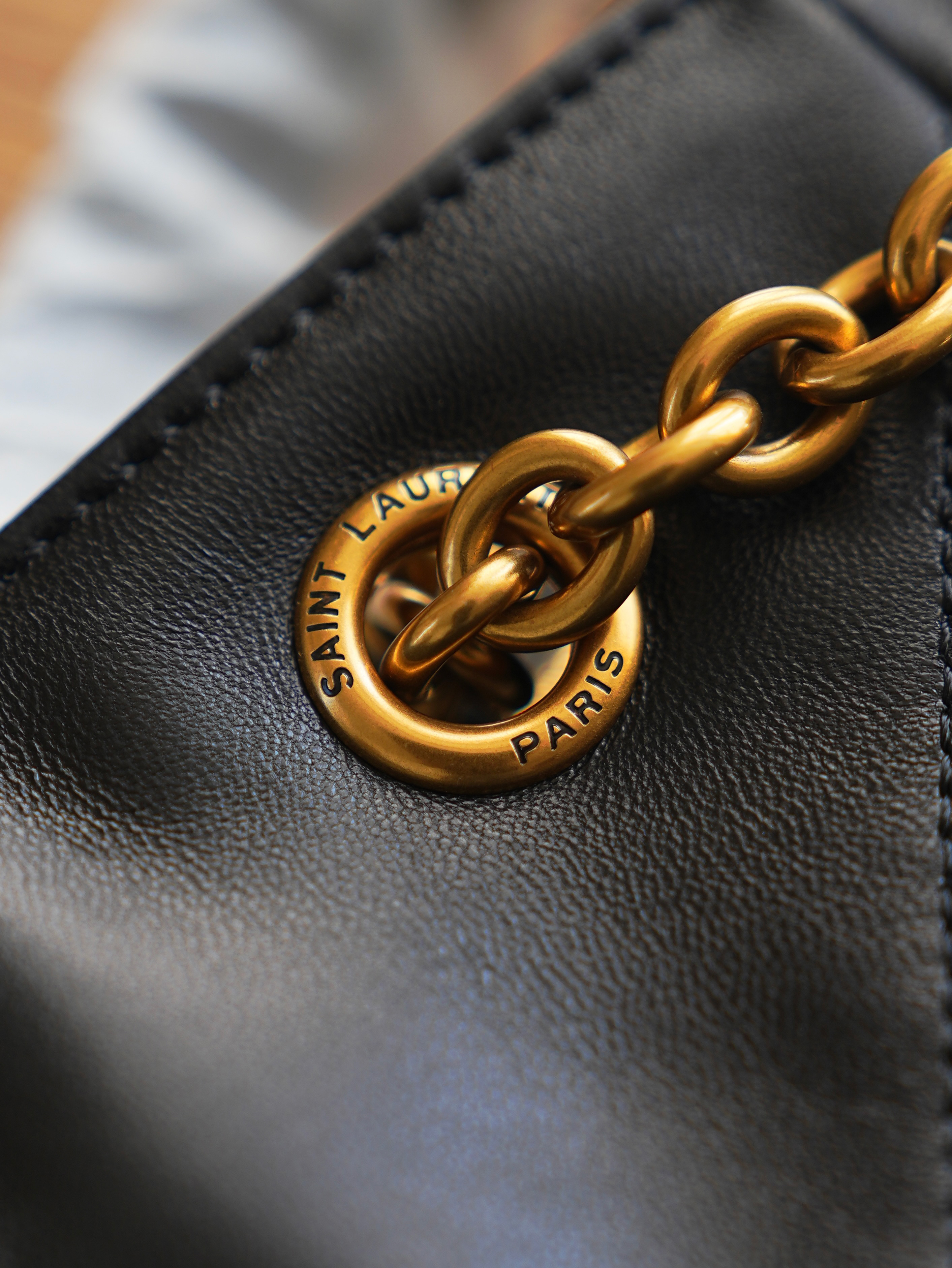 YSL 圣罗兰 Jamie 品牌金色金属徽标链条肩带托特包Tote包购物袋 小羊皮 手提单肩包 小号 女款 黑色
