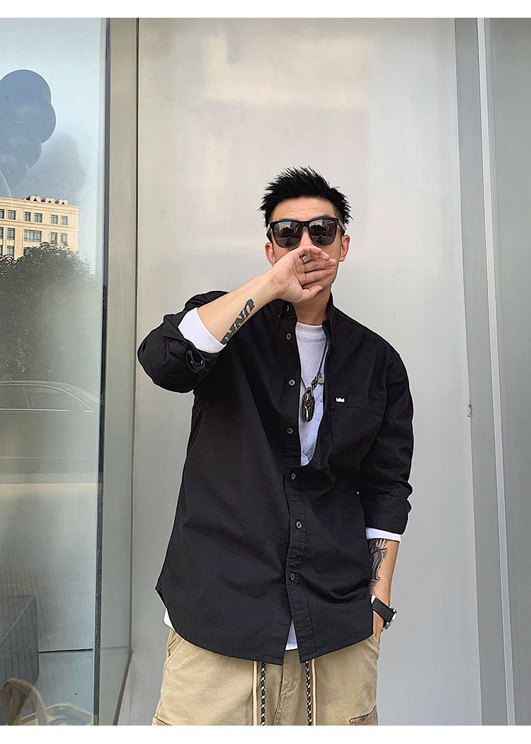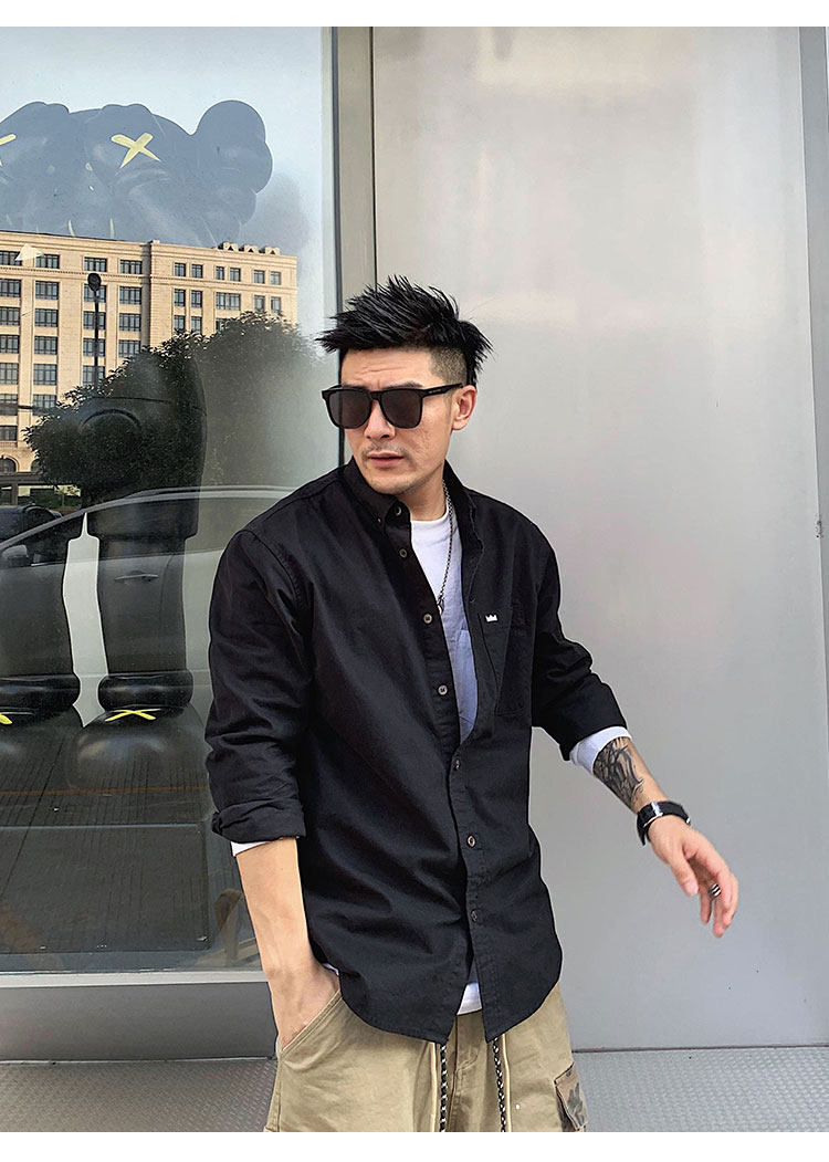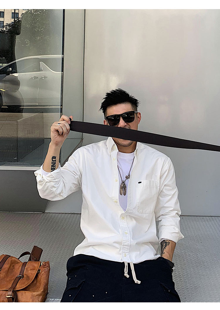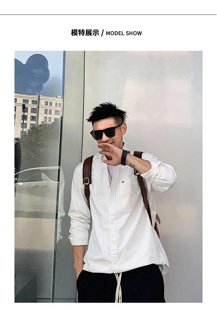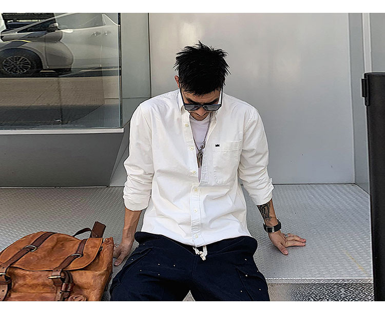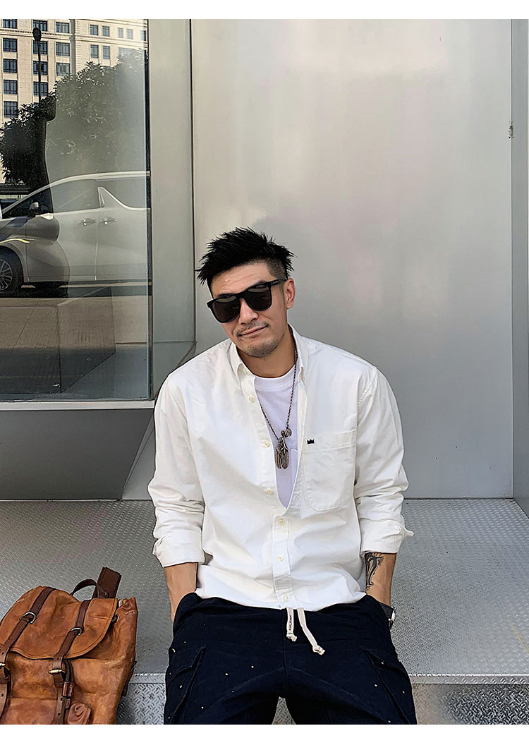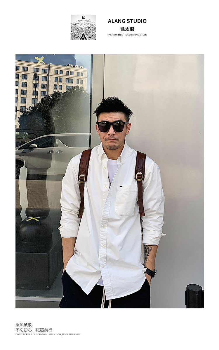 徐太浪修身长袖衬衫男春秋潮牌日系纯棉白色衬衣宽松休闲男士外套