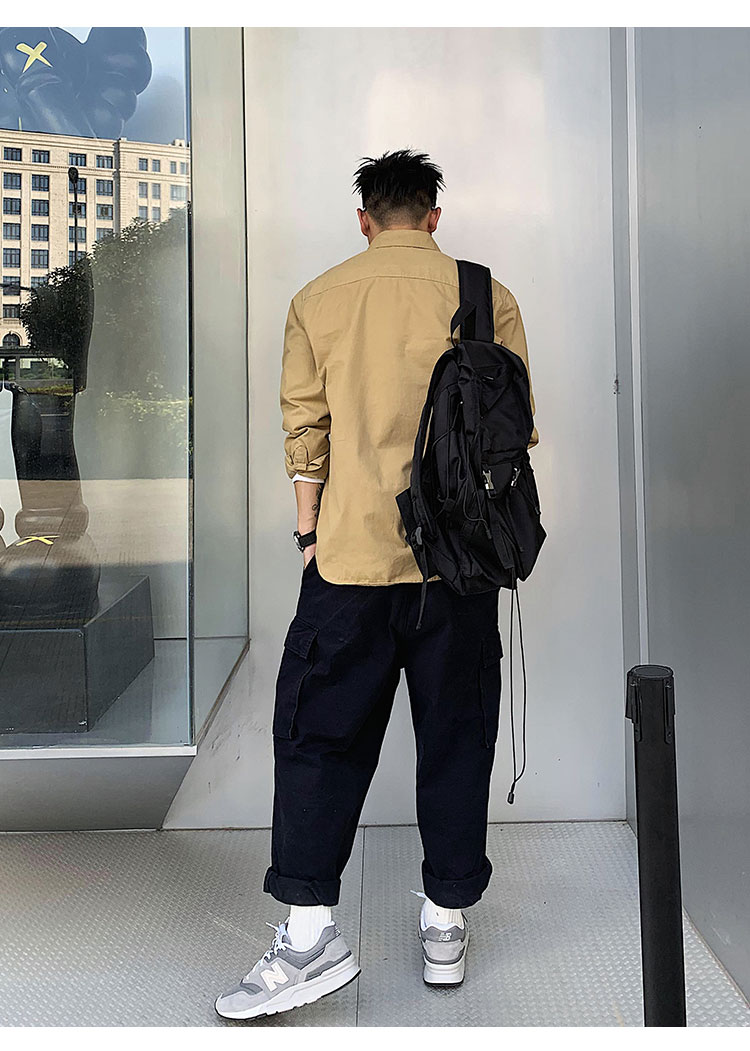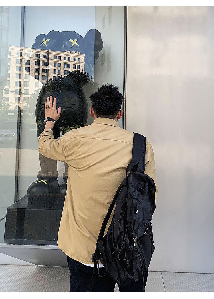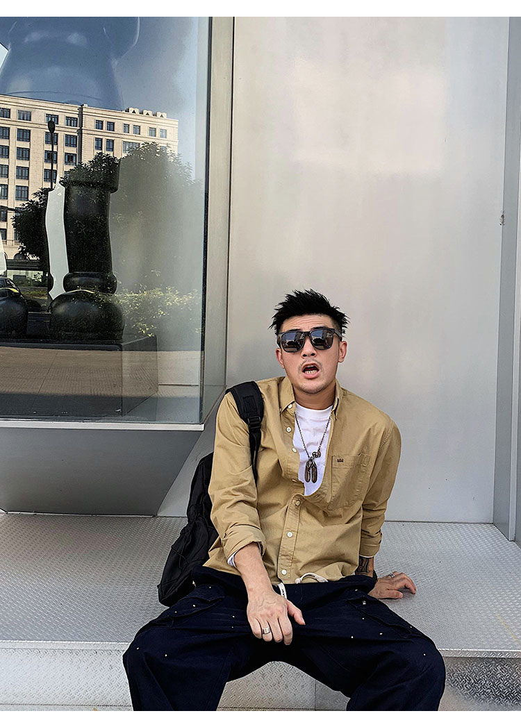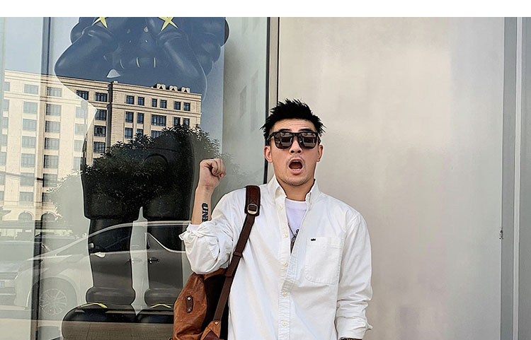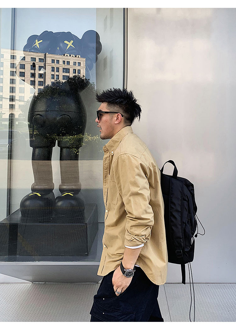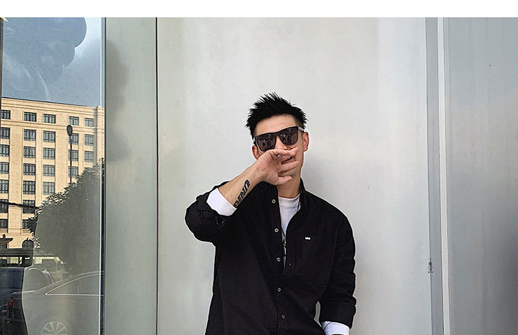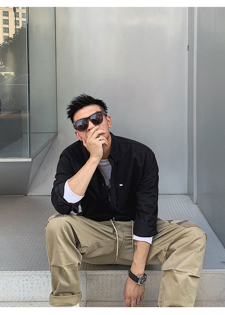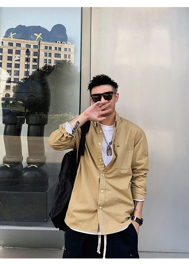 徐太浪修身长袖衬衫男春秋潮牌日系纯棉白色衬衣宽松休闲男士外套