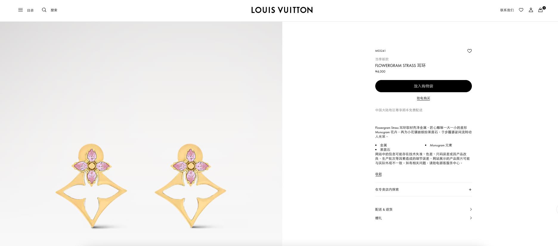 LV 当季新款 FLOWERGRAM STRASS 耳环 M03241 新款