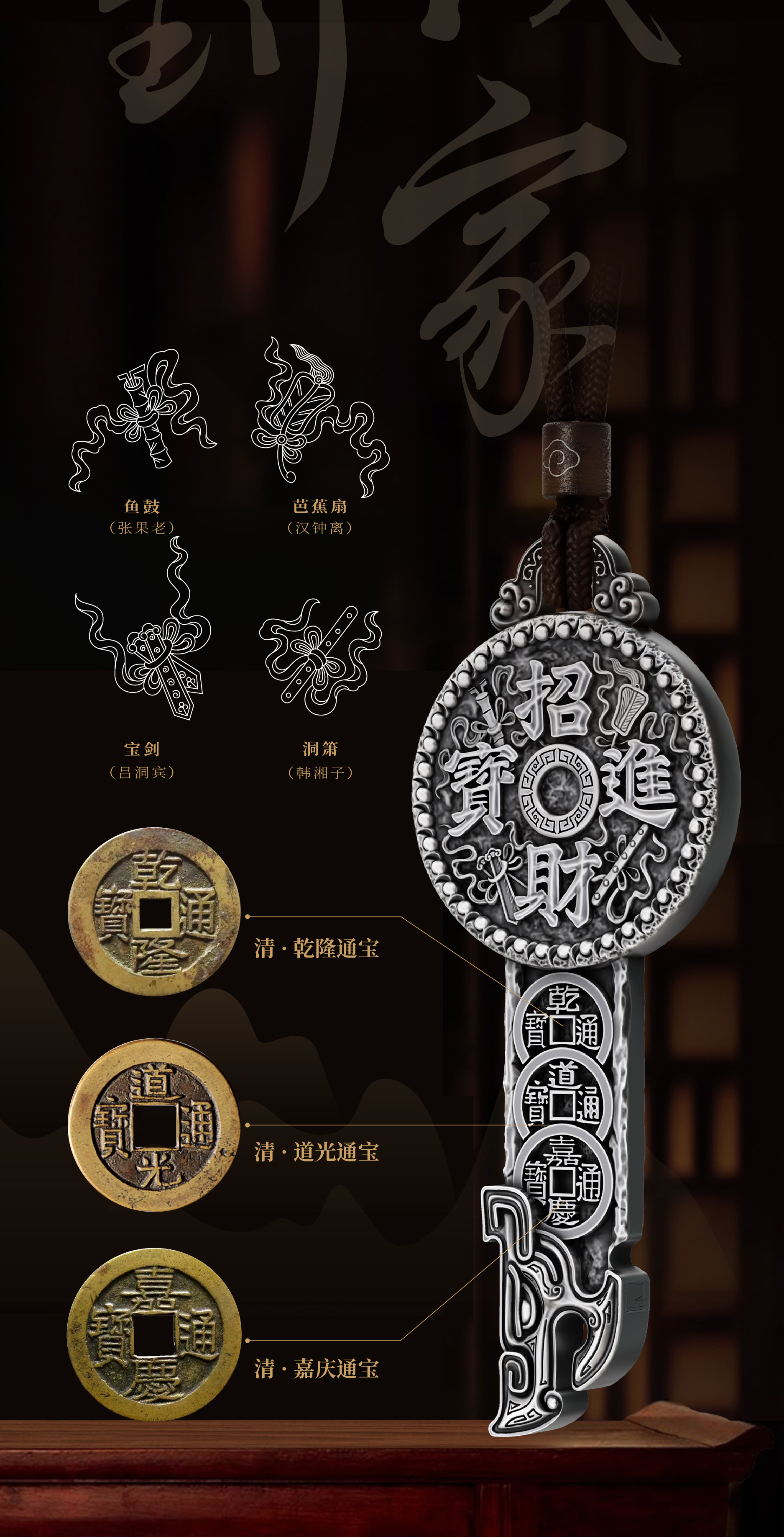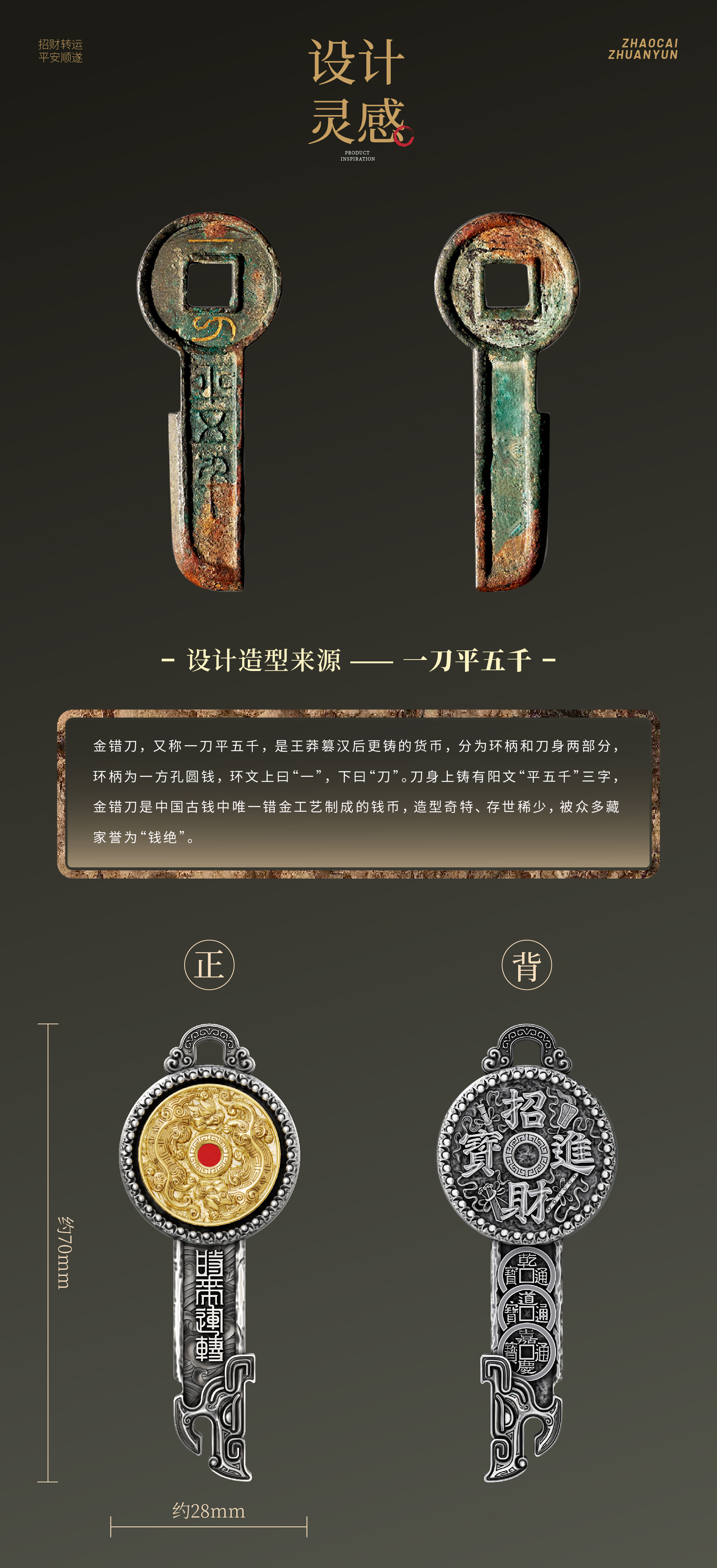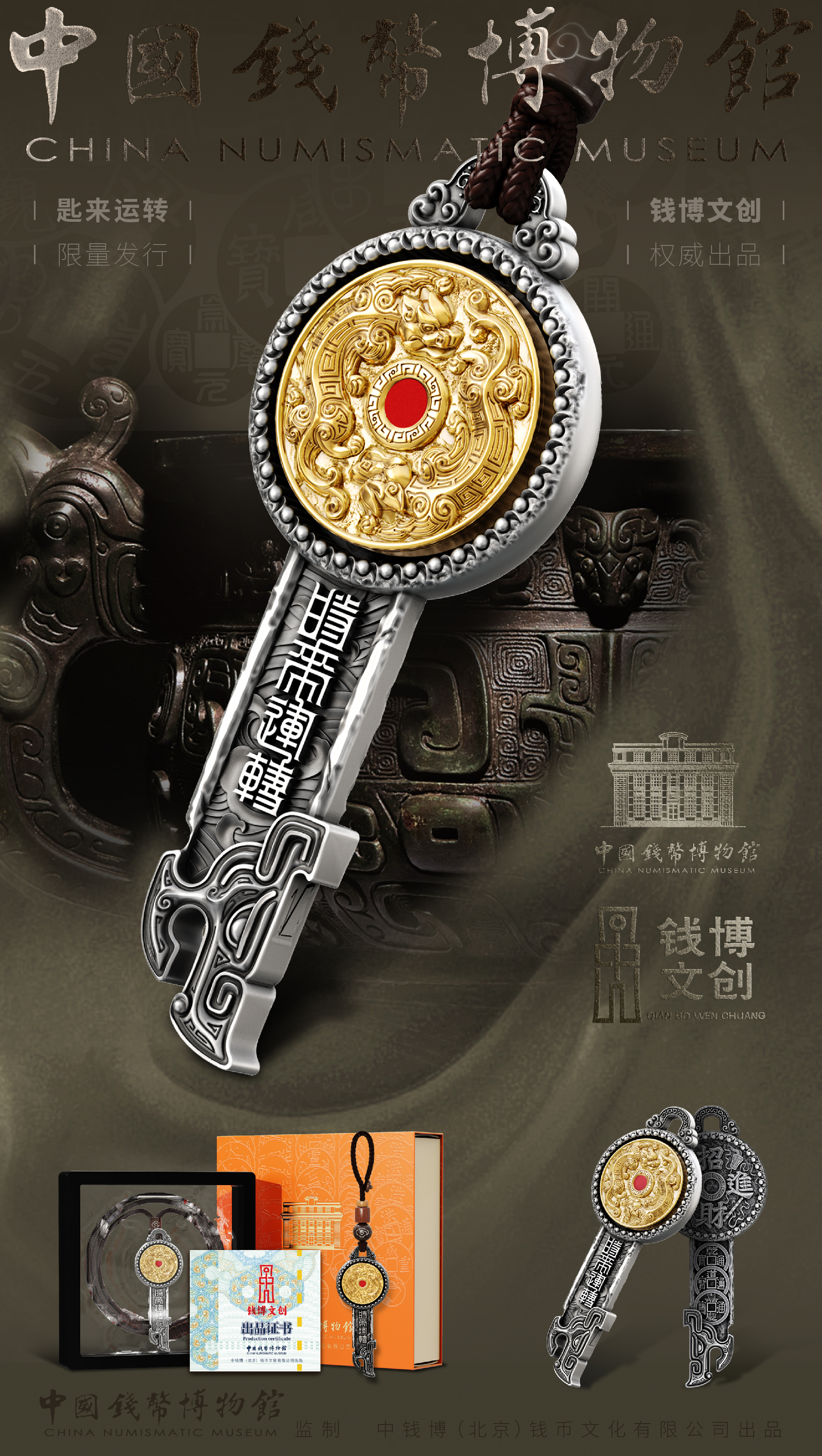 《时来运转》财富挂件 可佩戴 形似钥匙 寓意开启财富幸福之门 带颈绳 挂绳
