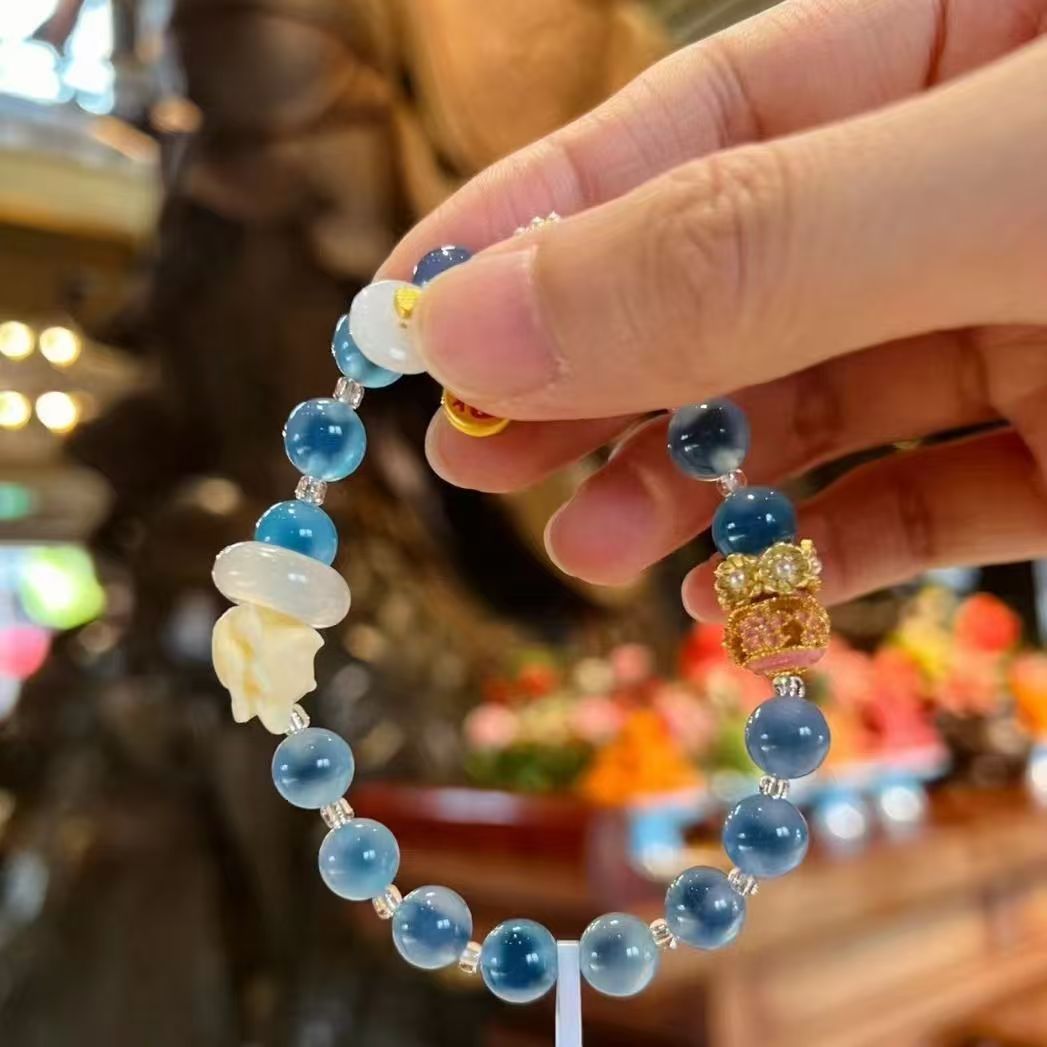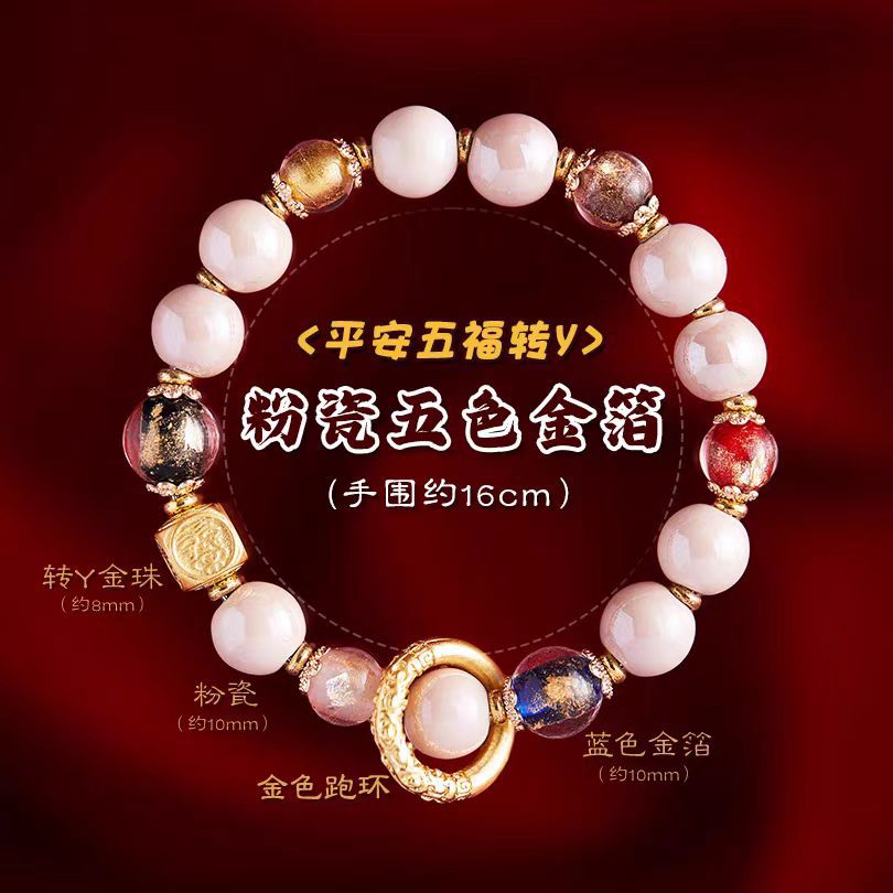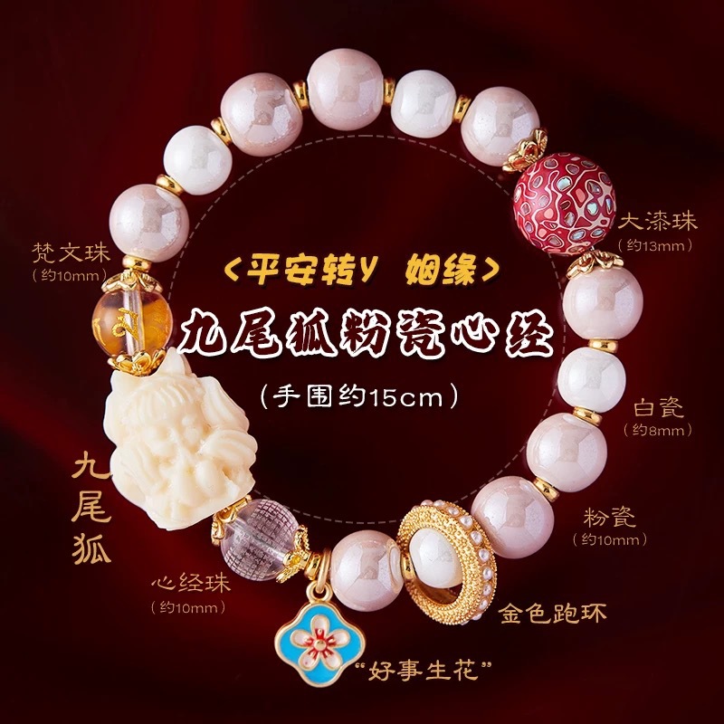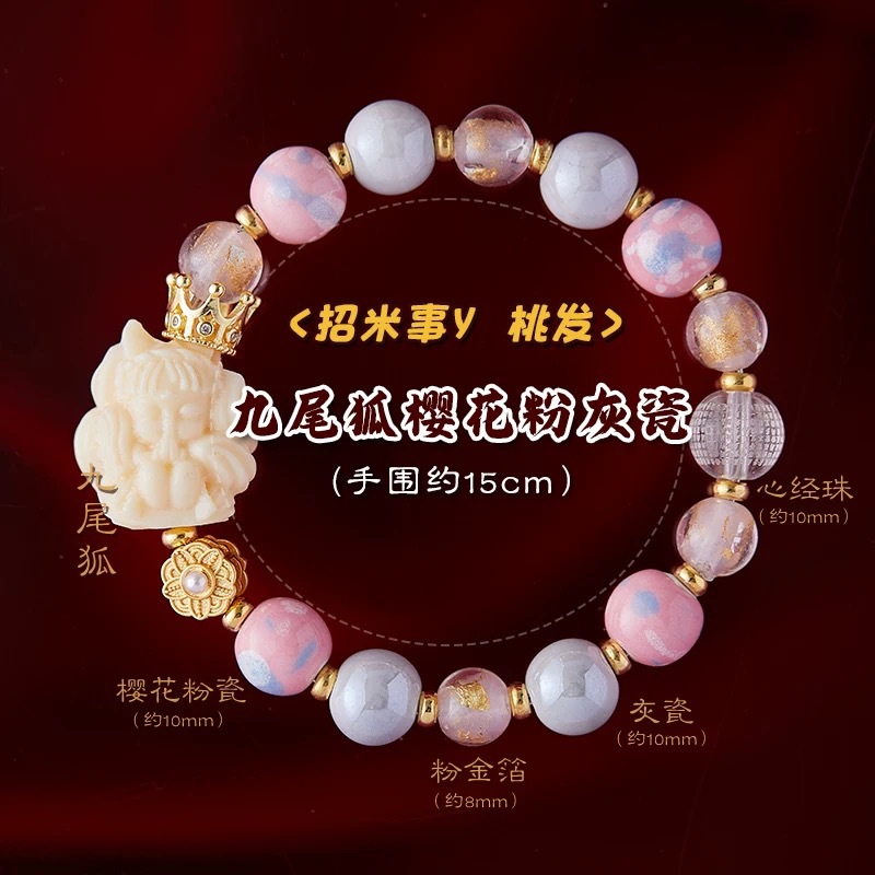【普陀山】香灰瓷凤九狐狸手串粉瓷金箔琉璃手链国潮宫廷风转运粉晶