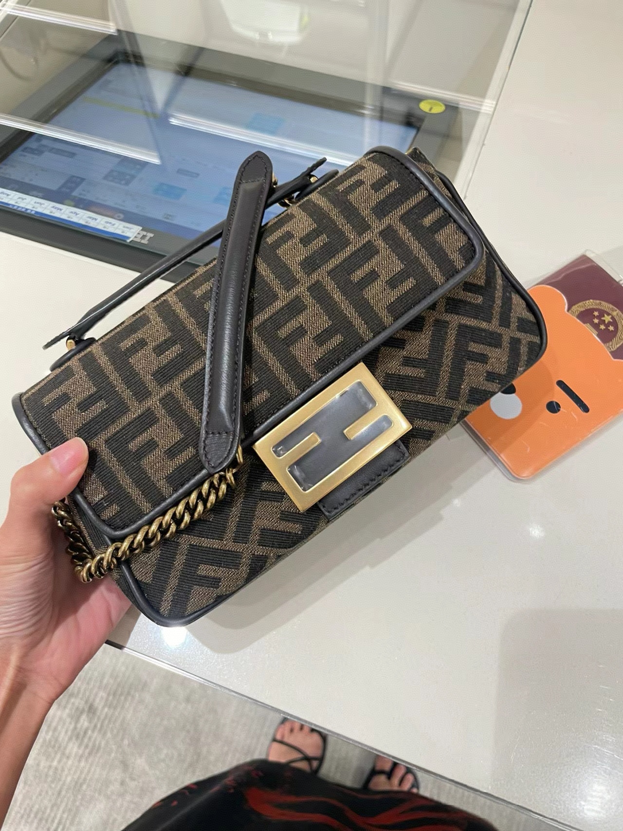 芬迪链条款老花fend1iconicbaguette中号链条手袋复古金属件可手拿/斜挎(CB)