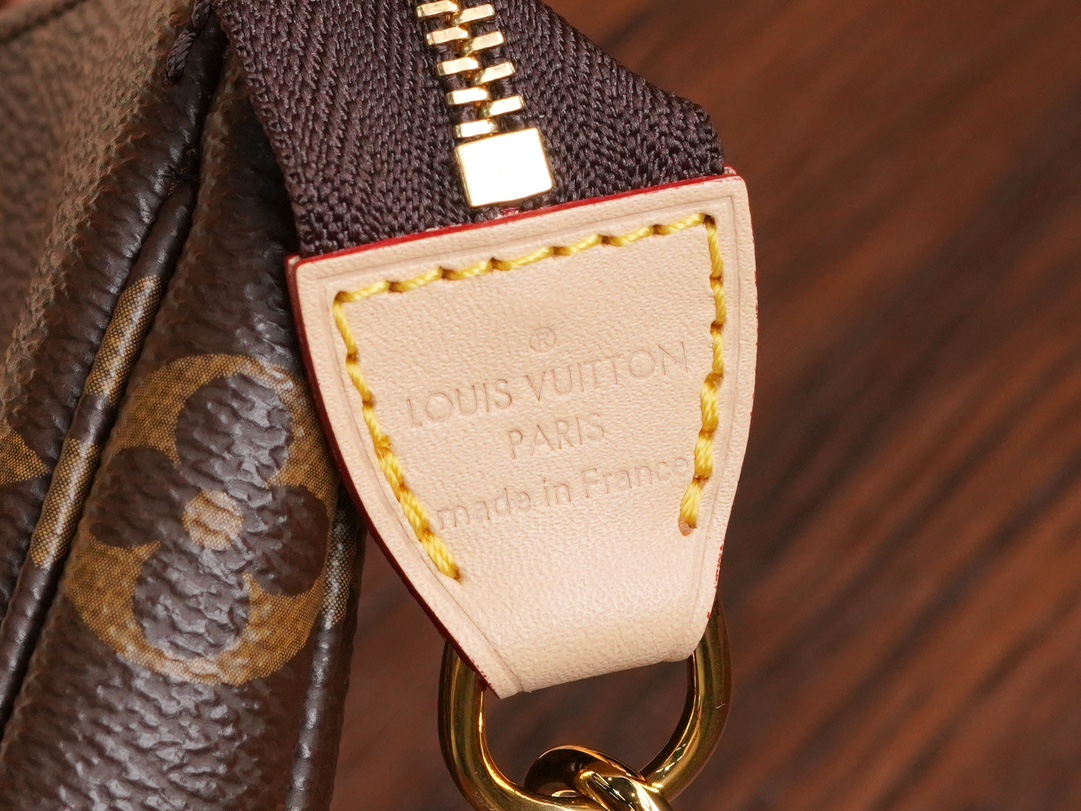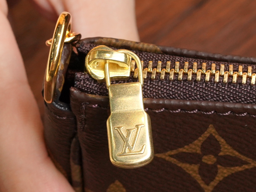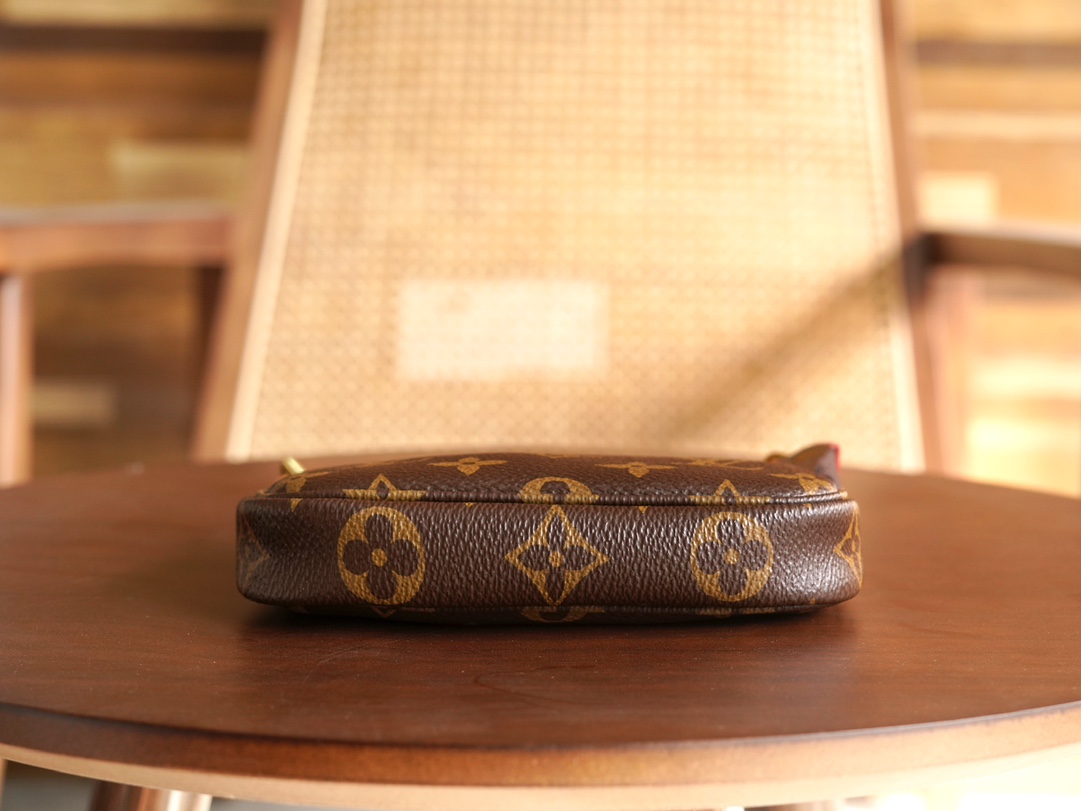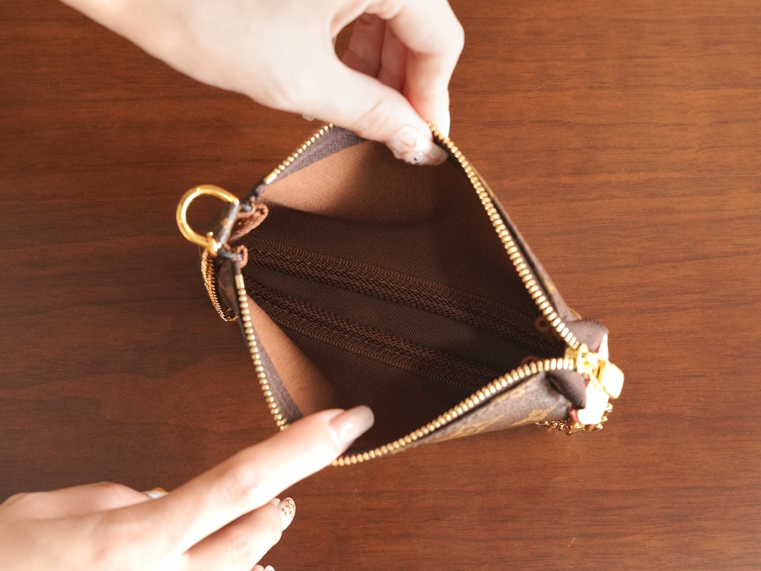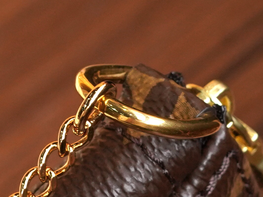 Mini Pochette Accessoires on Chain 手袋以 Monogram 帆布塑造玲珑构型,轻松收纳随行小物。短链条和拉链开合延续原版设计,可拆卸长链条增添肩背和斜挎选择。