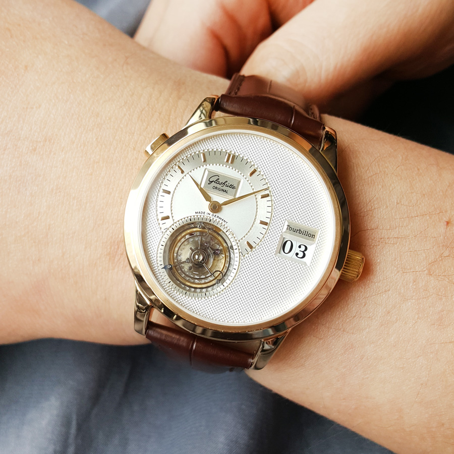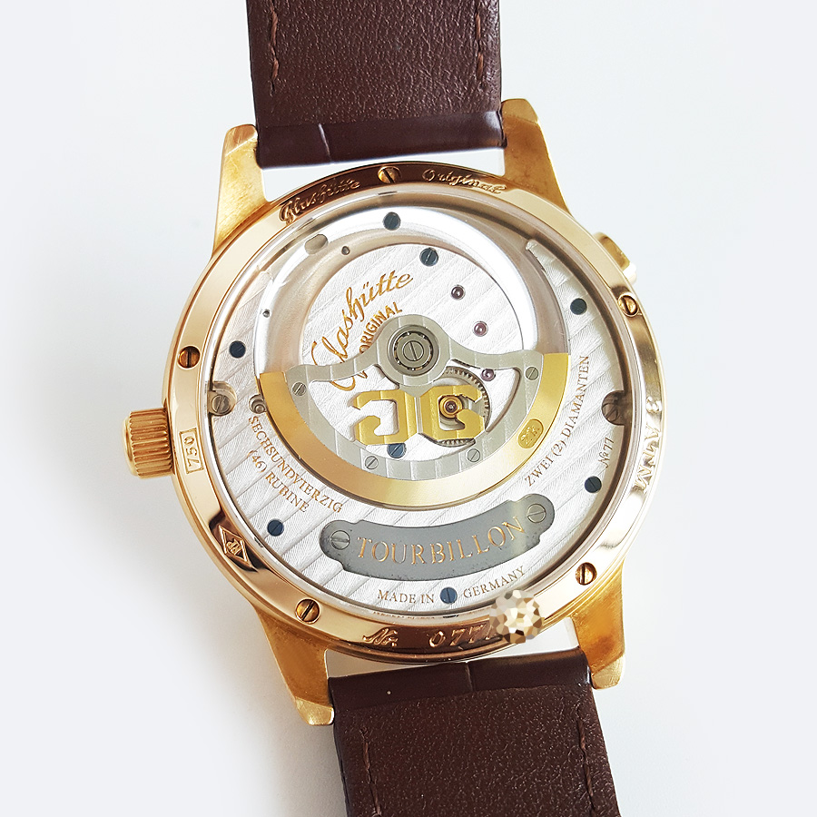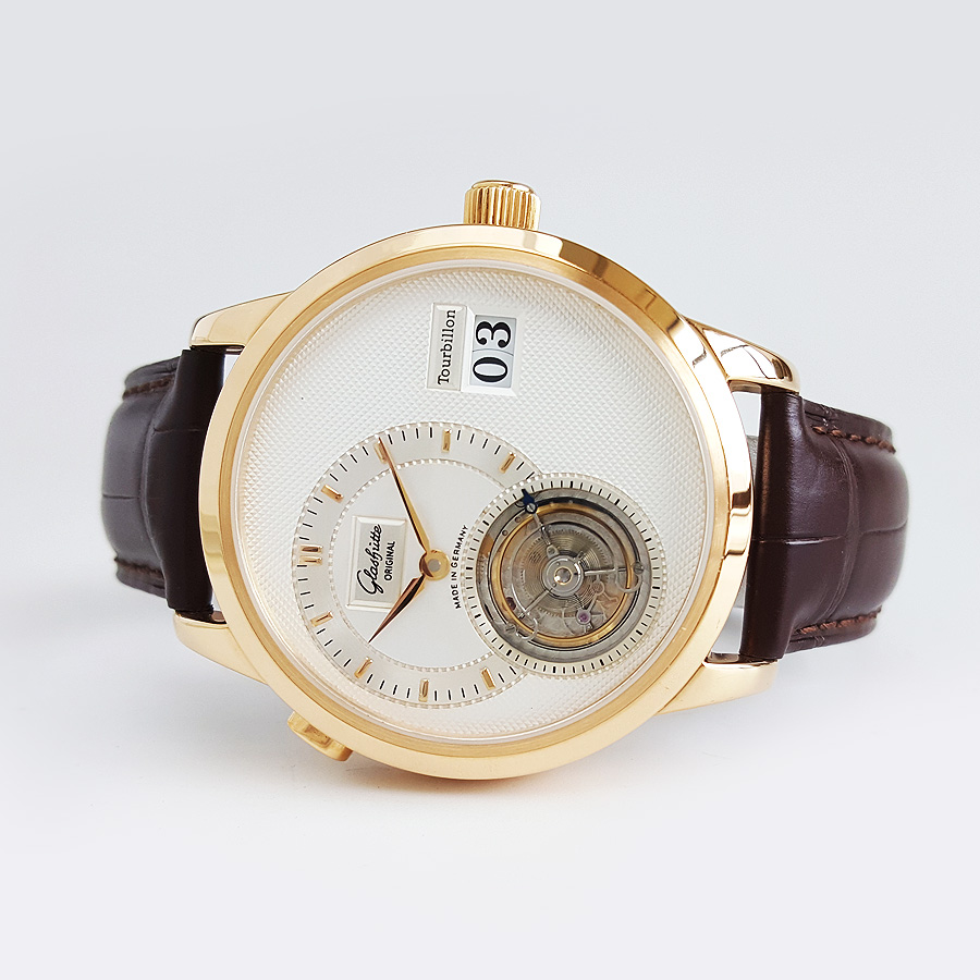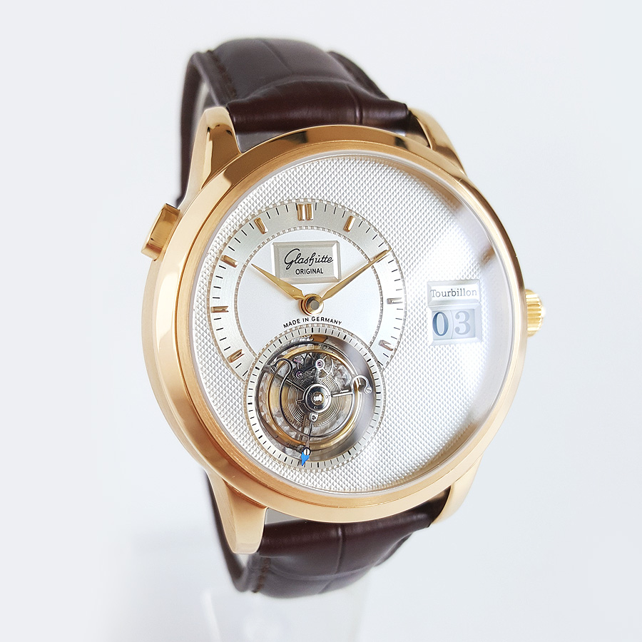 【95新正品】格拉苏蒂PANO CLASSIC系列18K玫瑰金39MM陀飞轮大日历自动机械机芯男表93-01-01-01-04 020724NJS09