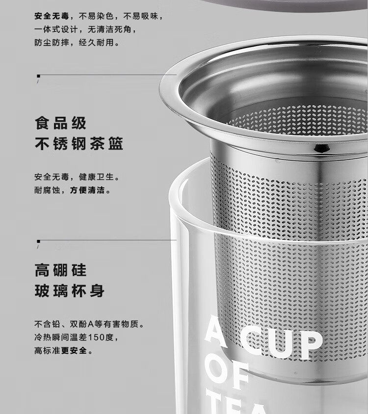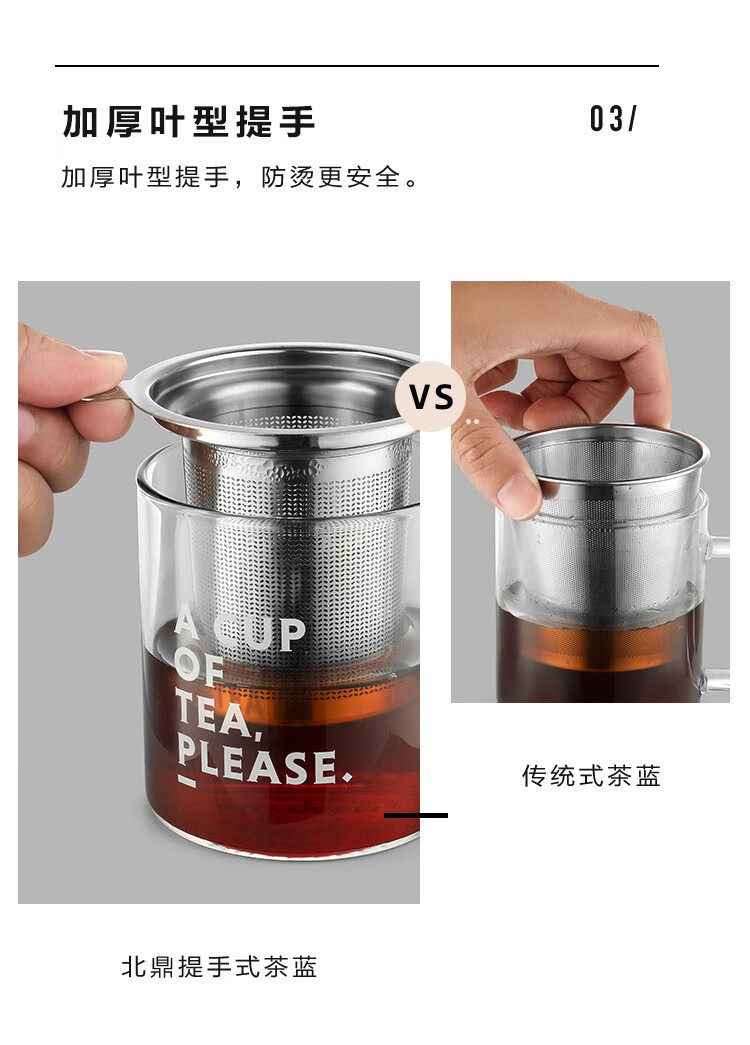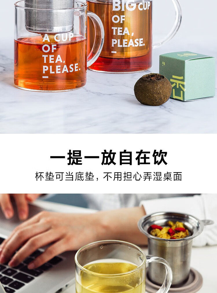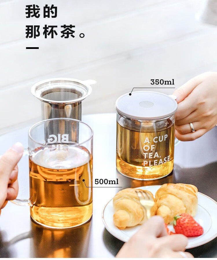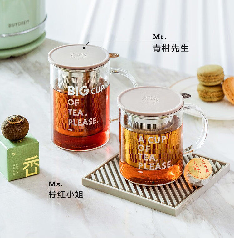 buydeem/北鼎泡茶杯办公室家用带把过滤网茶蓝玻璃杯子男女喝水杯