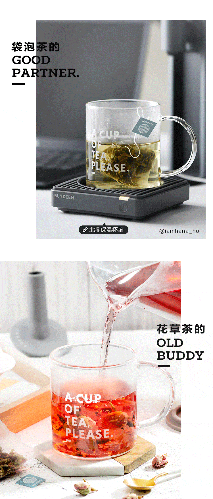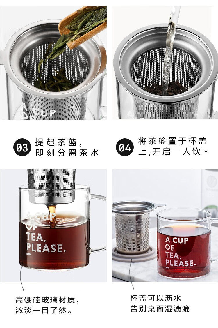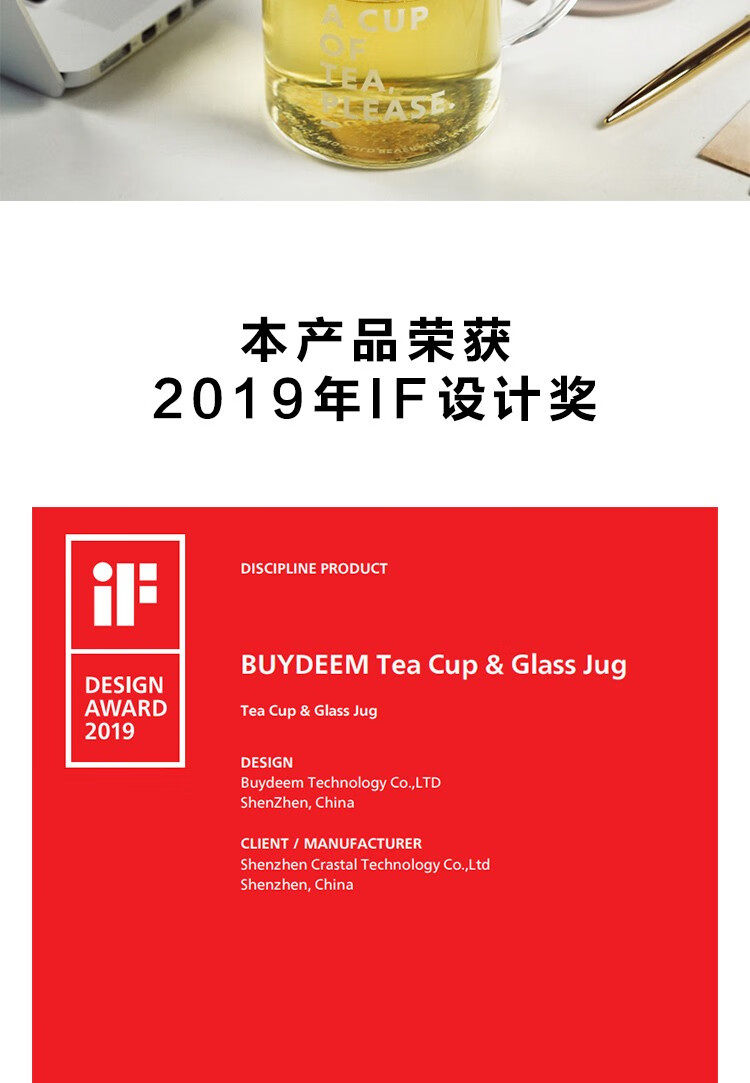 buydeem/北鼎泡茶杯办公室家用带把过滤网茶蓝玻璃杯子男女喝水杯