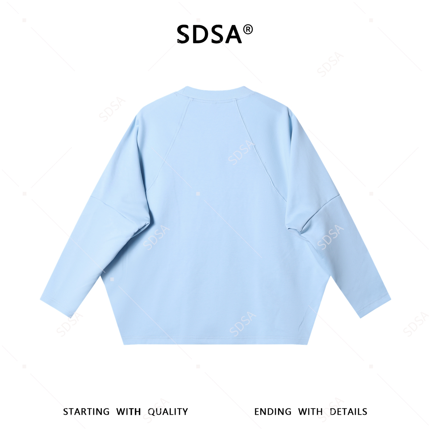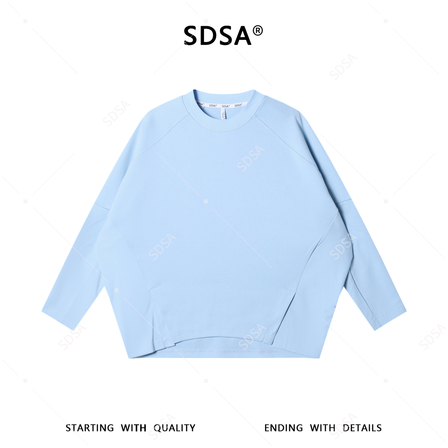 SDSA男装2026新款高贵轻奢前下摆开衩宽松圆领长袖T恤纯色百搭